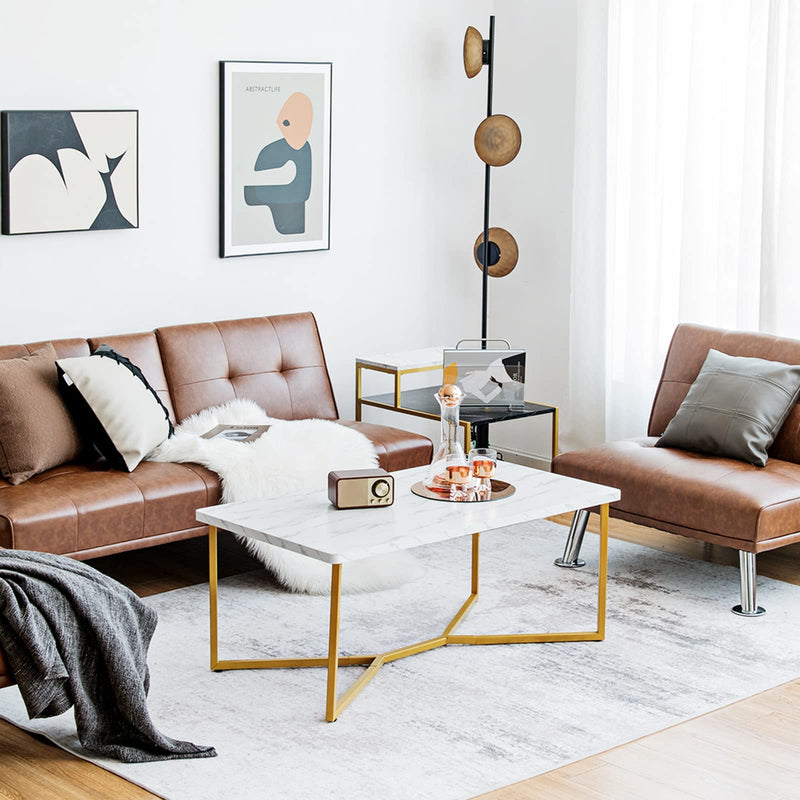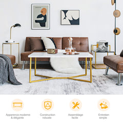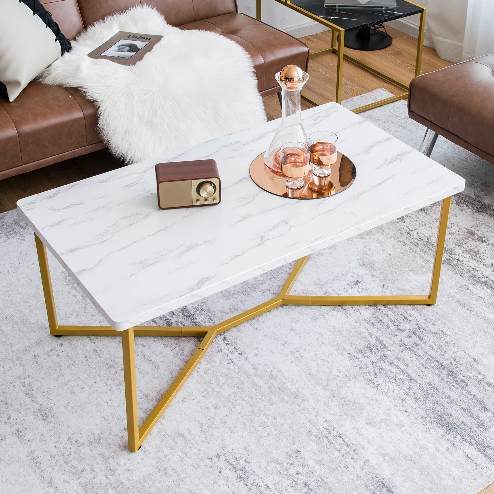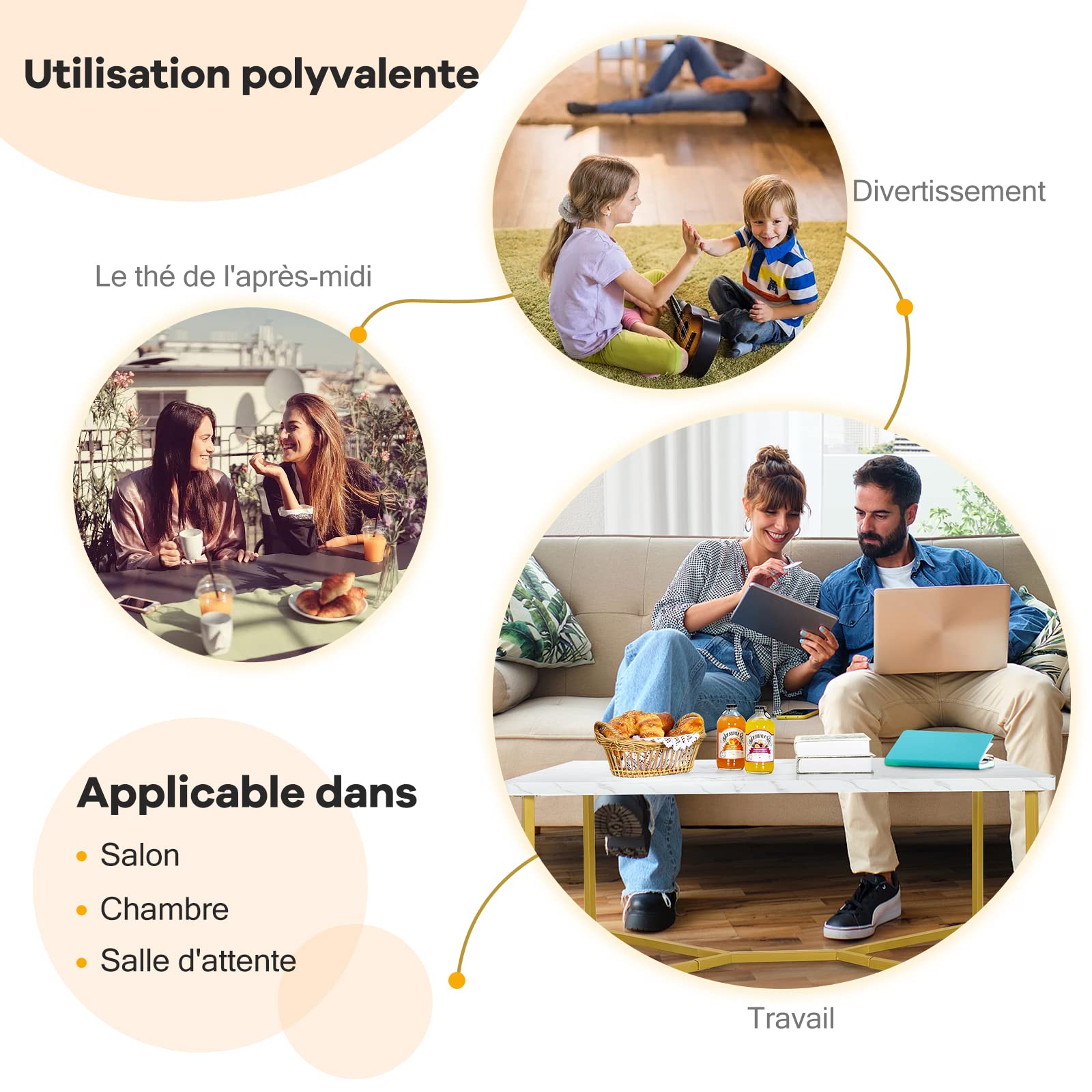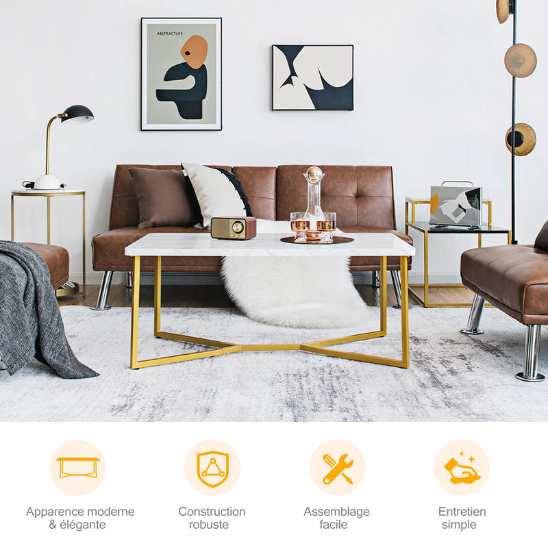 - 【Apparence stylée et luxueuse :】Cette table basse moderne, avec un plateau semblable au marbre et des pieds dorés, présente une apparence stylée et luxueuse et sera définitivement la clé de voûte de votre maison bien décorée. De plus, c’est aussi une touche délicate qui apporte de l’attrait au bureau ou au salon.