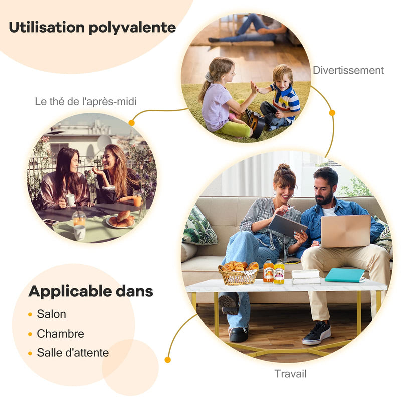 | Usages recommandés pour le produit | Pour une table basse de salon ou une table de zone assise |