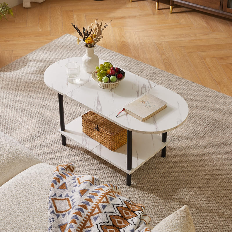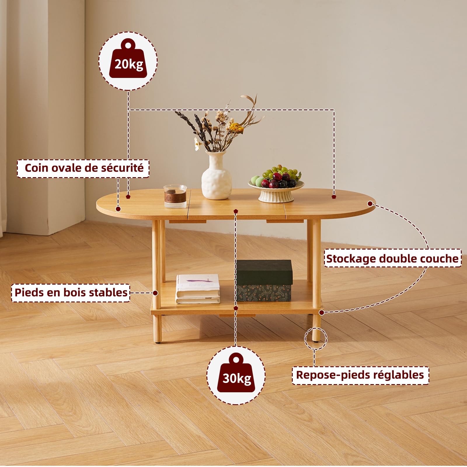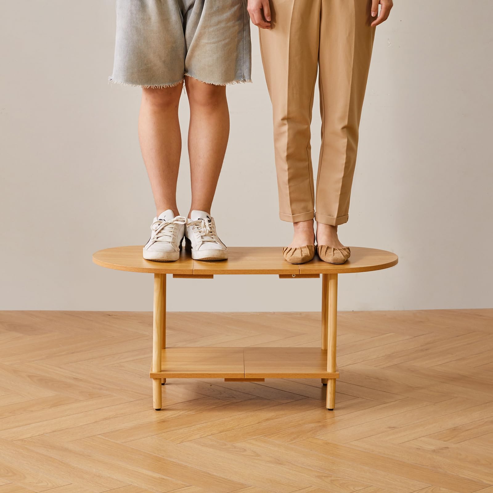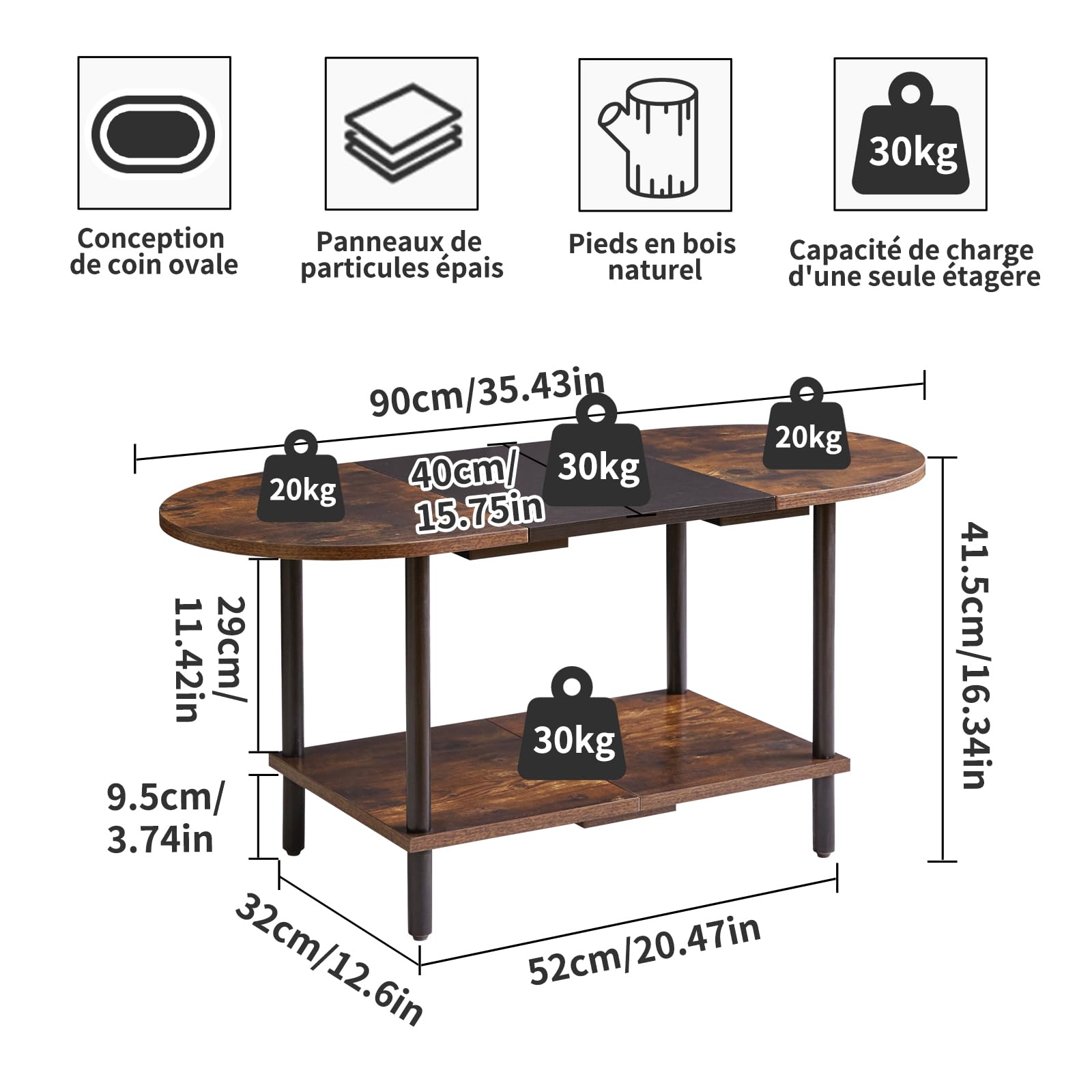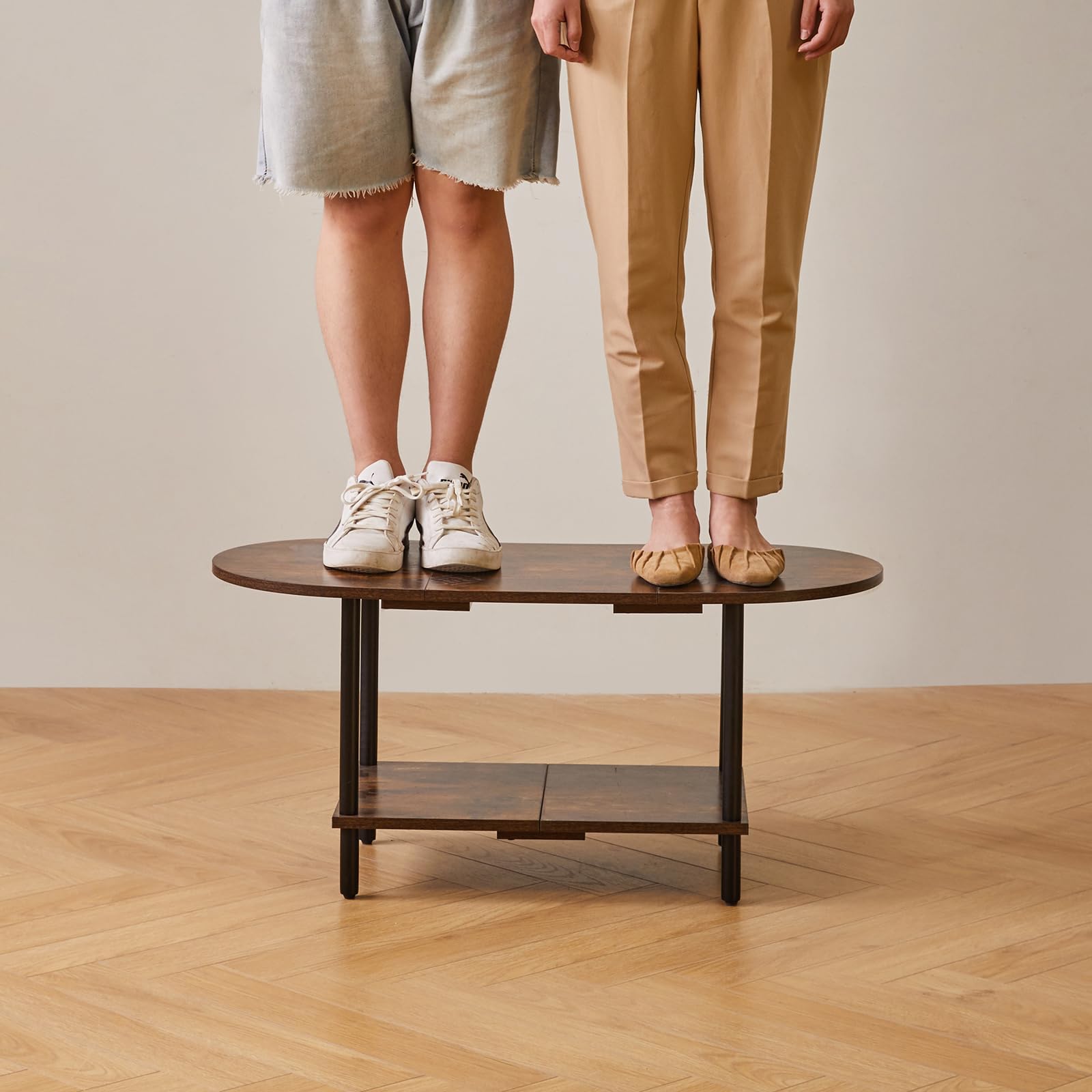 - 1.Conception unique : le dessus de cette table basse adopte un design ovale, qui peut non seulement être parfaitement intégré au canapé. Les bords arrondis protègent également votre famille des rayures accidentelles. Le fond est carrément conçu pour stabiliser la table et augmenter l'espace de rangement, la rendant plus pratique.