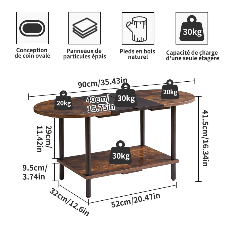 - 2.Rangement à 2 niveaux : la table basse dispose d'un espace de rangement ouvert et le plateau spacieux vous aide à afficher des ornements, à stocker des livres, des cosmétiques, de la nourriture, des boissons et d'autres articles, etc.