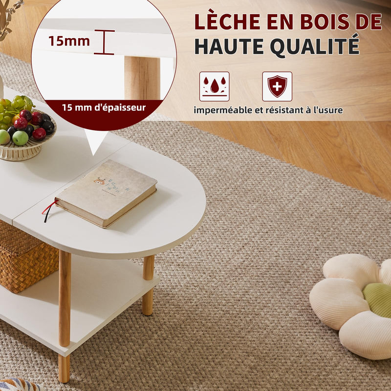 - 3.Robuste et durable : les tables basses Aibiju sont constituées de panneaux de particules de haute qualité et de pieds en bois, et elles sont renforcées par des planches de bois à double couche, solides et durables. la combinaison de laque lisse et de bois massif vous donne trois fois plus de texture. La table de salon est résistante et imperméable, ce qui la rend très durable. Une surface lisse et peinte est très facile à nettoyer.