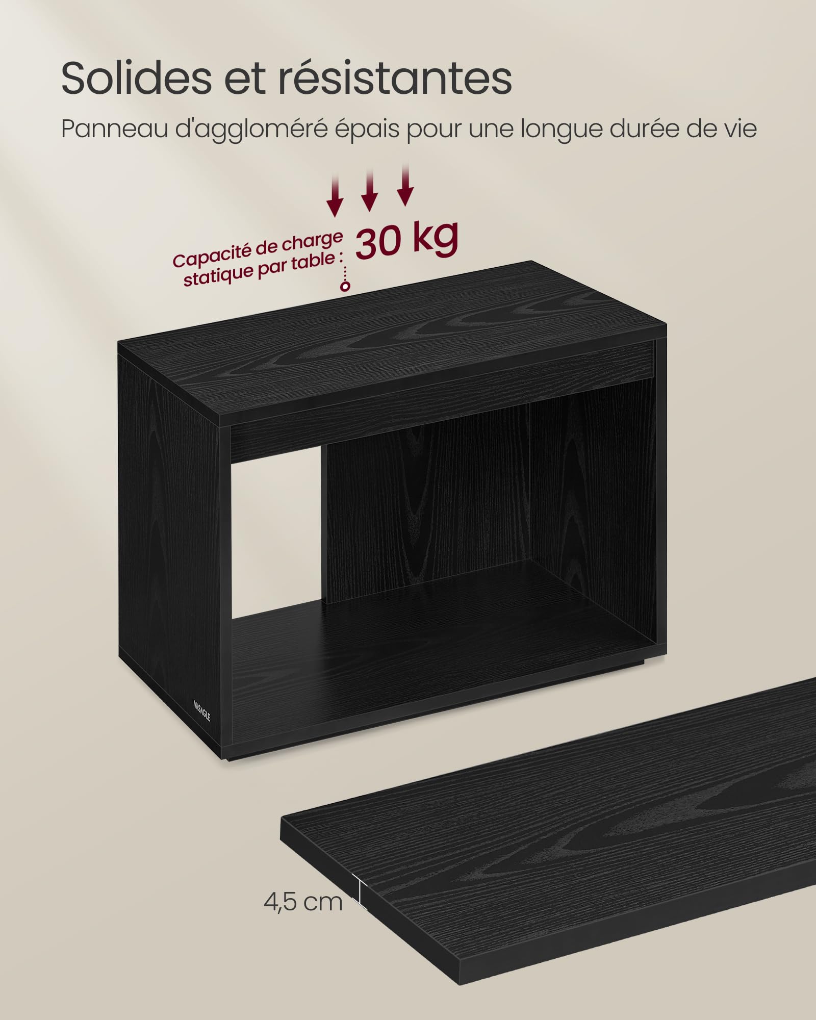- 【SOLIDE ET STABLE】Fabriquée en panneaux d'aggloméré d’une épaisseur de 4,6 cm, chaque petite table est conçue pour offrir stabilité et durabilité, supportant jusqu’à 30 kg. Agrémentez votre espace de vie avec ce meuble fiable et durable