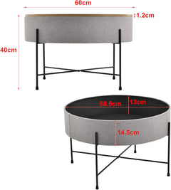 - Matière : - plateau en panneaux de particules et en textile sur le côté - pieds en métal