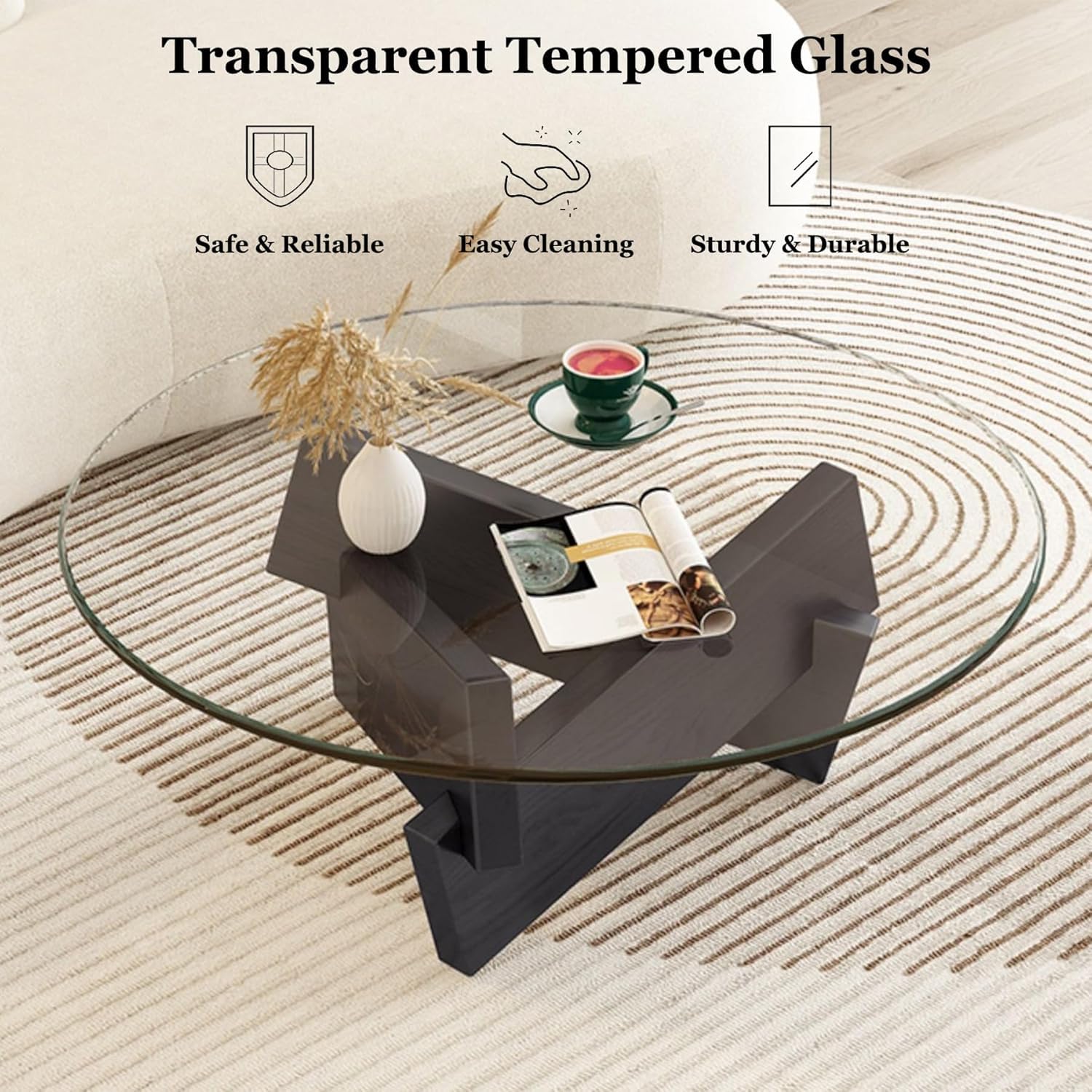 - Verre trempé:Le dessus de table en verre trempé est solide et résiste à l'usure, il supporte jusqu’à 100 kg. Il est également facile à nettoyer, il suffit de passer un simple coup de chiffon pour nettoyer ce meuble de salon