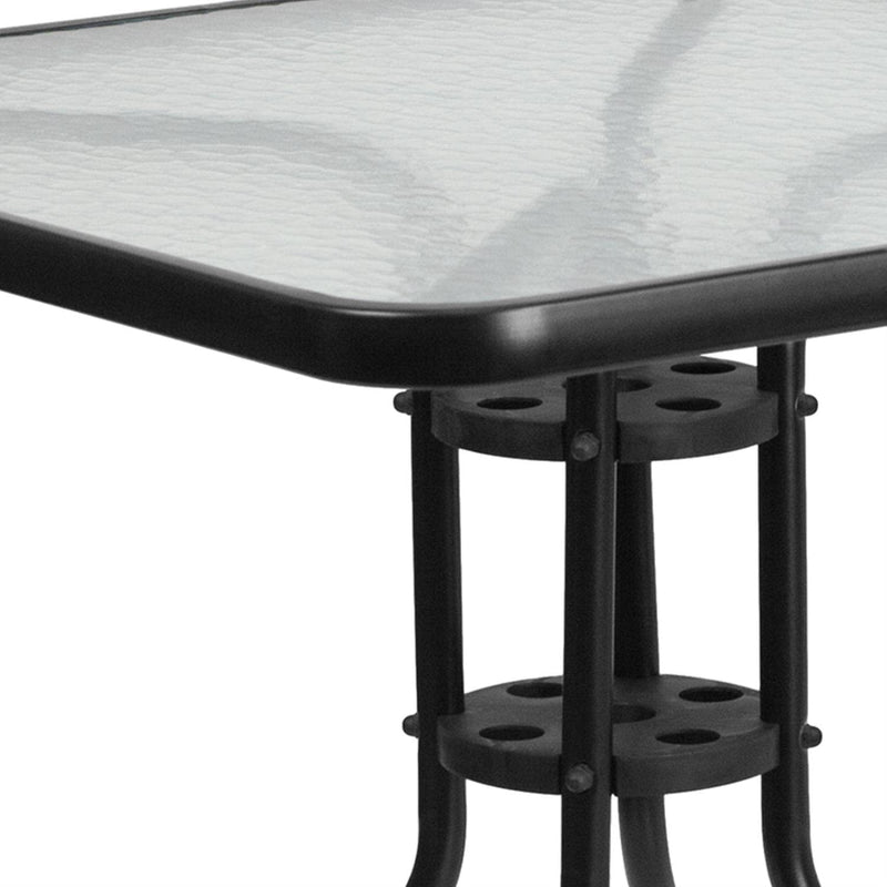 Que ce soit pour ajouter des biens immobiliers indispensables pour contenir des boissons et des collations sur la terrasse à la maison ou un endroit pour les clients pour se détendre, avoir un repas et une excellente conversation, cette table en verre trempé et métal peut aider à créer un environnement de détente ou de divertissement parfait. Le dessus de table ondulé dispose d'une surface lisse pour garder les articles de niveau. Profitez de vos repas en plein air toute l'année sur cette table de terrasse bistrot conçue pour une utilisation par tous les temps, ce qui en fait une excellente option pour les environnements intérieurs et extérieurs. Pour la longévité, il faut prendre soin de protéger de longues périodes de temps humide. La finition poudrée donne à la table de forme carrée un aspect audacieux et polyvalent qui s'accorde bien avec vos chaises préférées. Cette table en verre embellira votre bistrot, café, restaurant, hôtel ou terrasse.