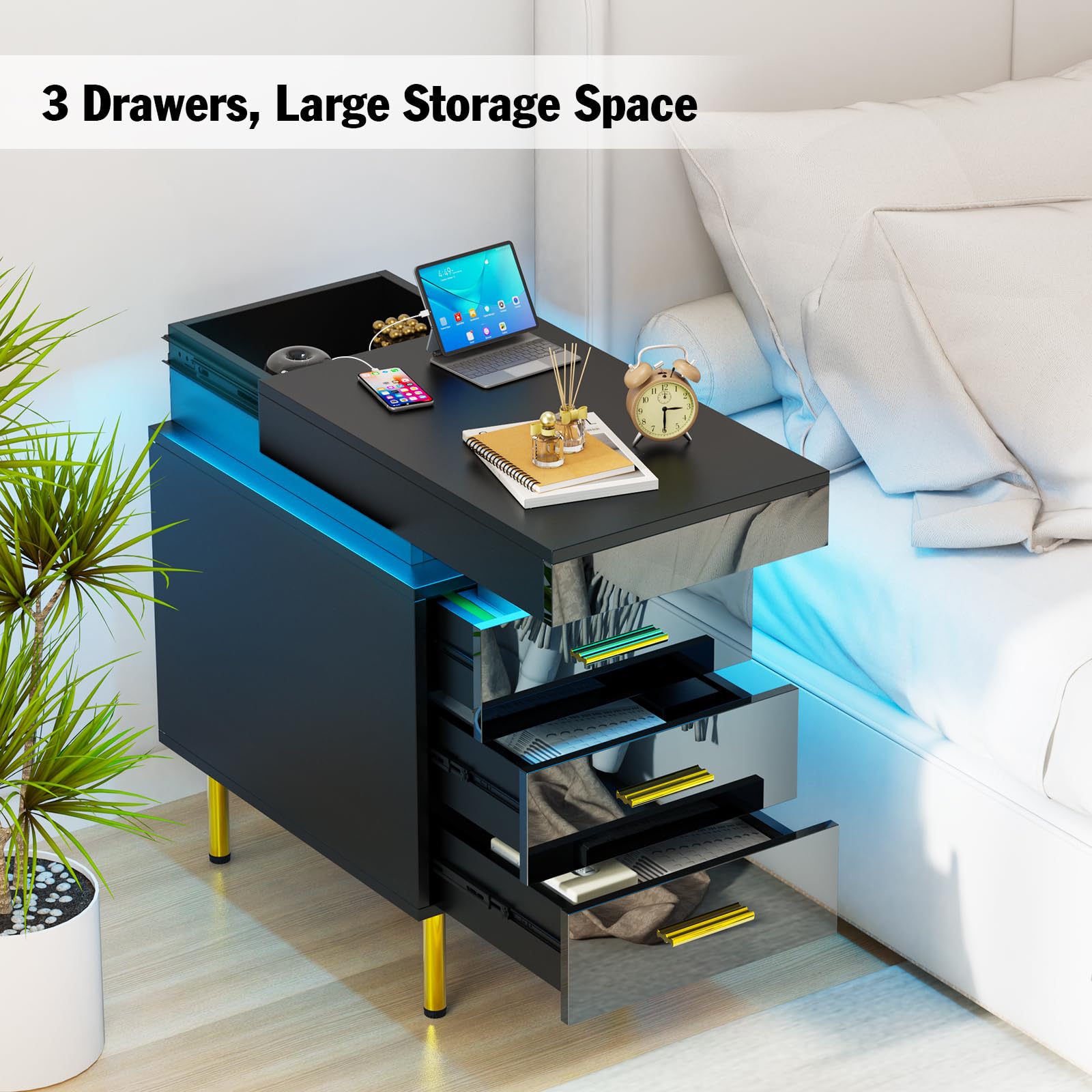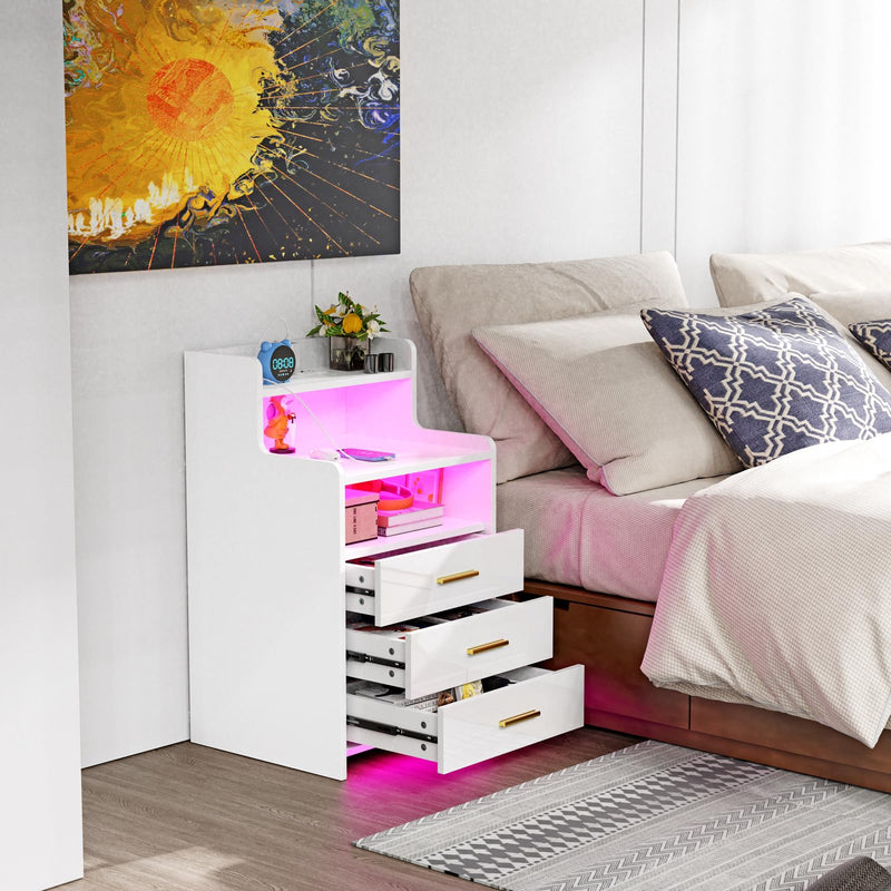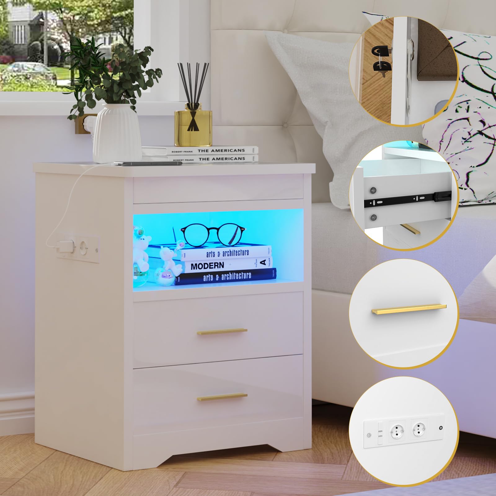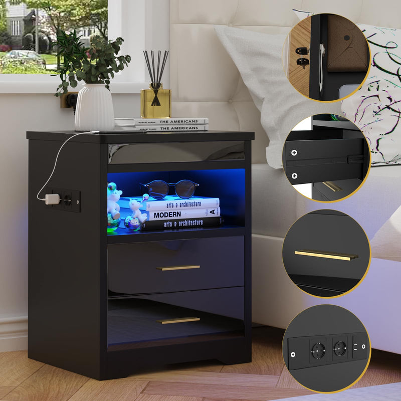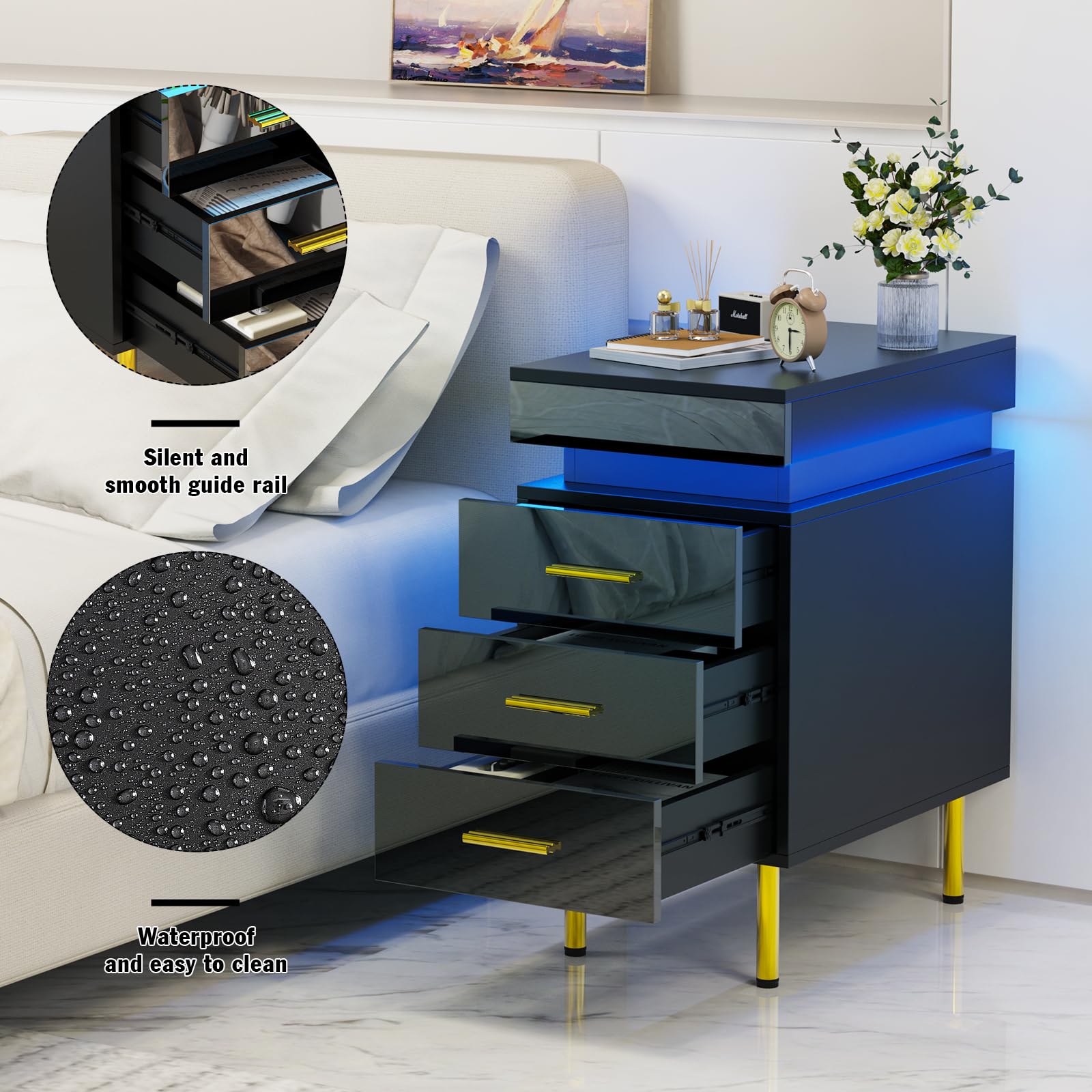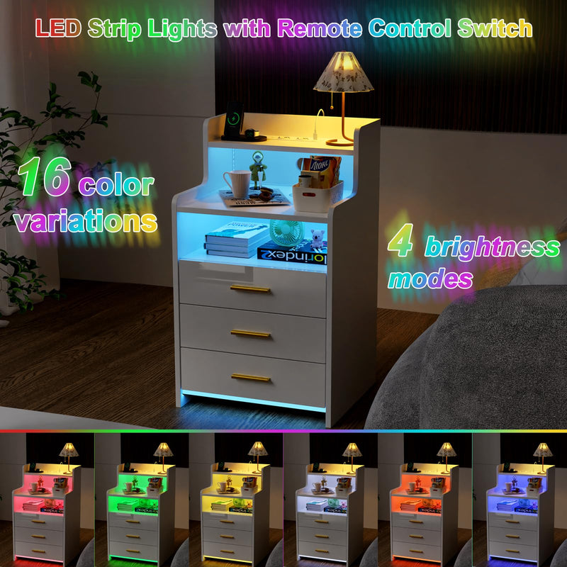 - 【Lumières LED réglables】Cette table de nuit est livrée avec des lumières LED de 16 couleurs RVB et 4 effets lumineux, vous pouvez facilement contrôler les couleurs et les modes avec la télécommande pour régler différentes lumières en fonction des différents designs de la pièce.