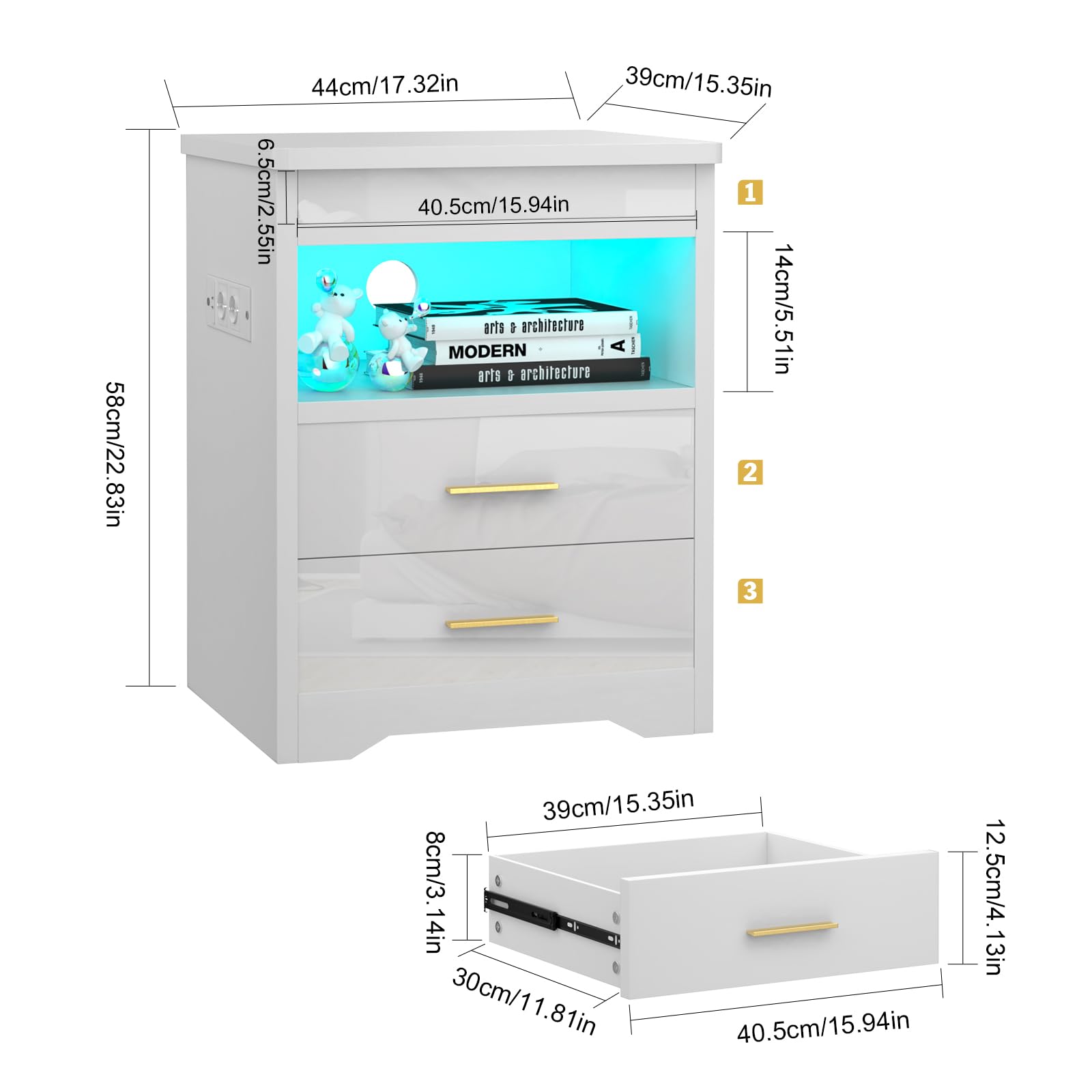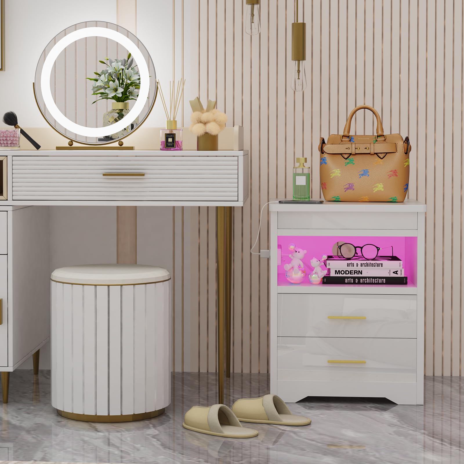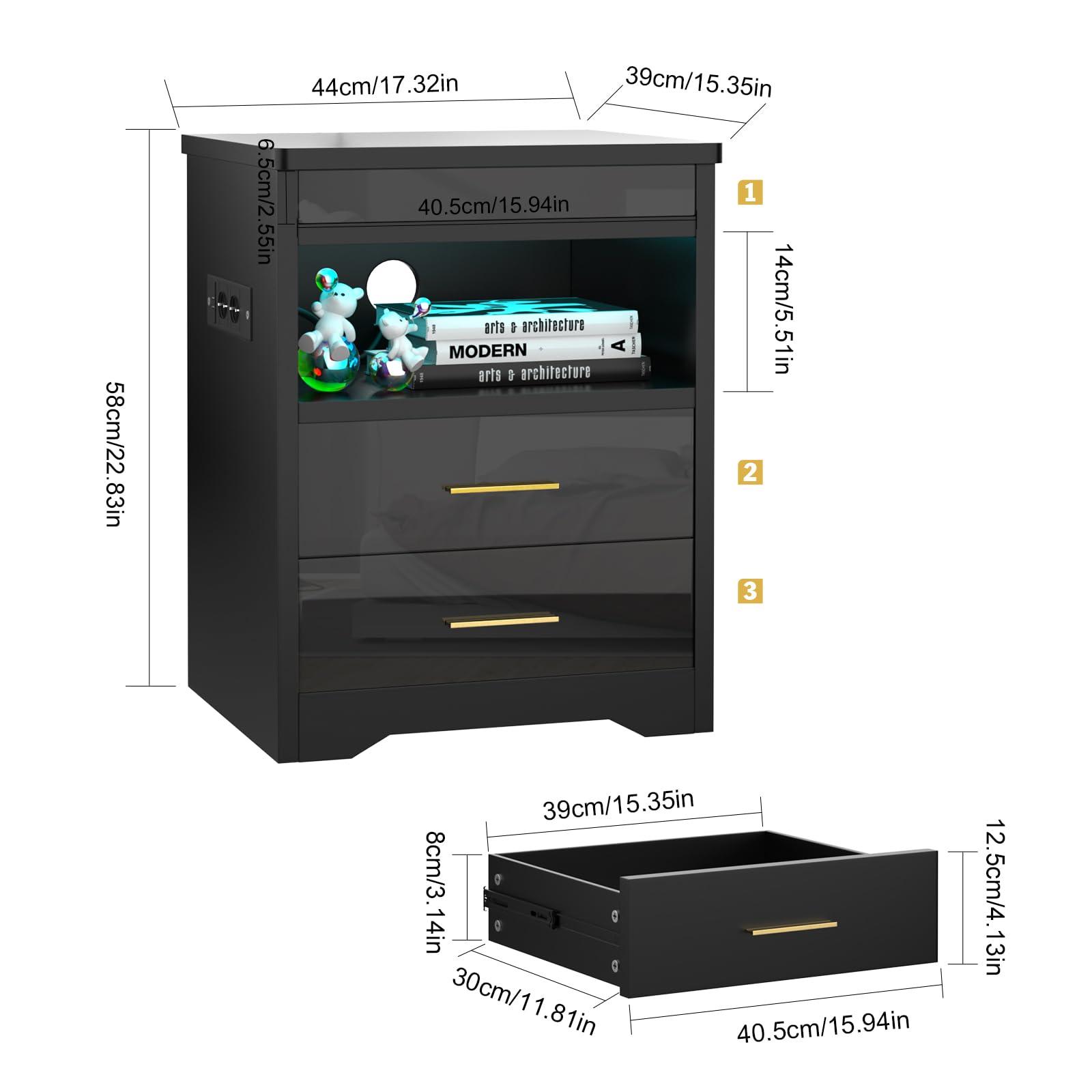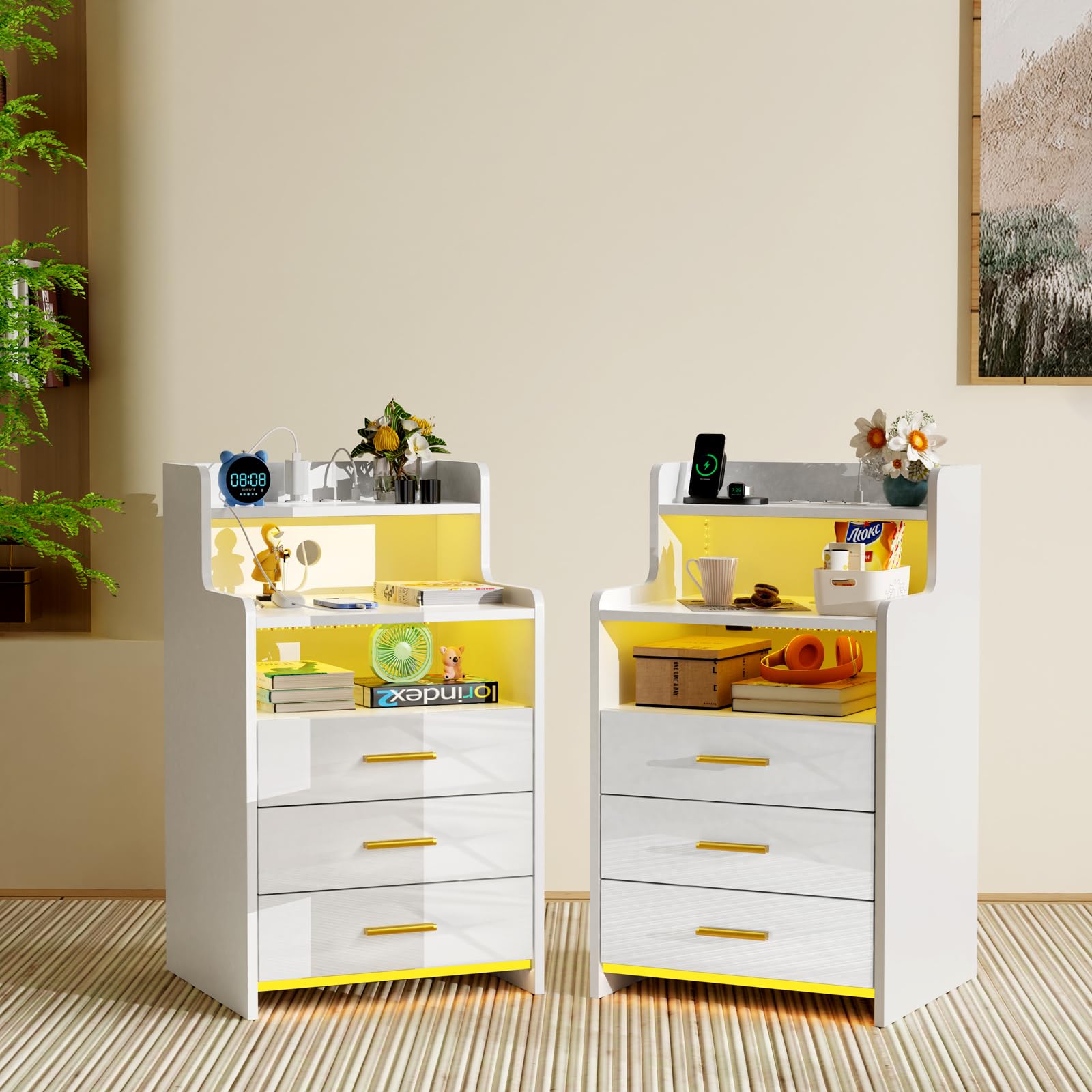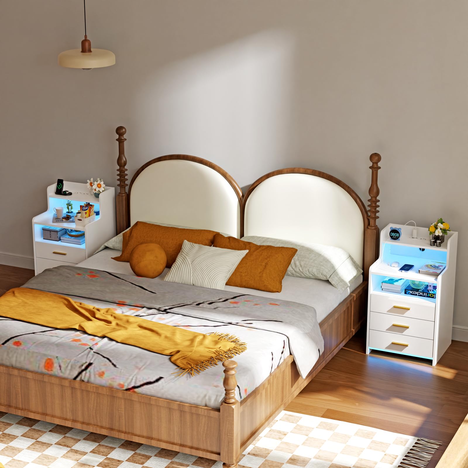 - 【Lumières LED réglables】Cette table de nuit est livrée avec des lumières LED de 16 couleurs RVB et 4 effets lumineux, vous pouvez facilement contrôler les couleurs et les modes avec la télécommande pour régler différentes lumières en fonction des différents designs de la pièce.