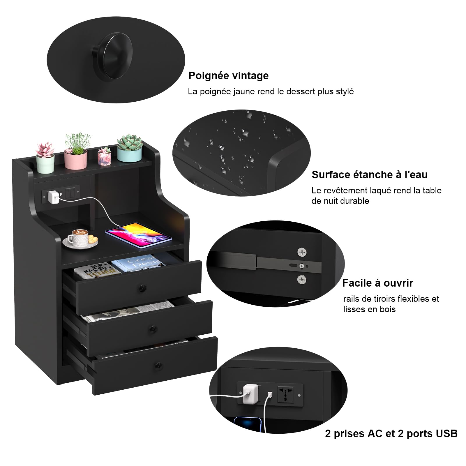 | Couleur | Noir, 3 Tiroirs |