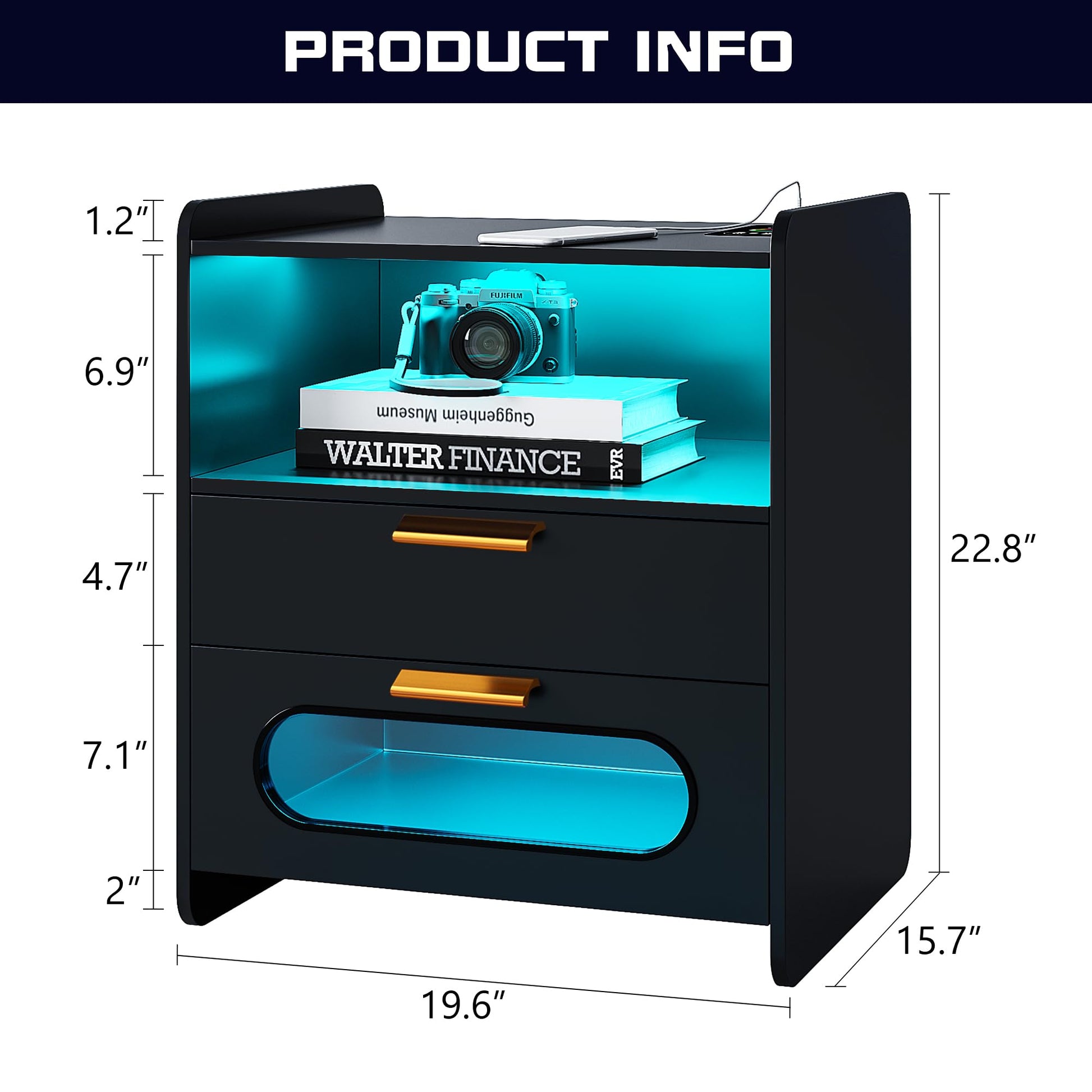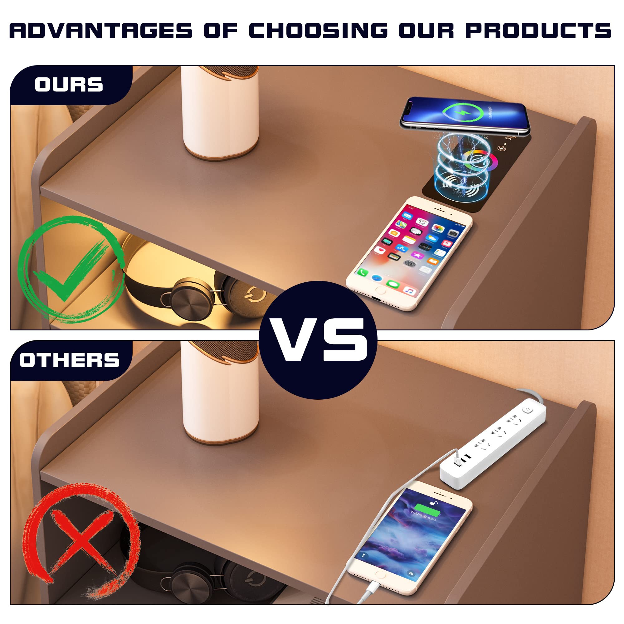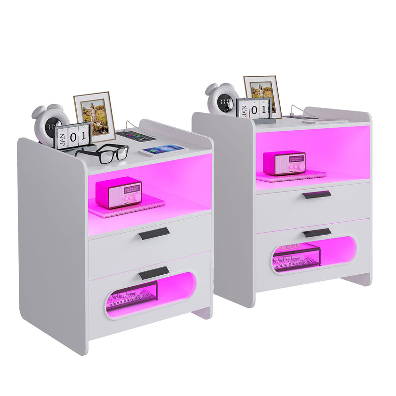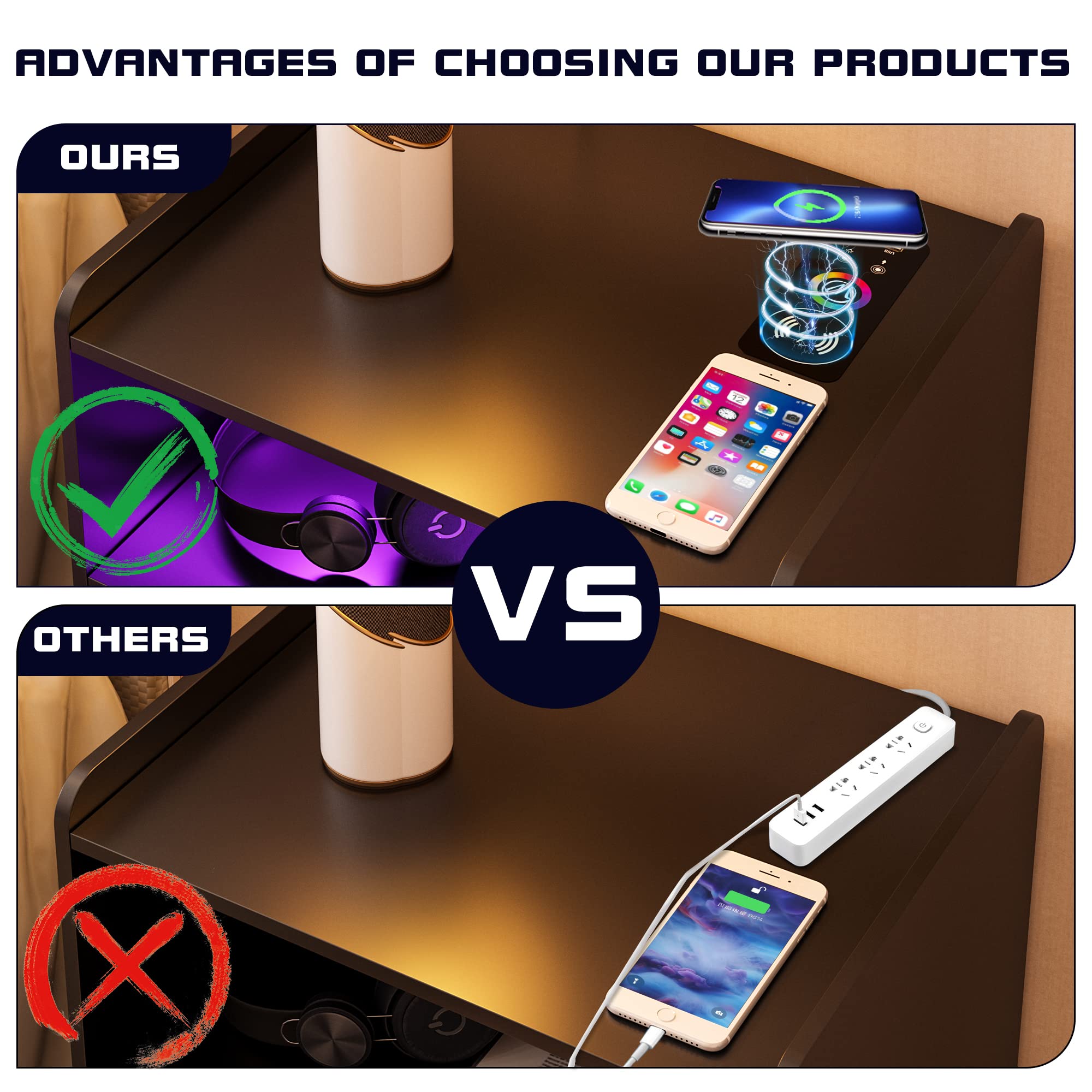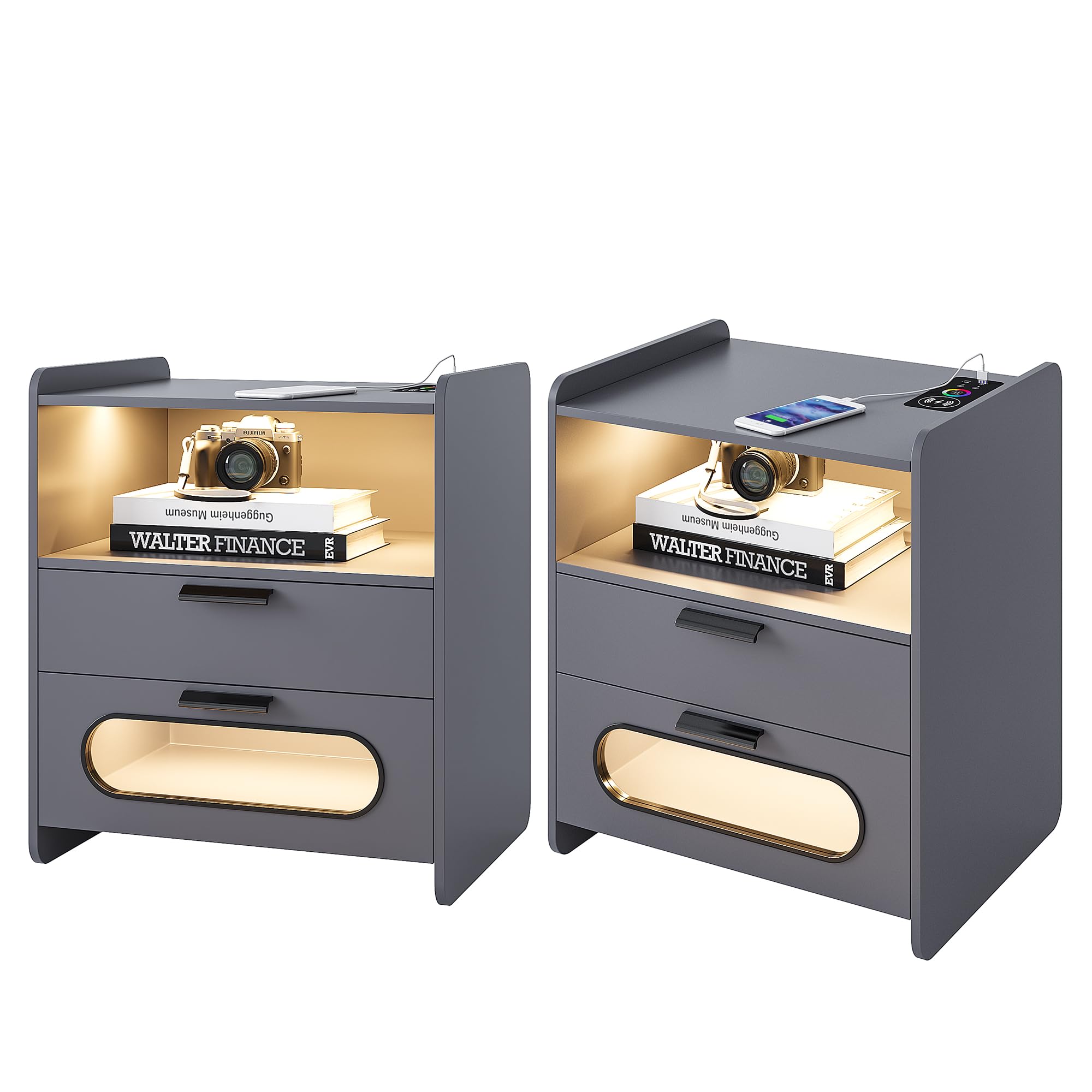 - 👍【Fonction de charge sans fil et ports USB et Type-C 】 : la table de chevet est disposée avec 1 station de charge sans fil et 1 port USB et 1 port de type C et fonction de détection du corps humain. Lorsque vous posez une table de nuit, la lumière LED s'allume automatiquement.