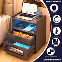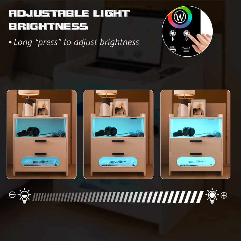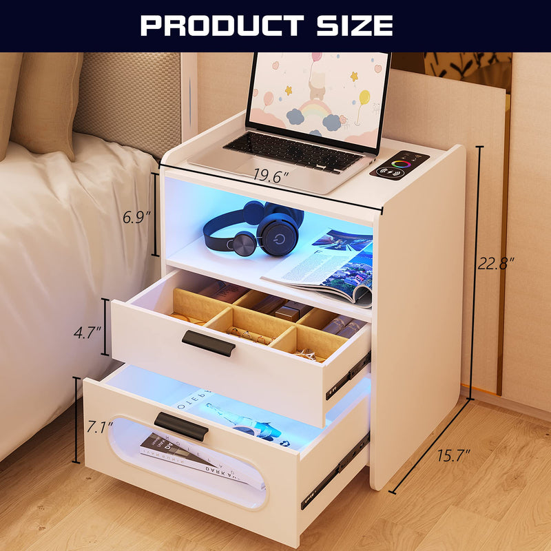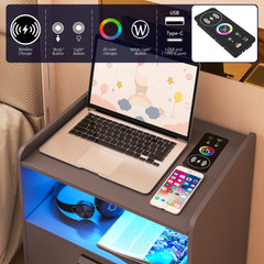 Table de chevet LED avec station de charge