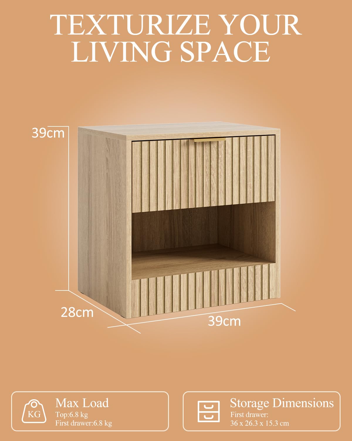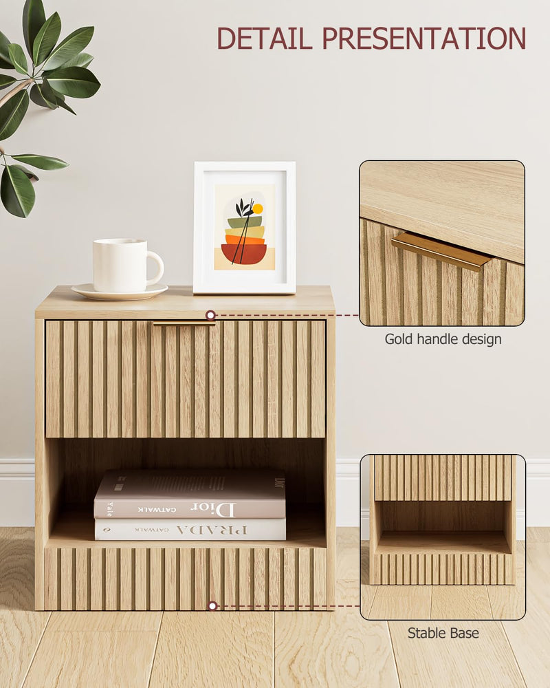- Robuste et durable : fabriquée en bois MDF de haute qualité, cette table de chevet est durable. Son design stable et sans jambes assure une base solide. Cette construction robuste offre une fiabilité et ajoute une touche moderne à votre pièce.