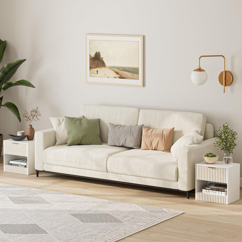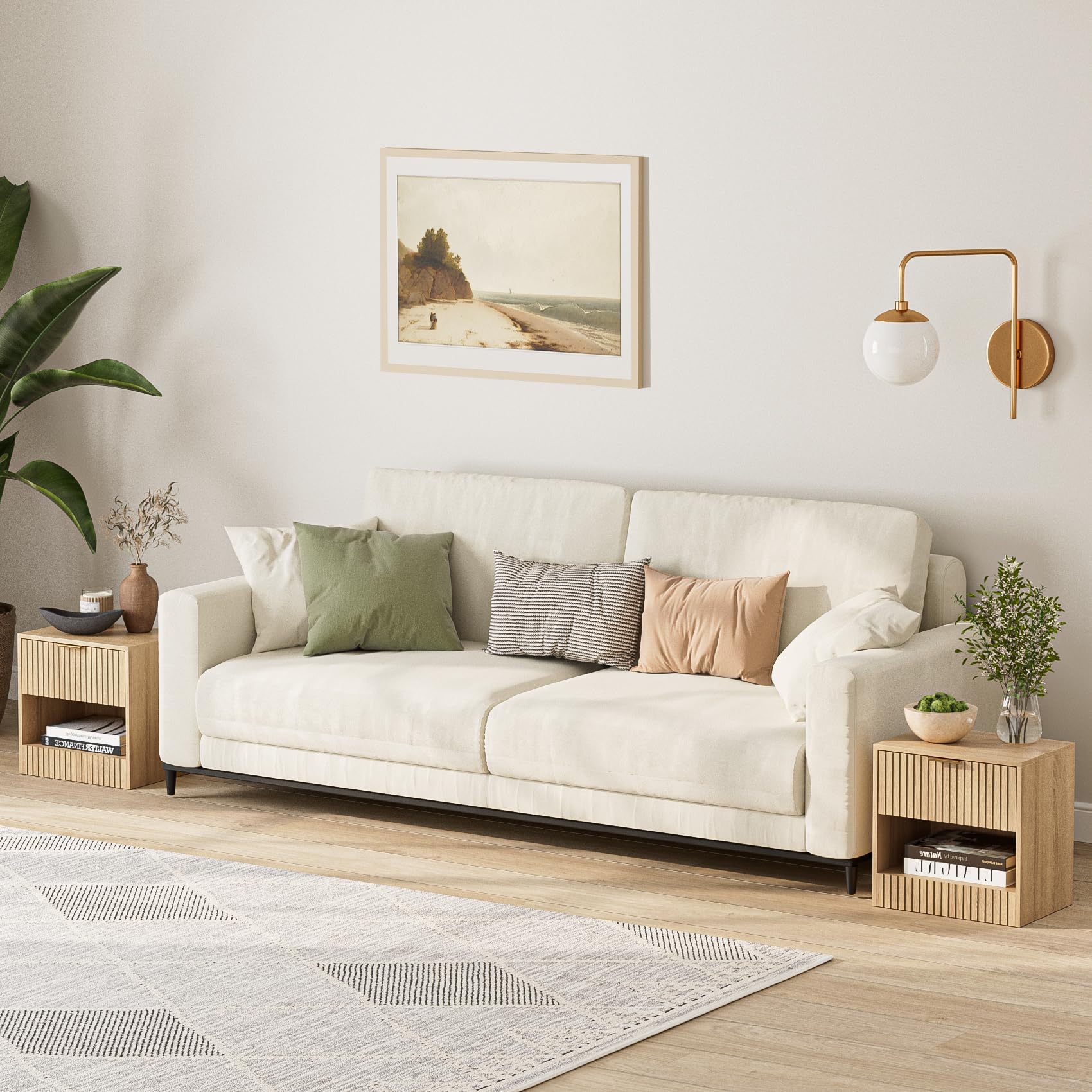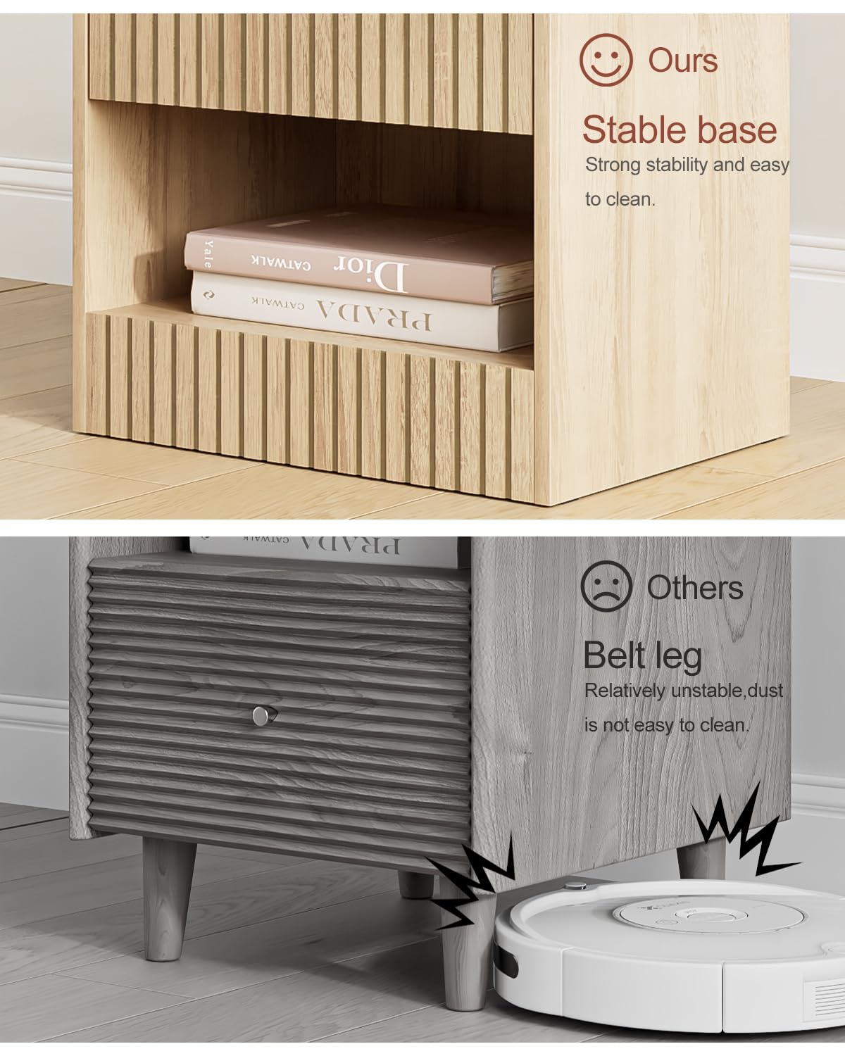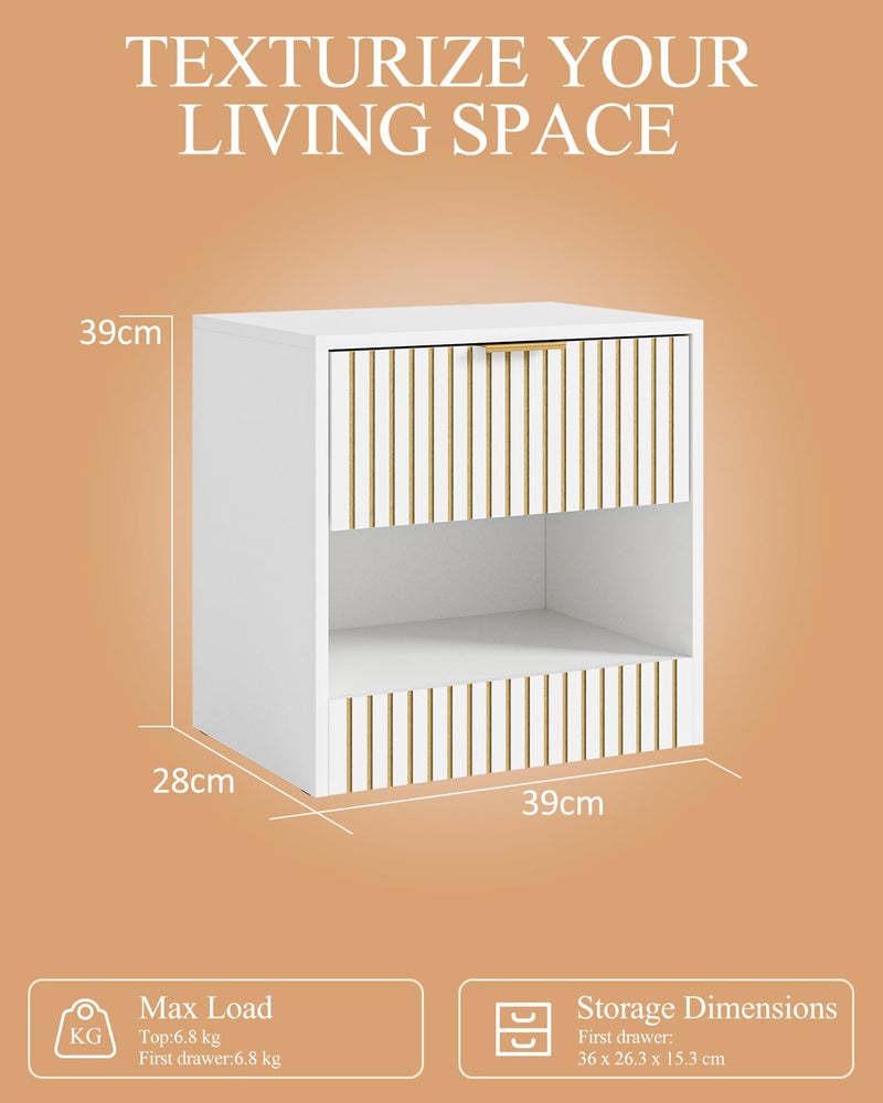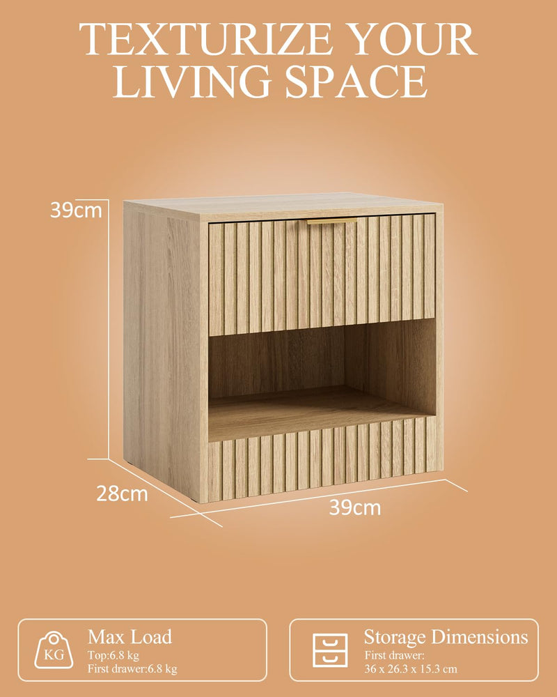 - Peu encombrant et fonctionnel : avec une étagère ouverte et un tiroir, nos tables de chevet offrent des options de rangement flexibles. Le compartiment ouvert est idéal pour la décoration ou les essentiels, tandis que le tiroir cache des objets personnels. Maximisez votre espace sans sacrifier le style.