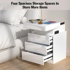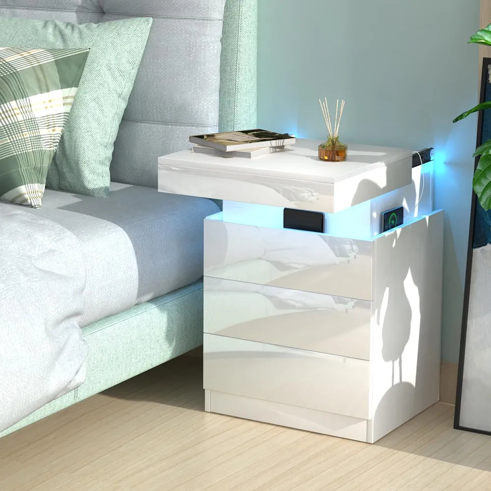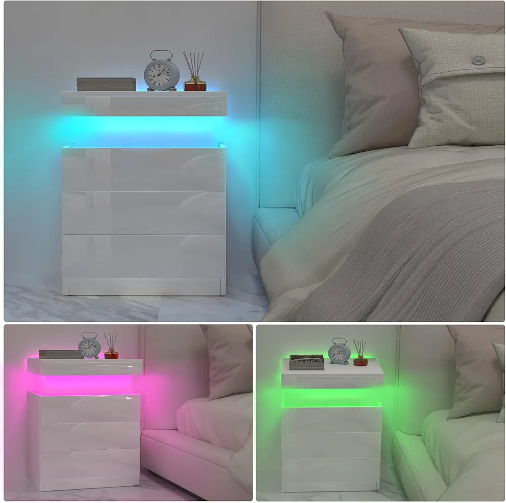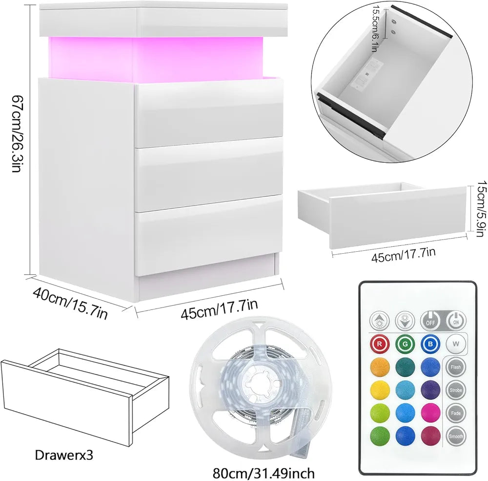 - 【Beaucoup de rangement】 - Il y a aussi une armoire ouvrante en haut par rapport au même modèle de table de nuit, plus d'espace de rangement. La grande capacité de 3 tiroirs offre suffisamment de place pour organiser les petits objets, beaucoup de place pour les clients. Convient pour le salon, la chambre et le bureau à domicile. Cette table de chevet minimaliste à DEL est également le cadeau idéal pour la famille et les amis.