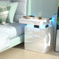 - 【Table de chevet à éclairage LED】 - La table de chevet est équipée de belles lumières LED multicolores. 16 changements de couleur et 4 modes de luminosité au choix. Pour votre commodité, cette table de chevet prend en charge la télécommande infrarouge pour contrôler les lumières LED.