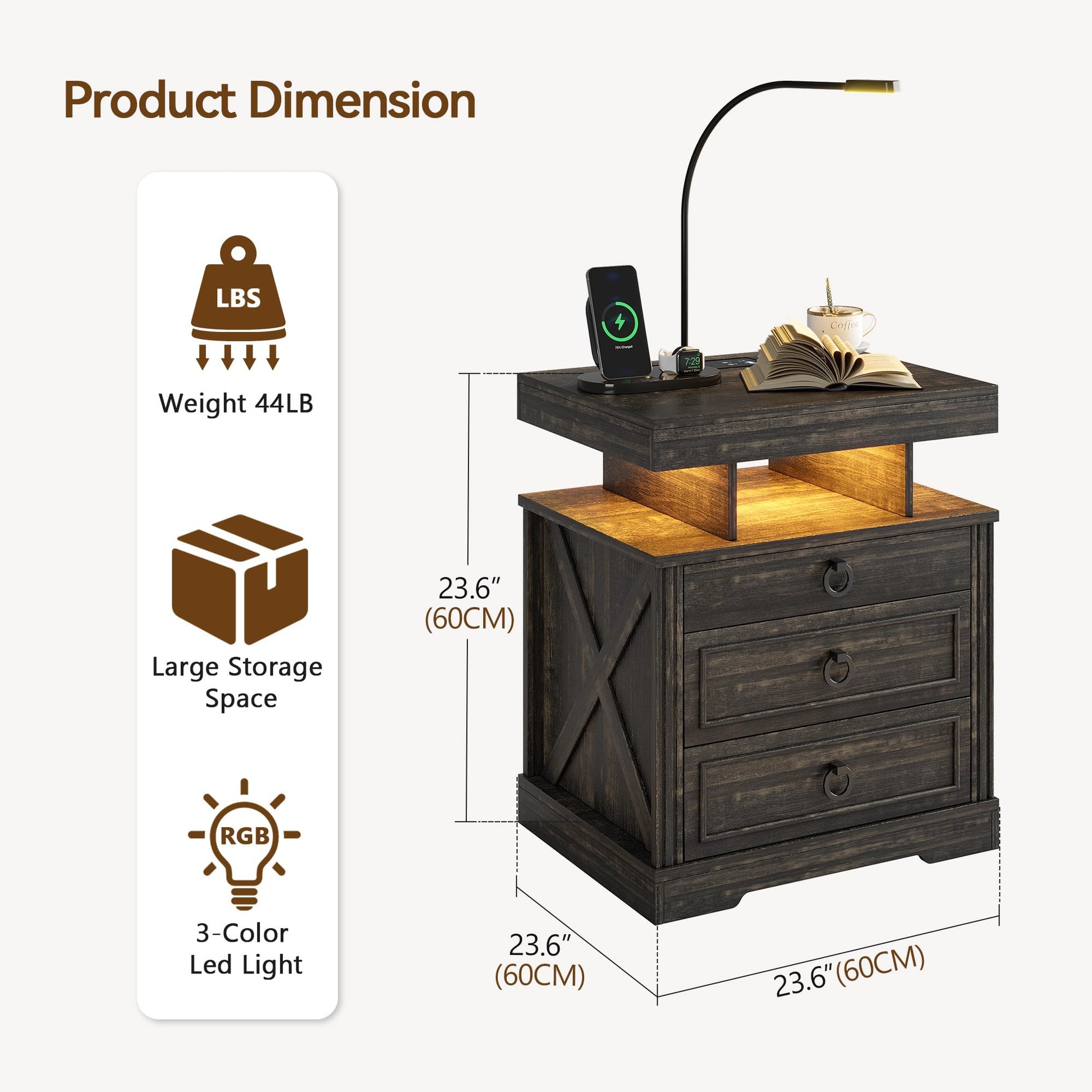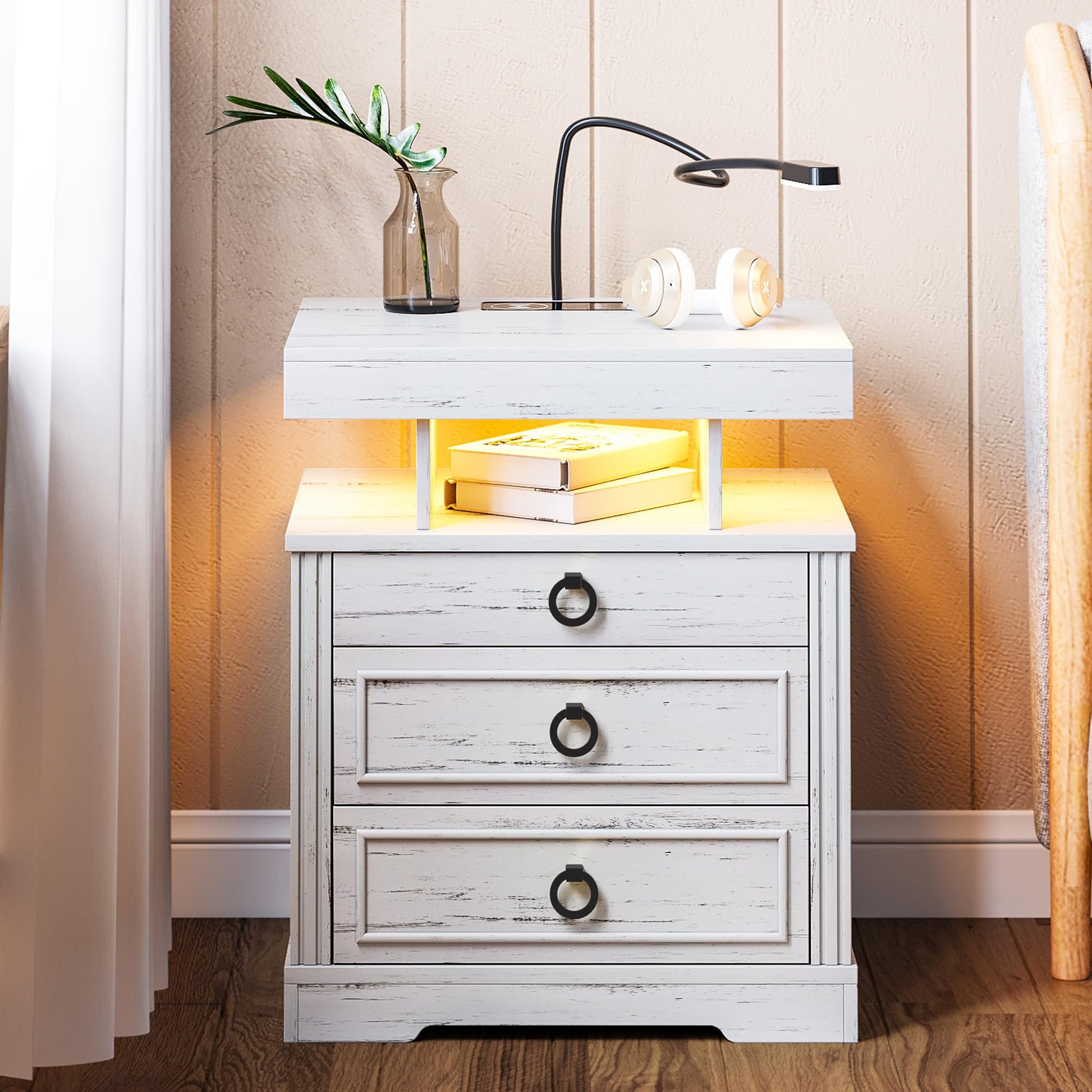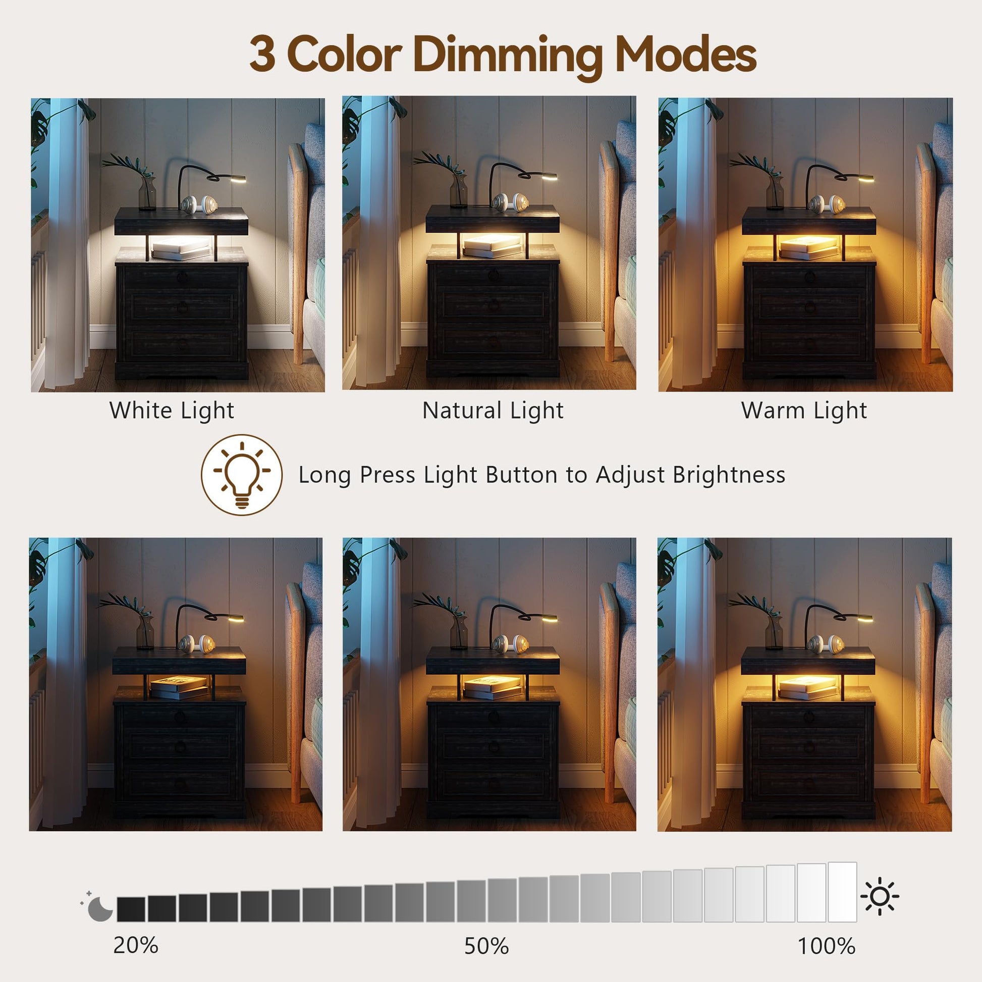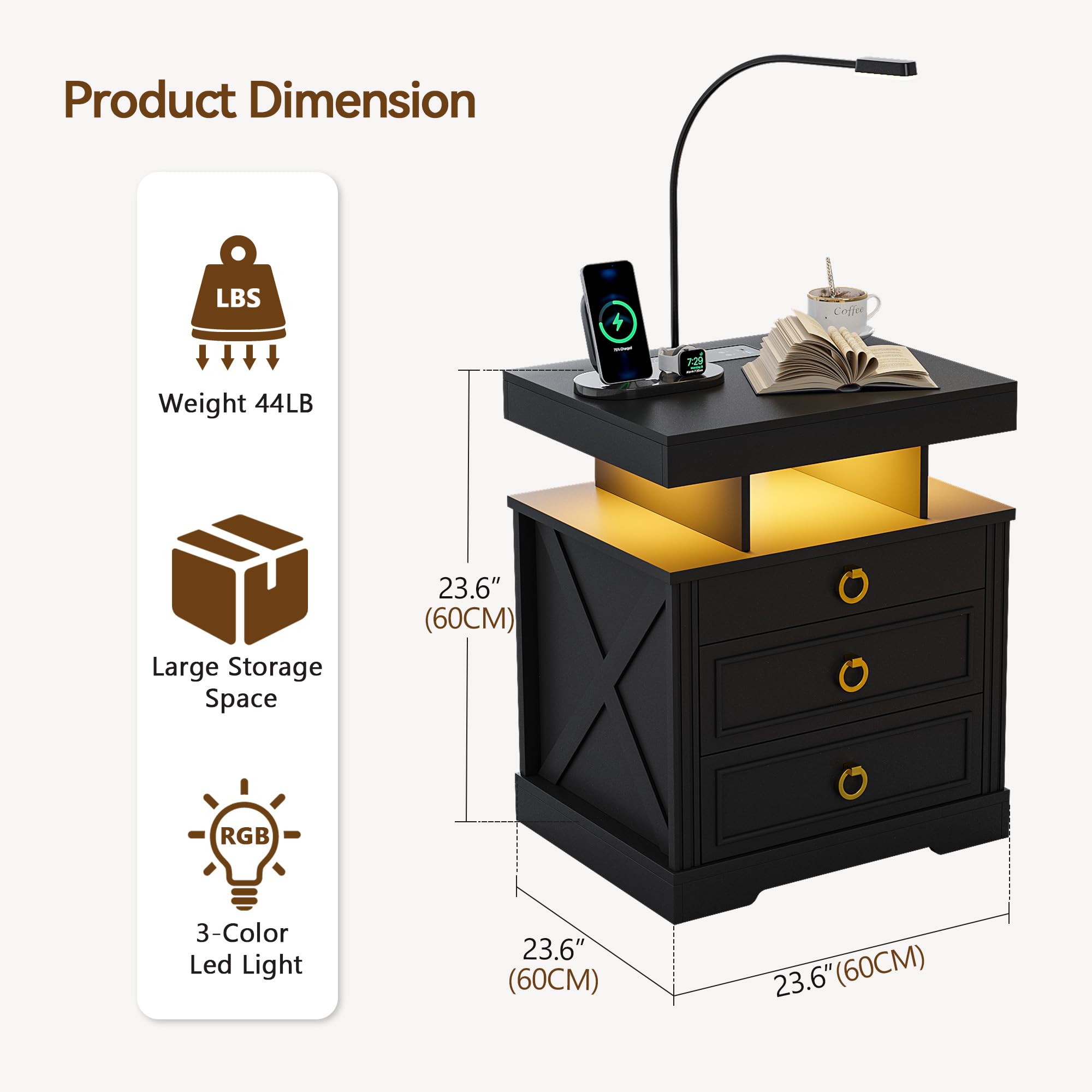 - 【Station de charge pratique】 Cette table de chevet intelligente est livrée avec une station de charge sans fil pour charger facilement votre téléphone sans câbles, en plus des ports USB et
