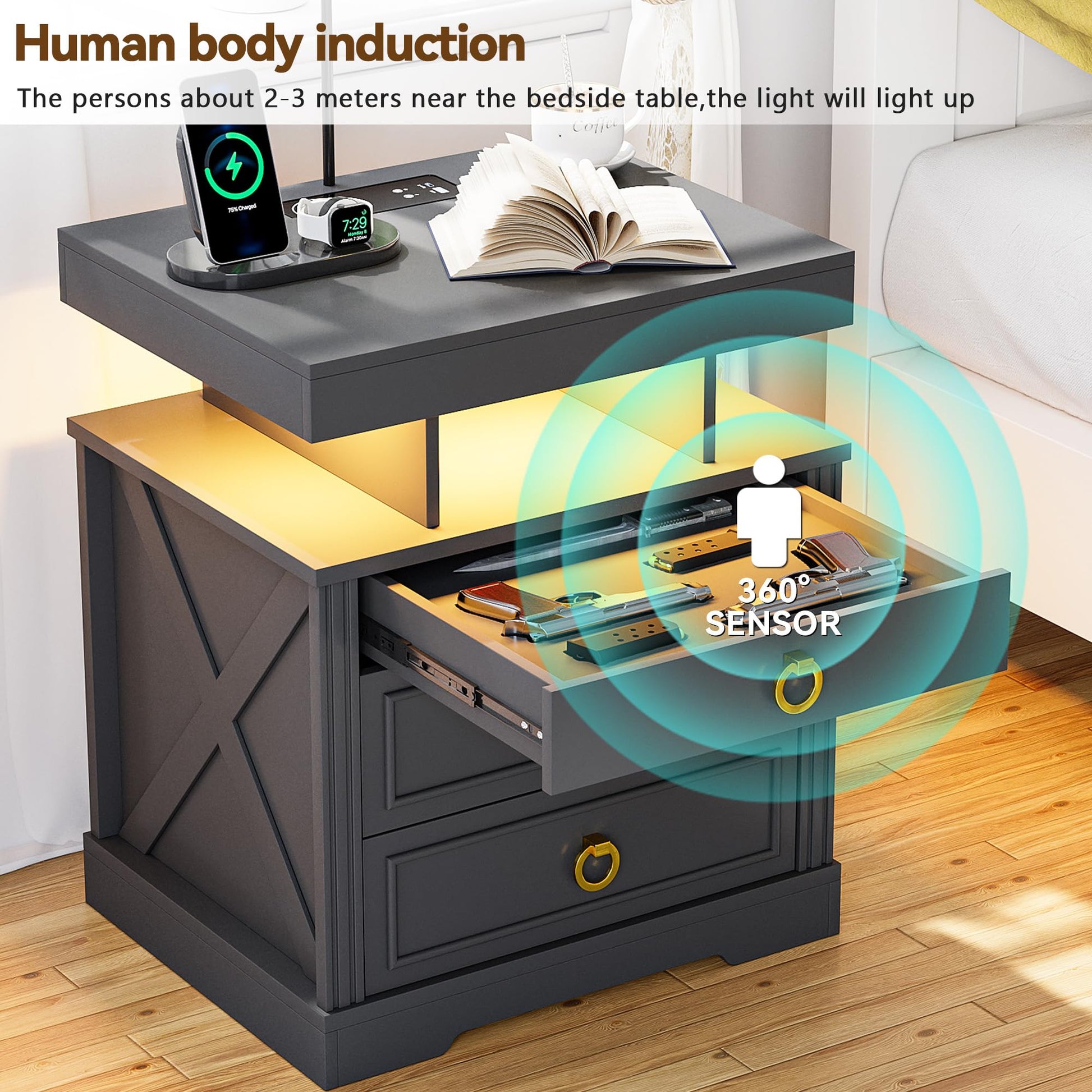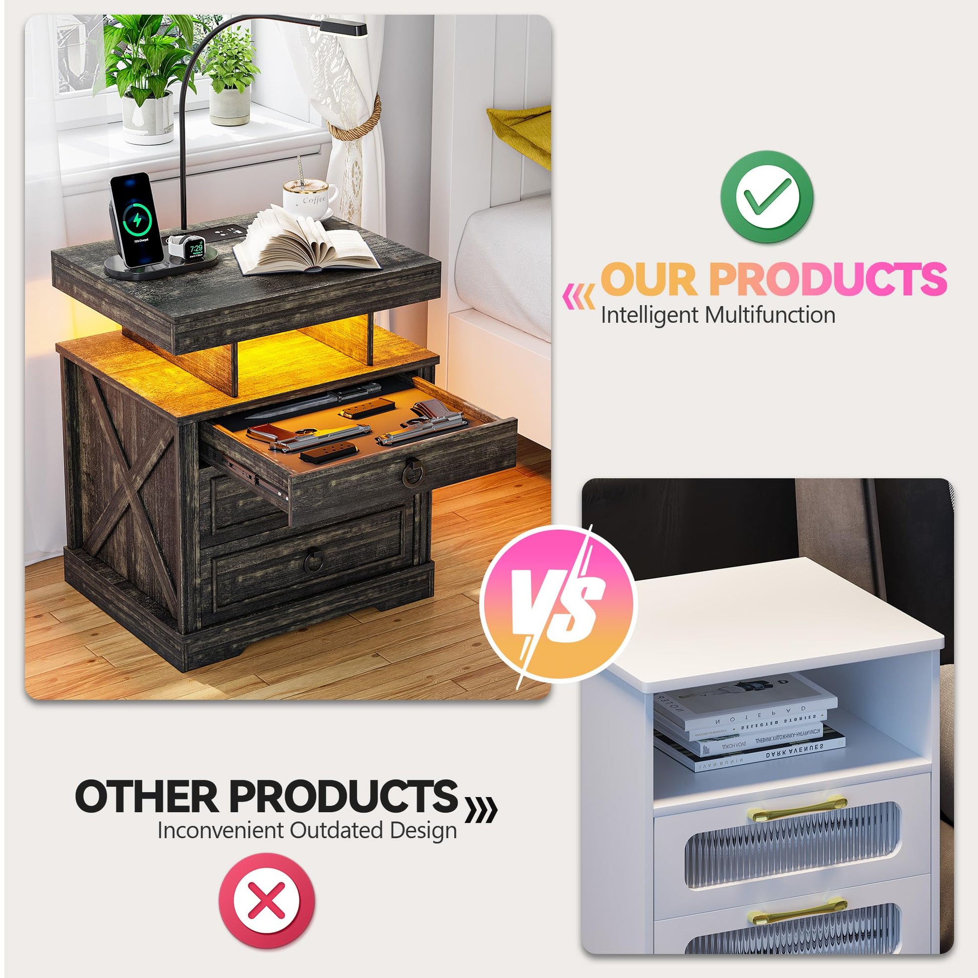 - 【Espace de rangement spacieux】 Il est livré avec 3 tiroirs, 1 compartiment ouvert et 1 étui coulissant pour armes à feu pour vous offrir beaucoup d'espace. Il convient à toutes les pièces