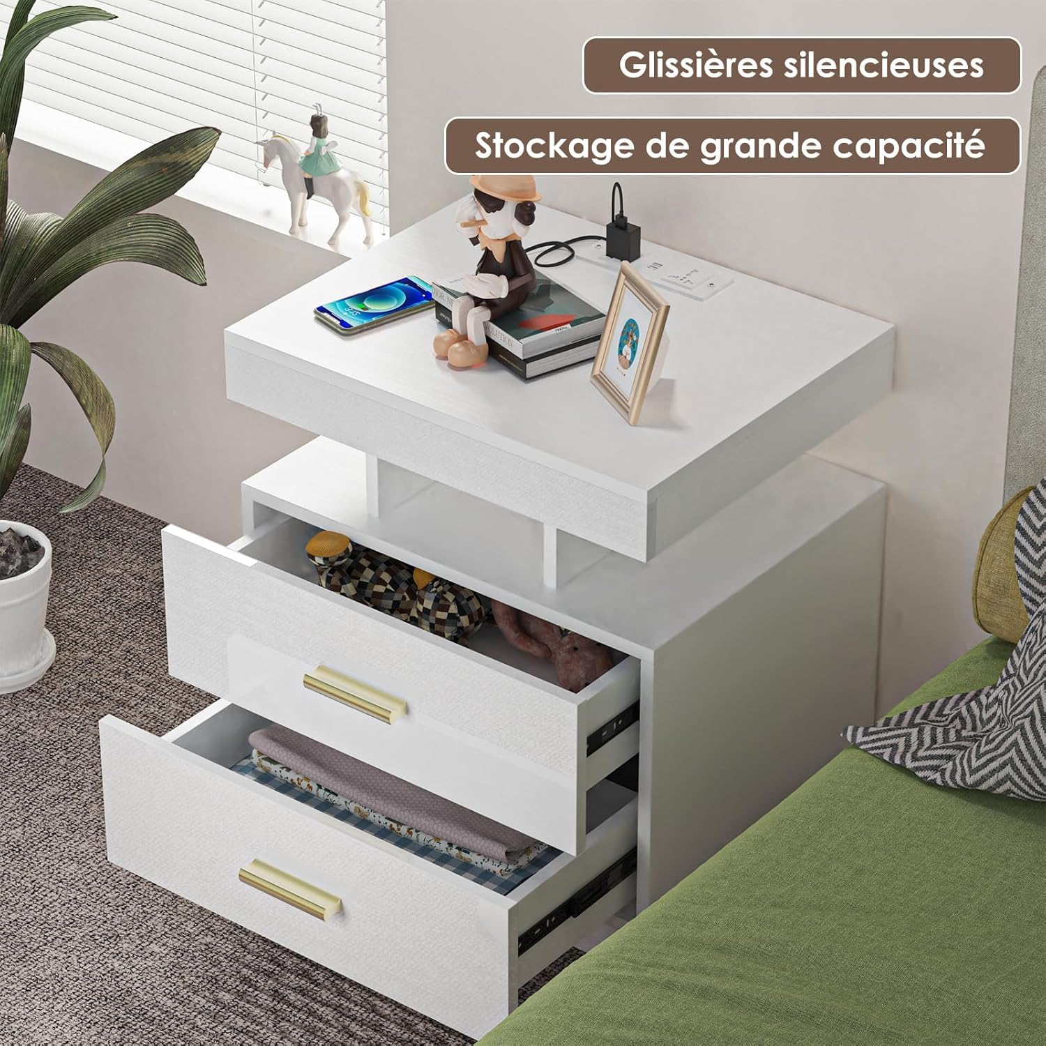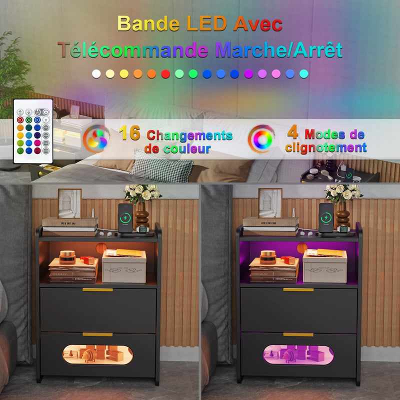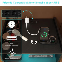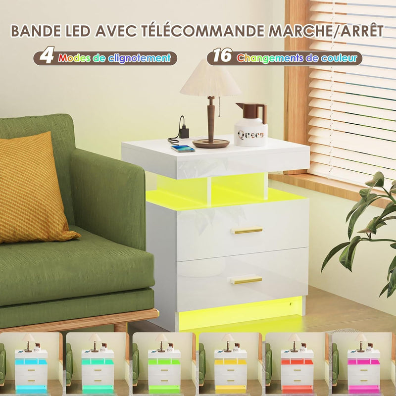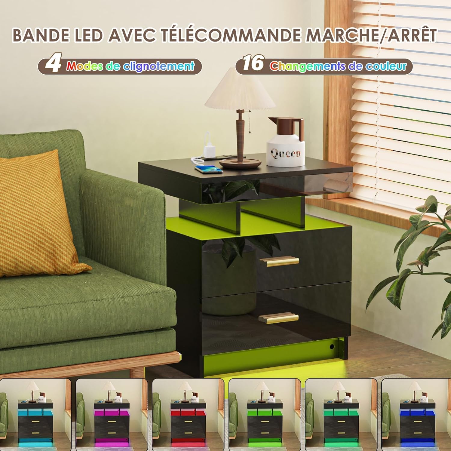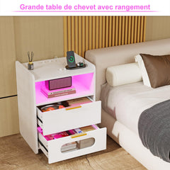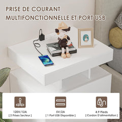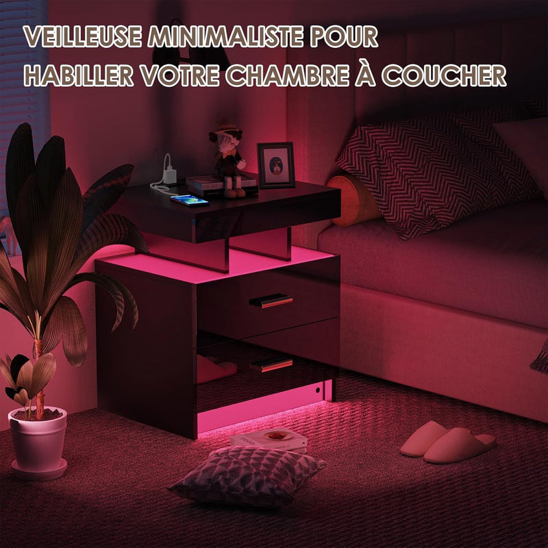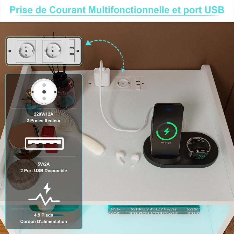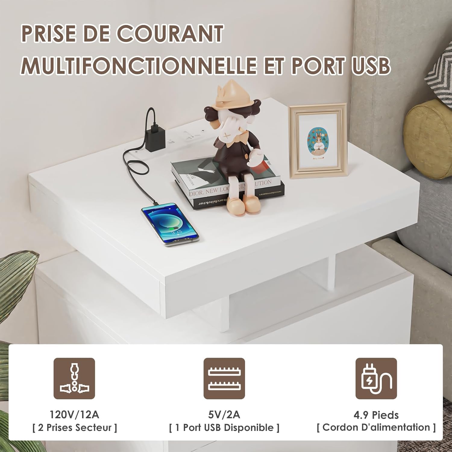 Table de chevet rectangle LED avec 2 Ports et 2 Prises USB