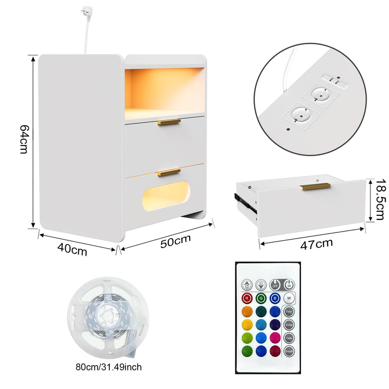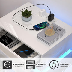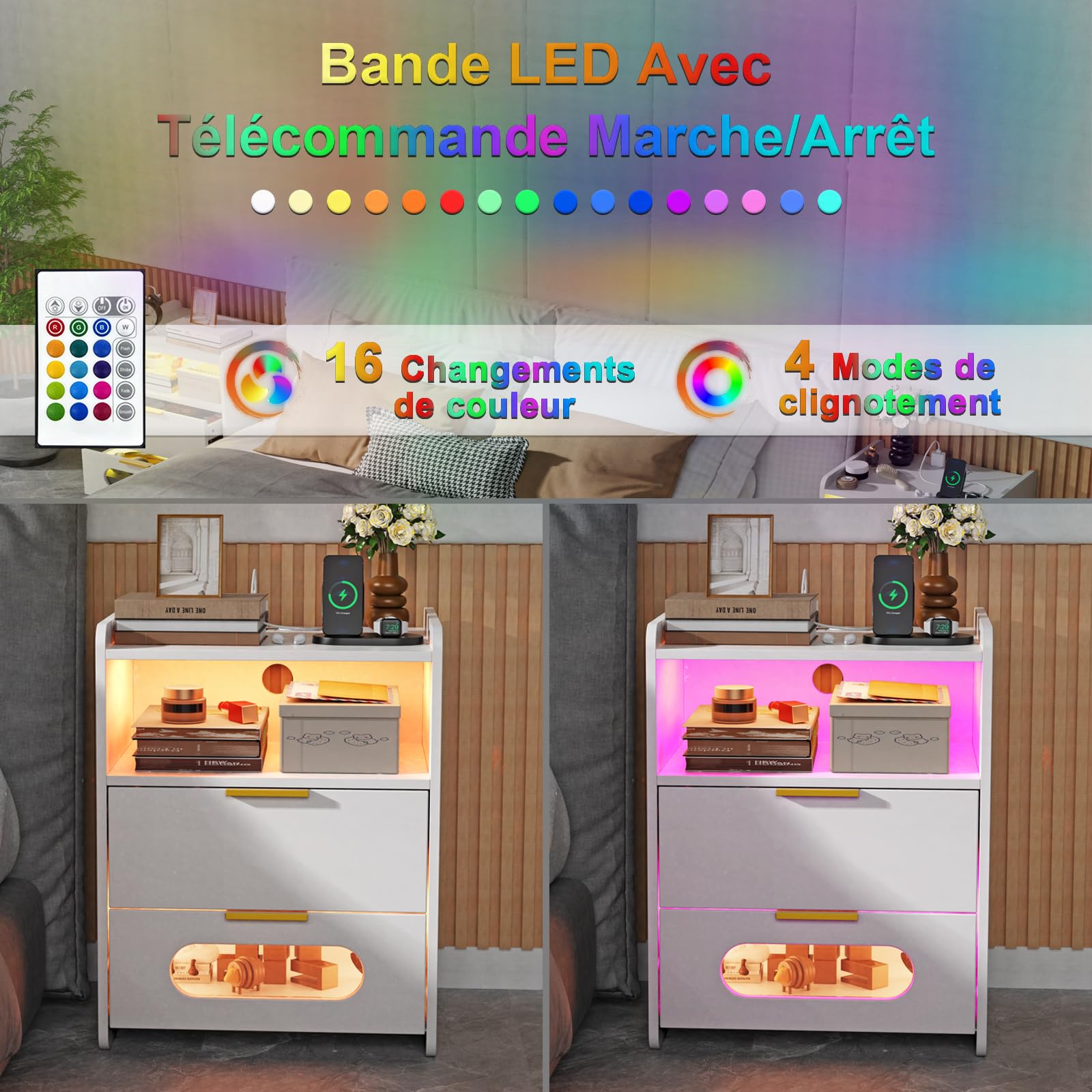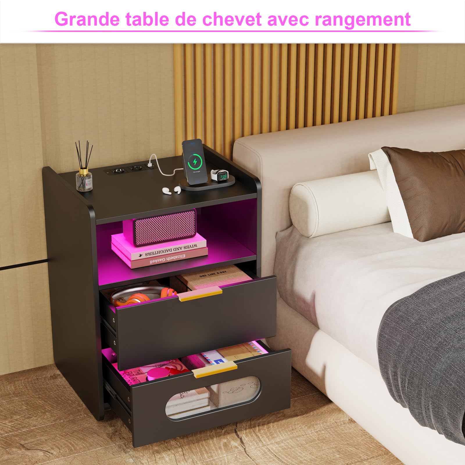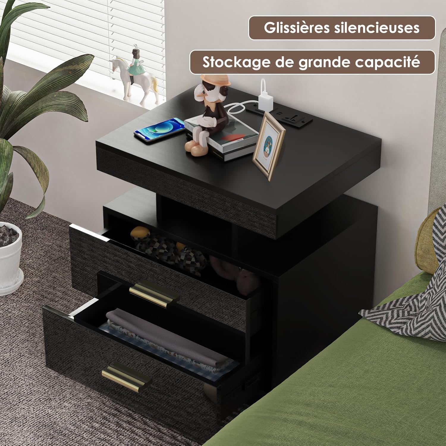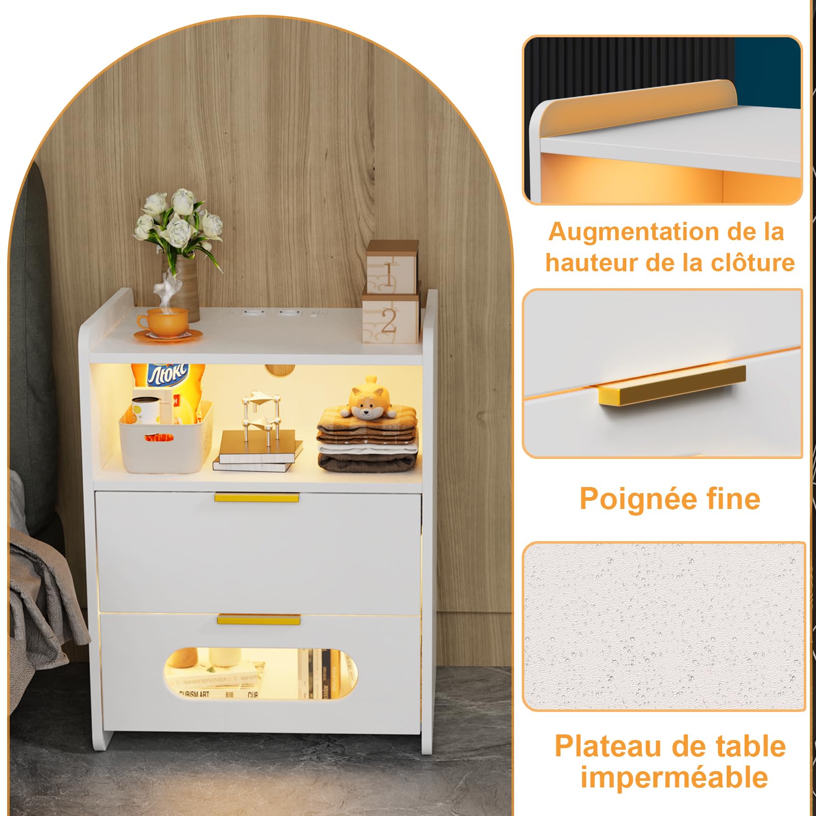 Table de chevet rectangle LED avec 2 Ports et 2 Prises USB