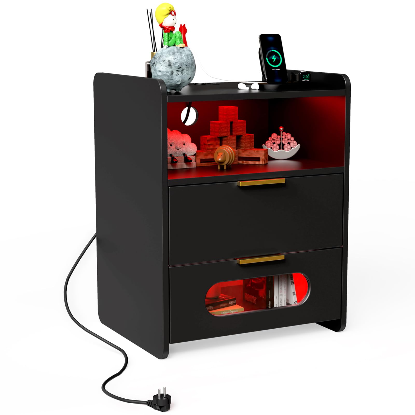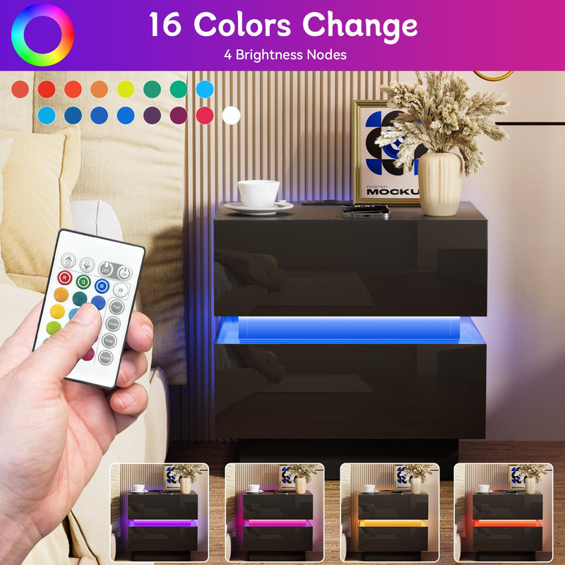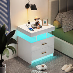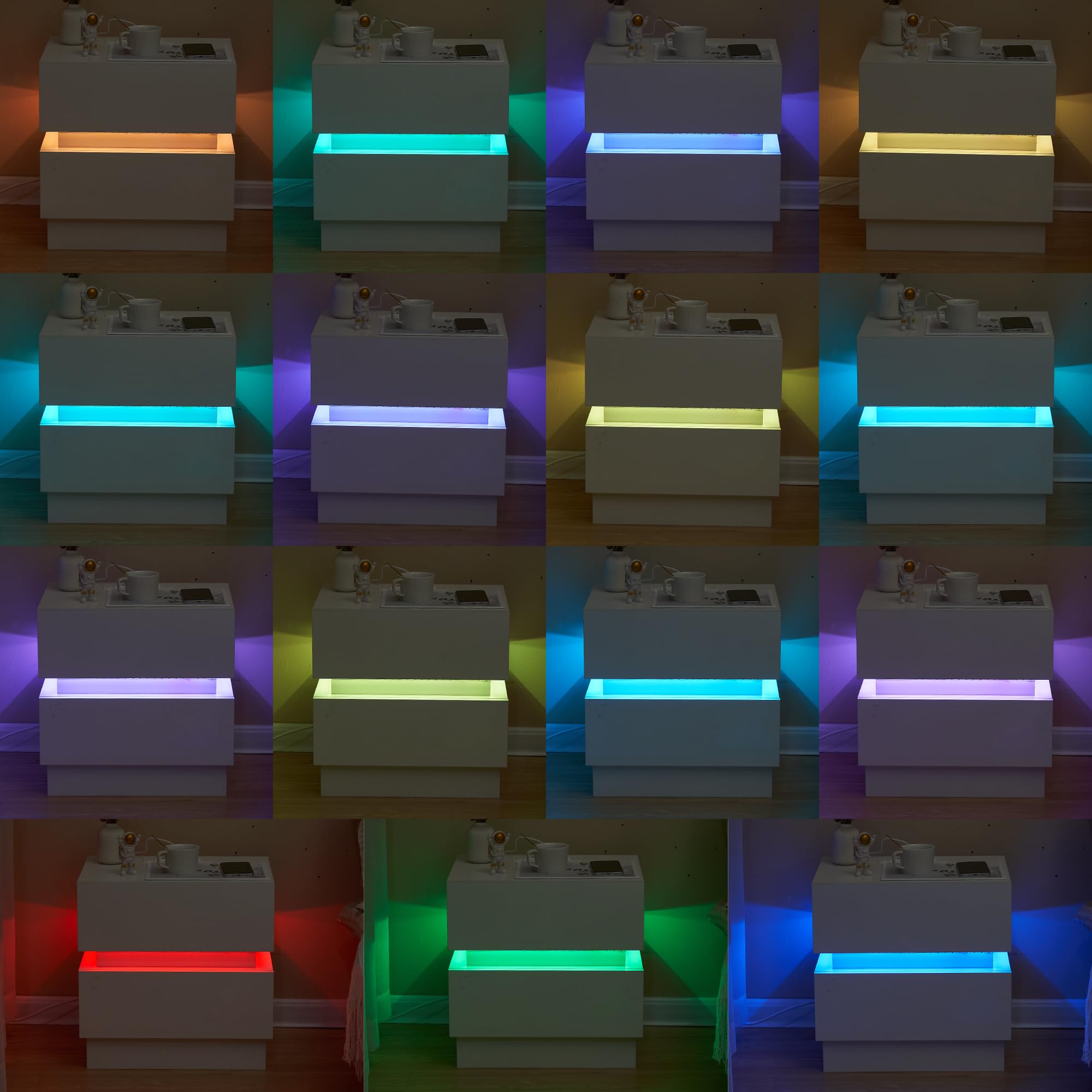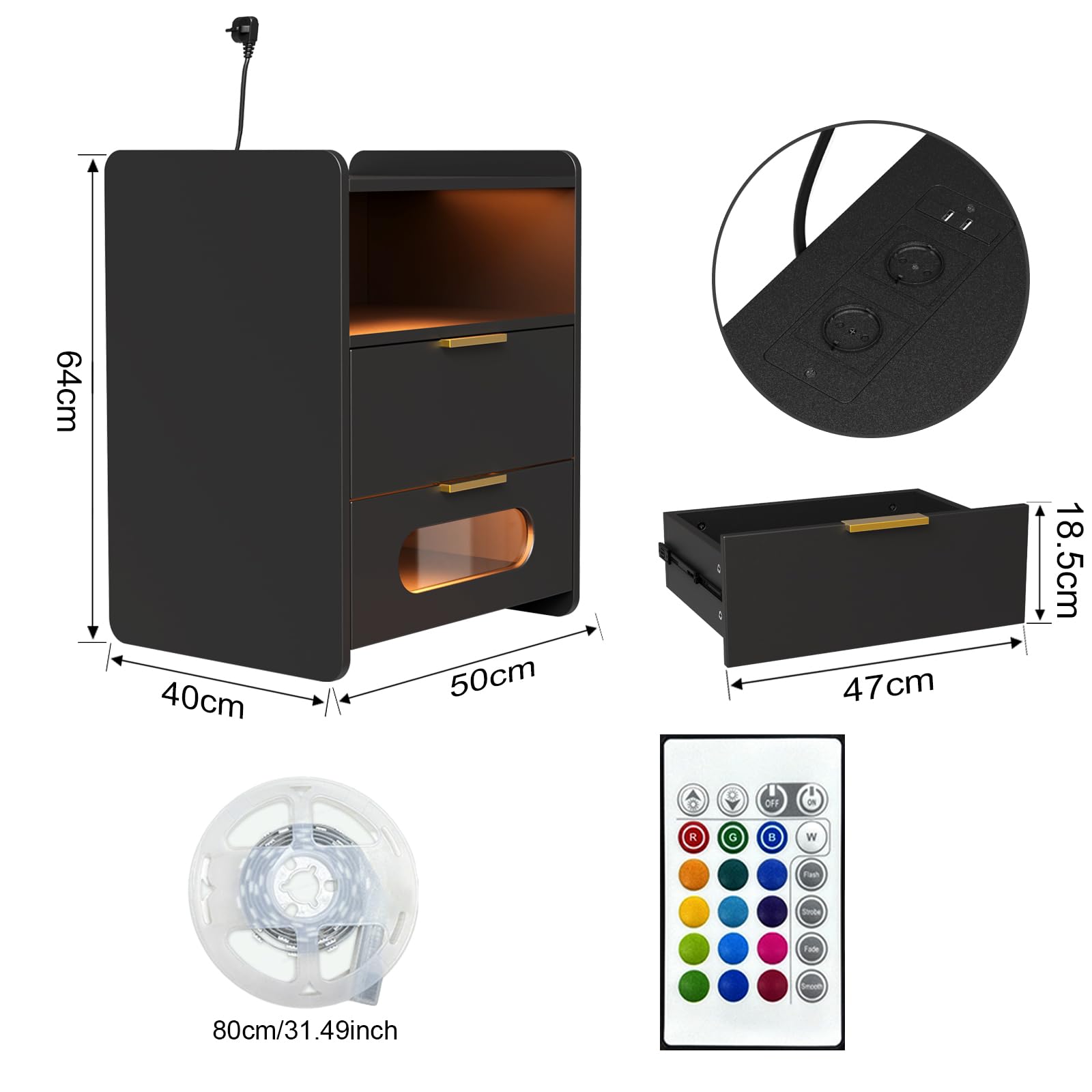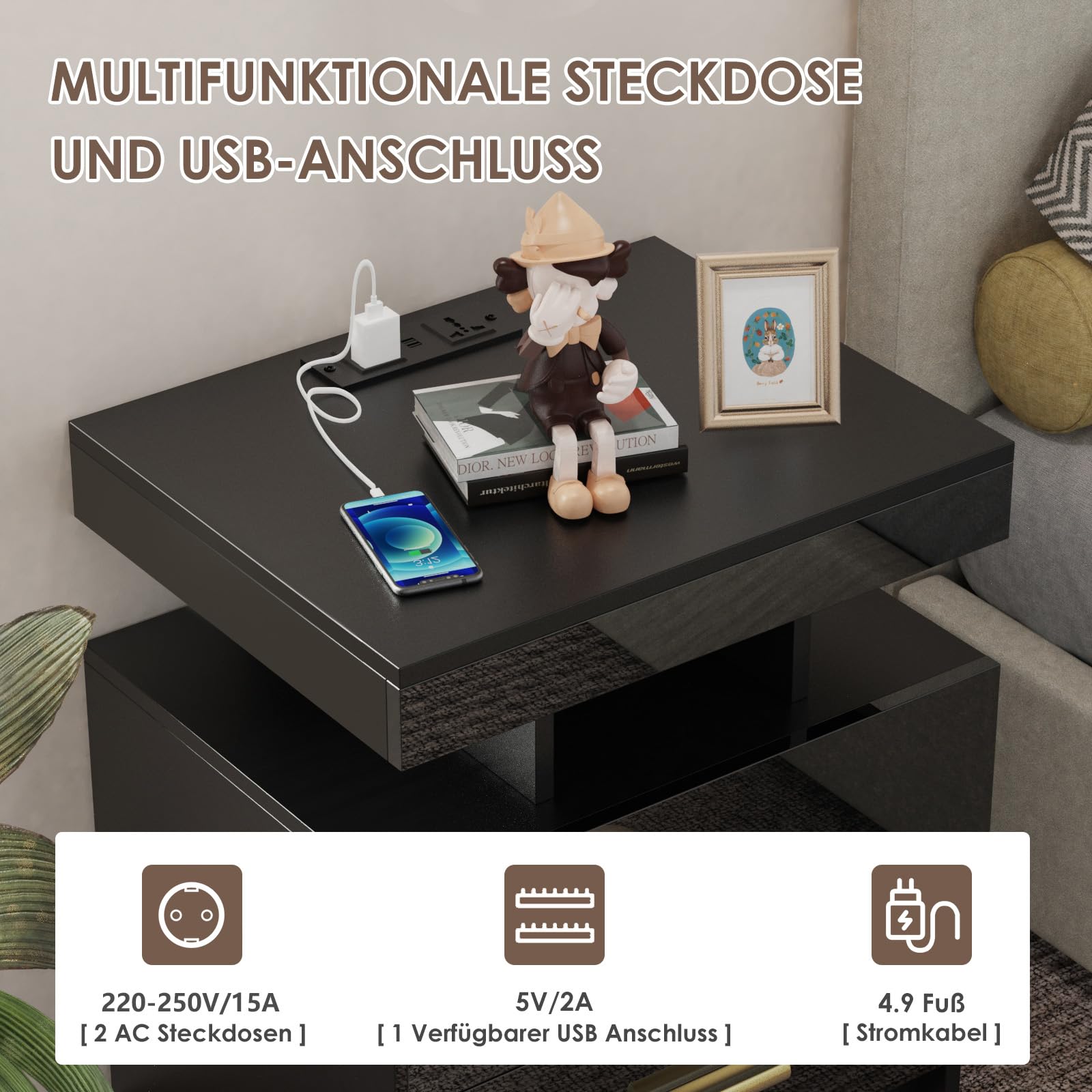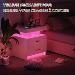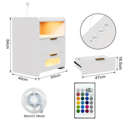 Table de chevet rectangle LED avec 2 Ports et 2 Prises USB