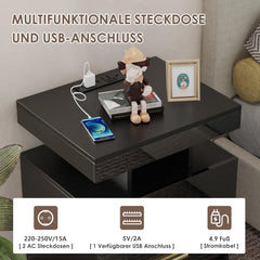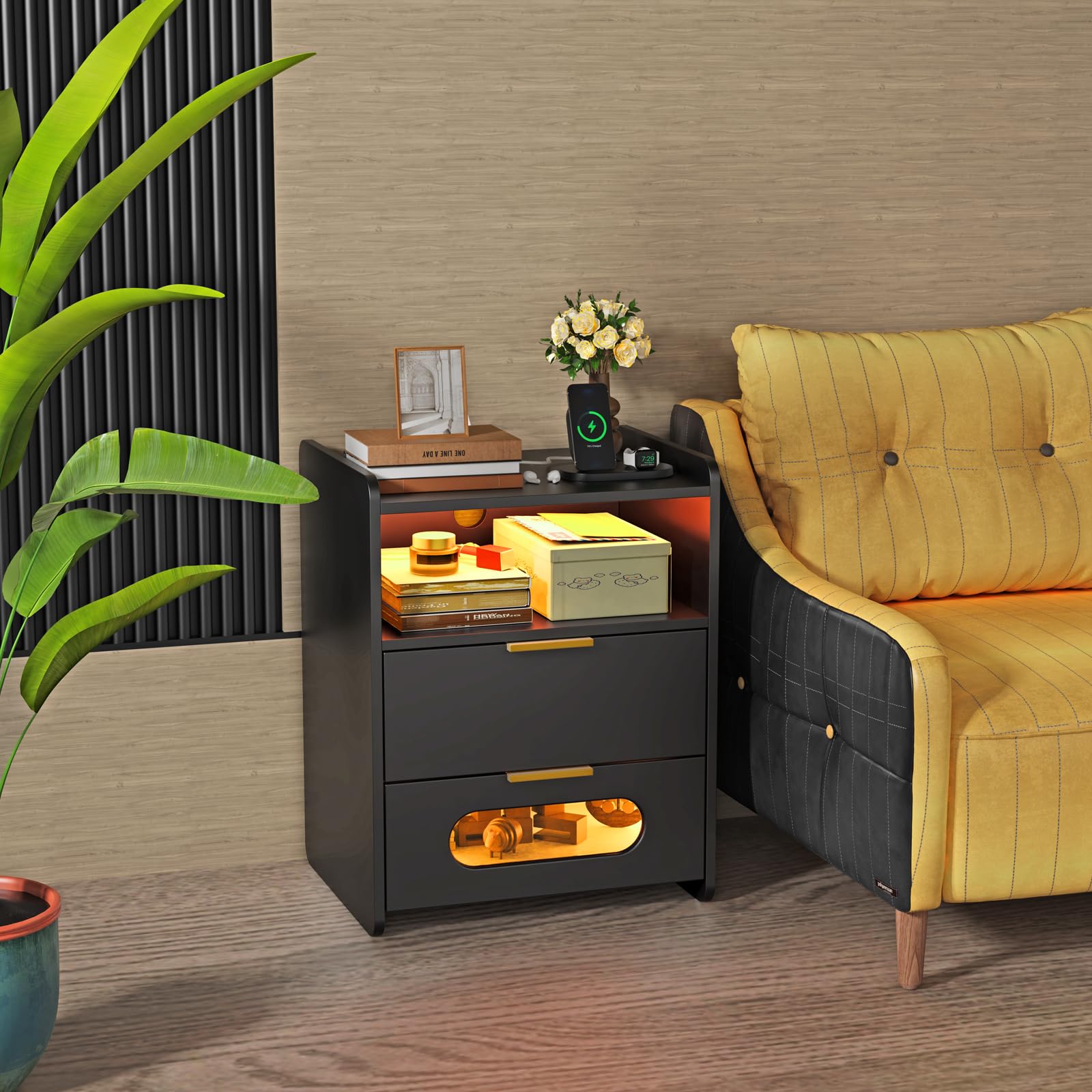 - 【Table de Chevet avec Sockets】Le cordon d'alimentation de 100 cm vous permet de déplacer facilement la table d'appoint, La station de charge dispose de 2 prises standard et 2 ports USB