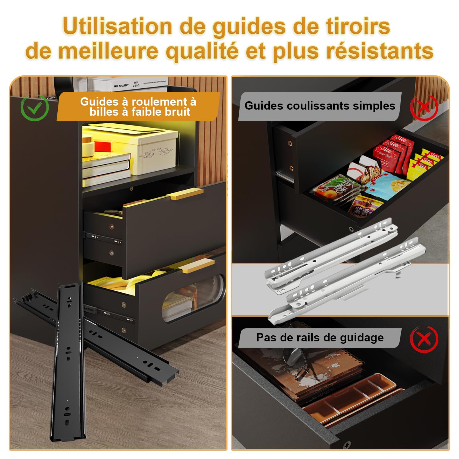 - 【Tiroir avec Glissières】Grâce aux glissières haut de gamme, le tiroir glisse en douceur et en silence, il n’y a pas de bruit gênant, lorsque vous l’ouvrez et que vous cherchez quelque chose.Leur charme contemporain embellit votre espace, aussi bien votre chambre que votre salon