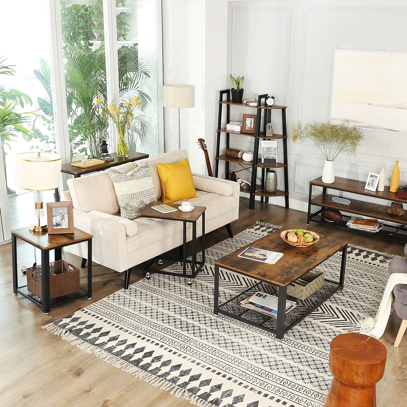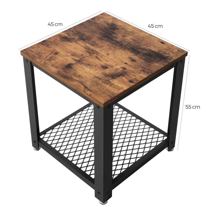 - Style industriel : Avec une surface boisée marron rustique, des pieds en métal noir et une étagère grillagée, cette table d'appoint industrielle apporte de l’originalité à votre entrée