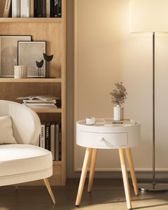 Table de chevet ronde avec Tiroir