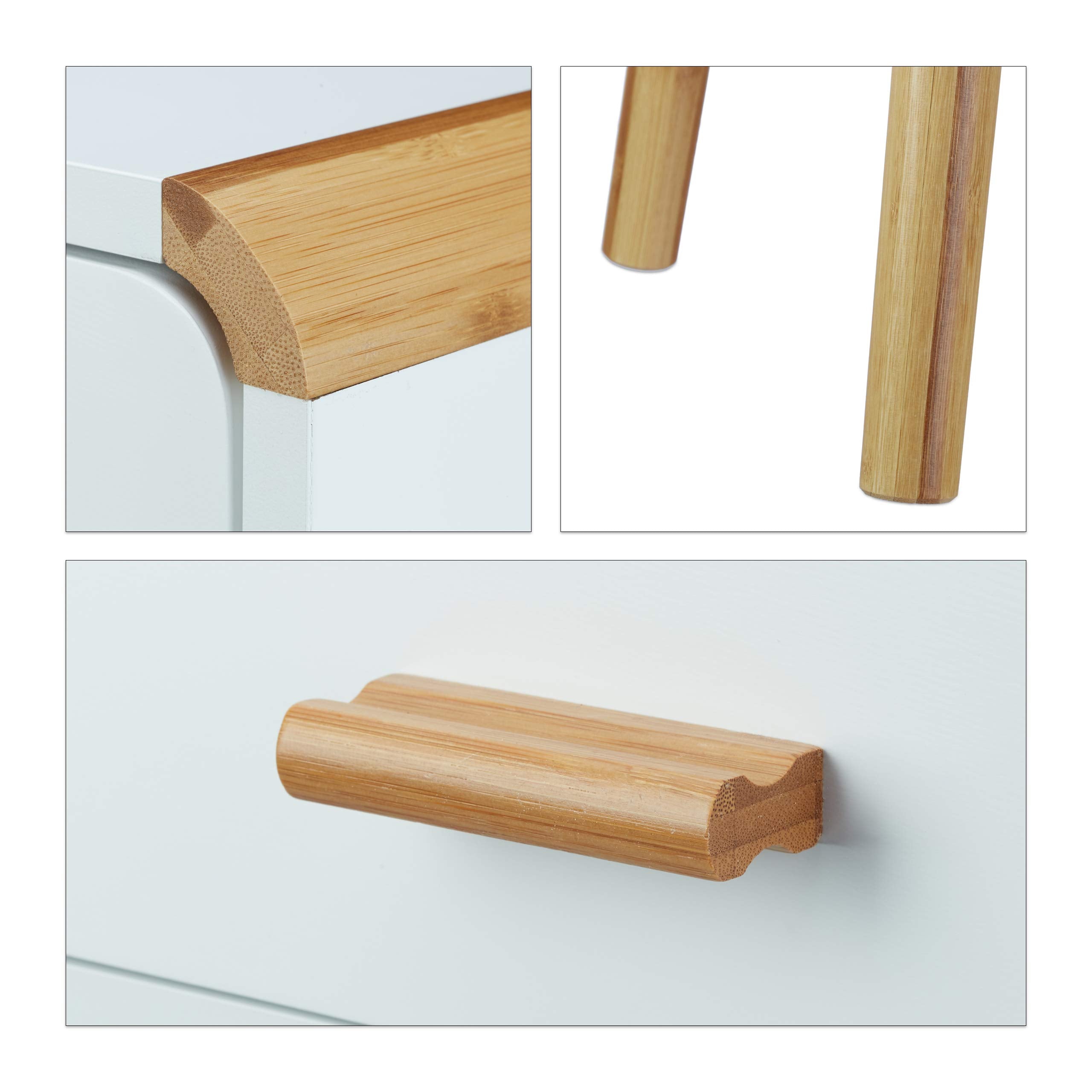 - Moderne: table avec corps en bois laqué blanc, coins et pieds en bambou - Petite table élégante avec coins arrondis - Idéal pour les intérieurs lumineux