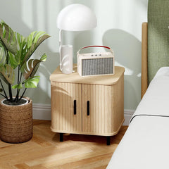 - DESIGN : Allie un design nordique épuré à des portes coulissantes style persienne, idéal comme table de chevet raffinée ou comme jolie petit meuble de rangement.