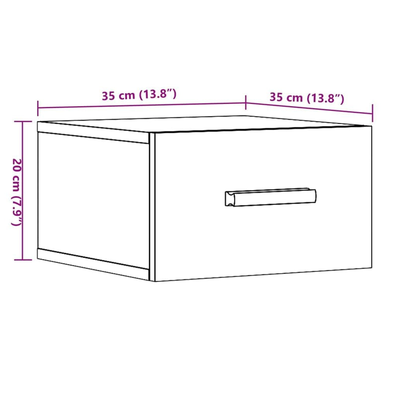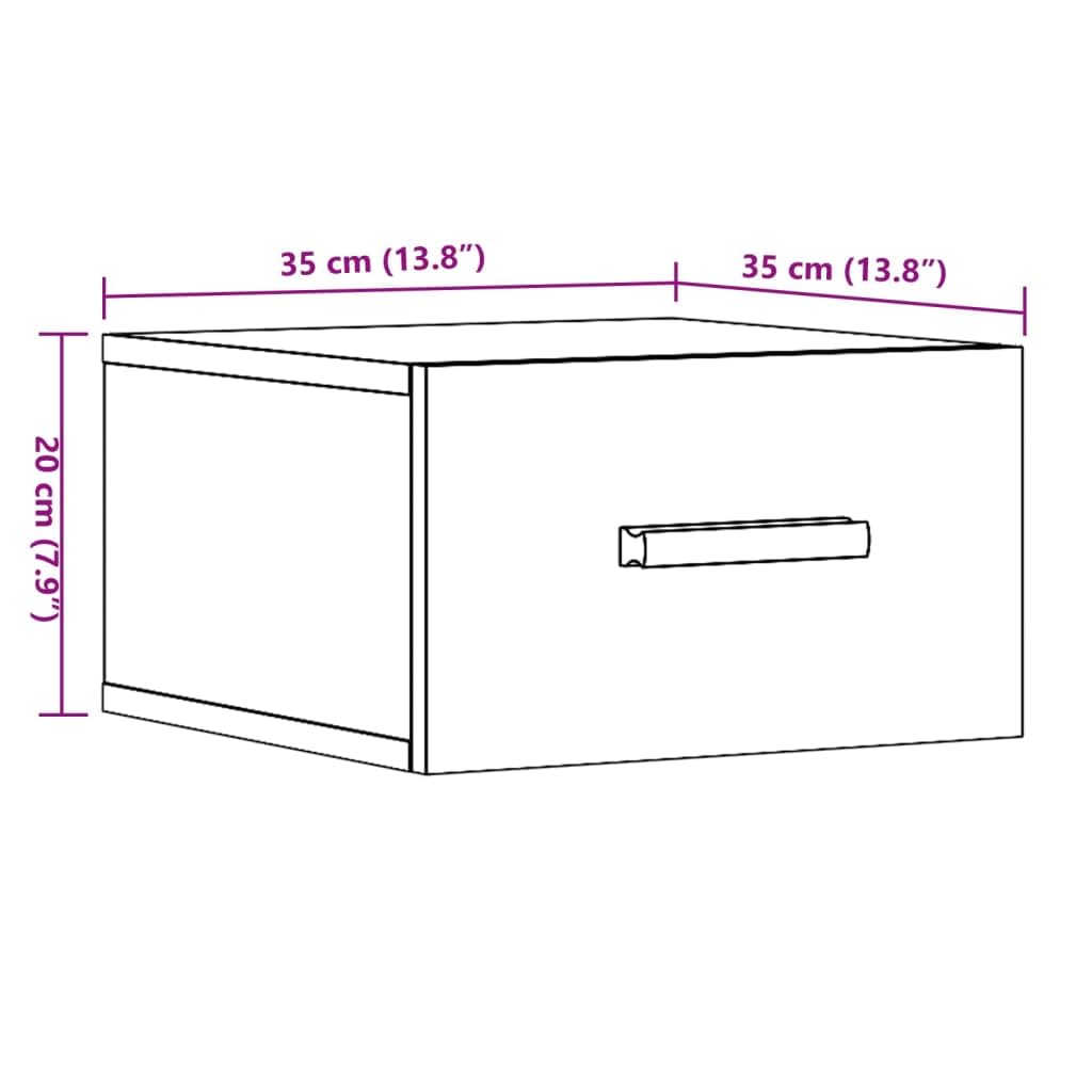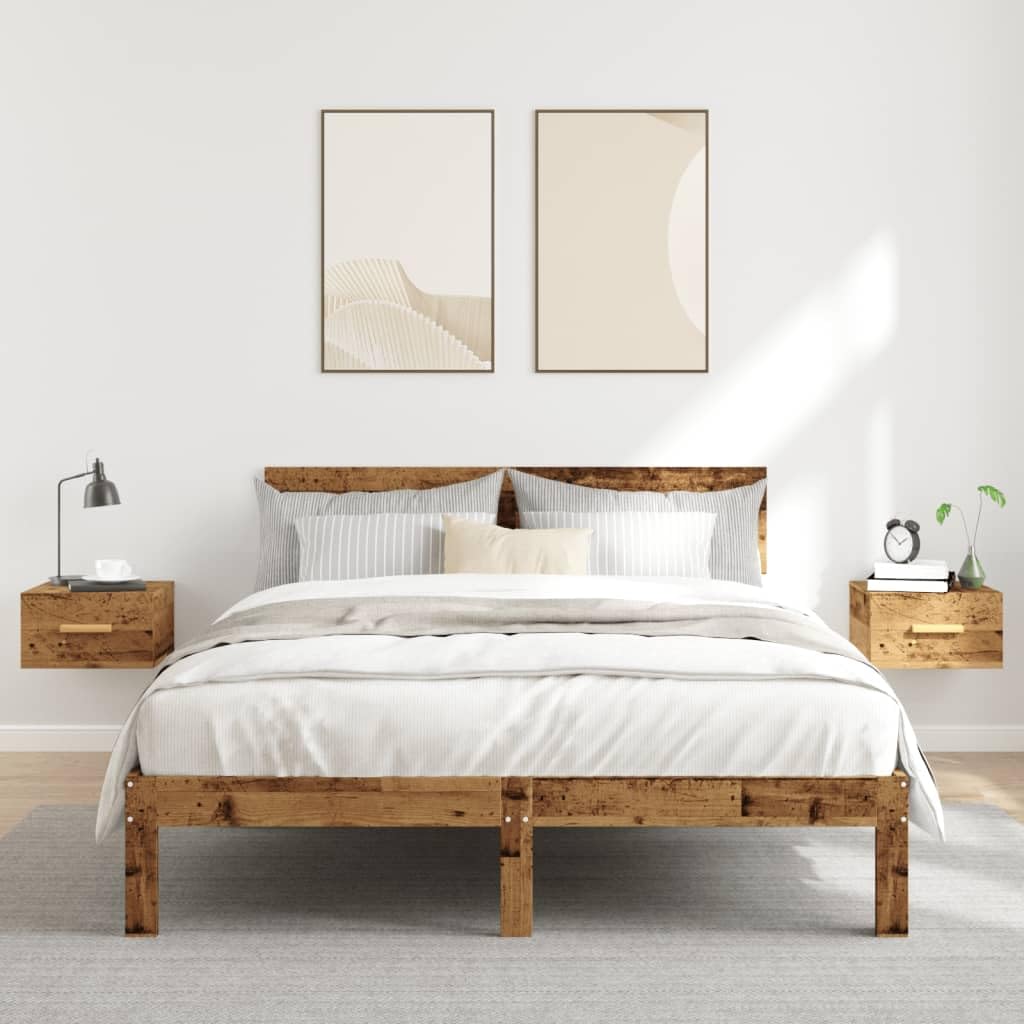 Table de chevet suspendu design 2 pcs chêne Artisanal