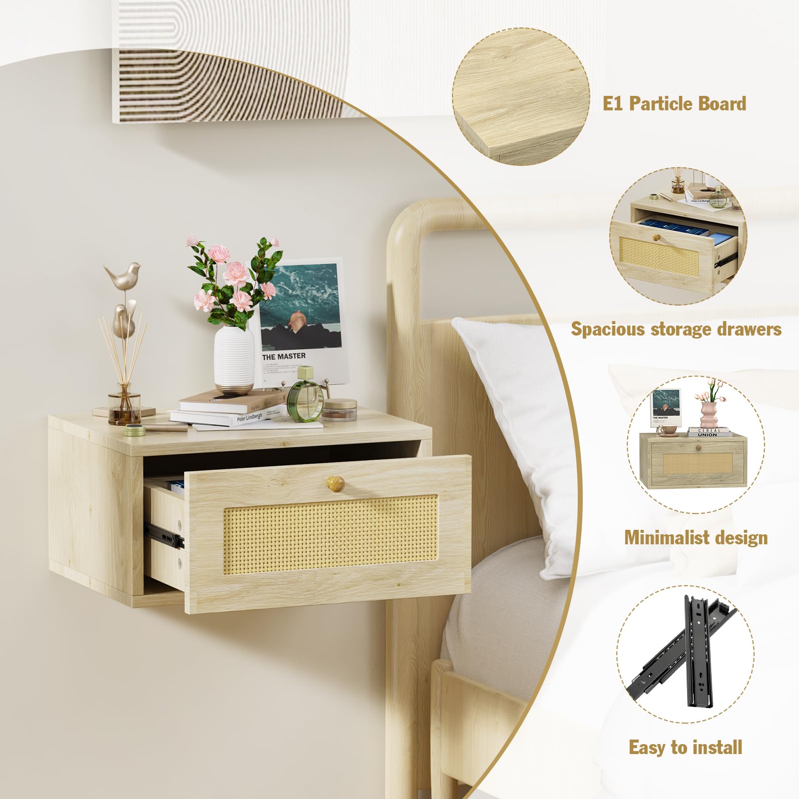 - ÉCONOMIE D'ESPACE : Les petites tables de nuit flottantes économisent de l'espace sous la table de nuit, vous pouvez tout mettre sous la table de nuit sans vous soucier de déplacer l'armoire et de rayer le sol, et elles n'accumulent pas la poussière et sont faciles à nettoyer.