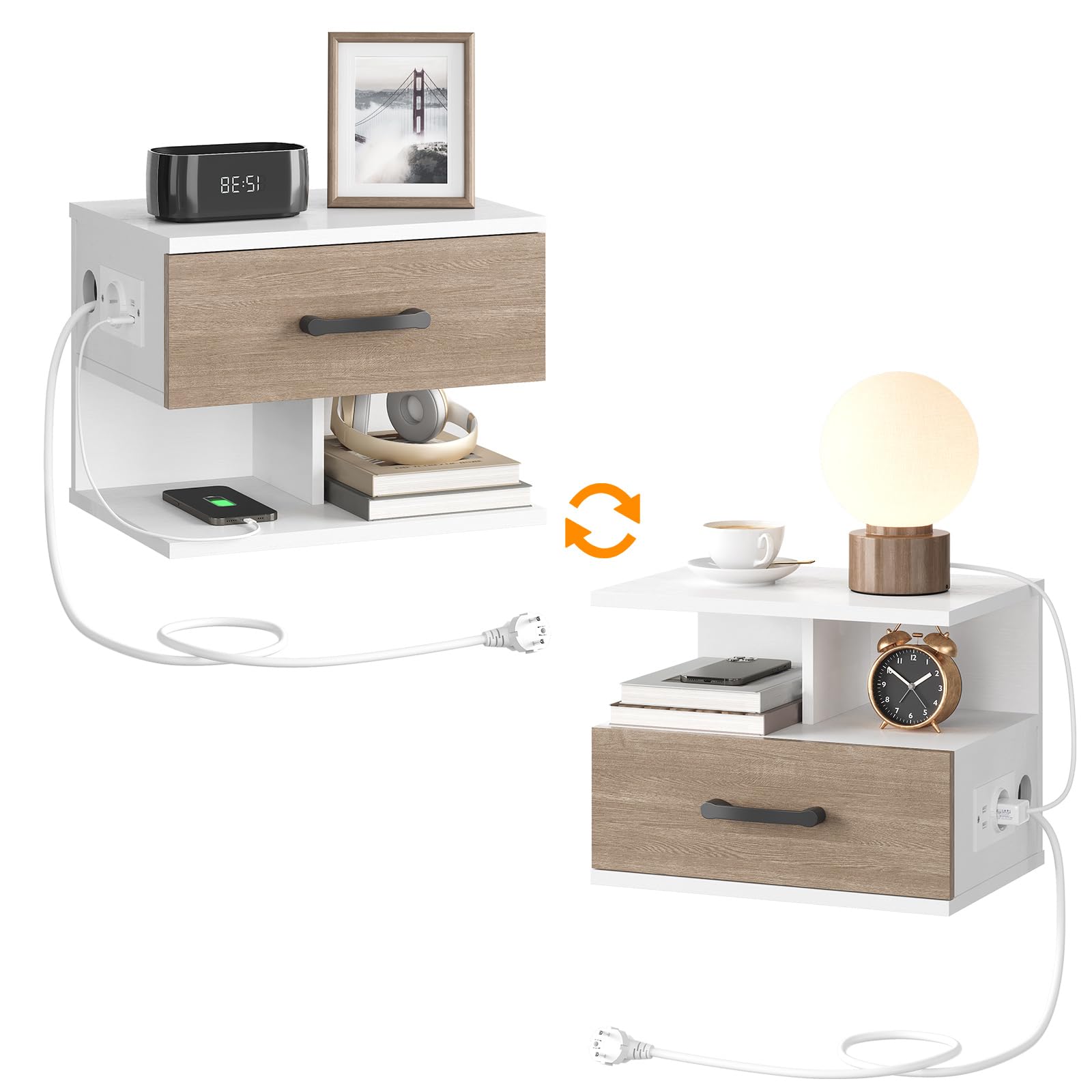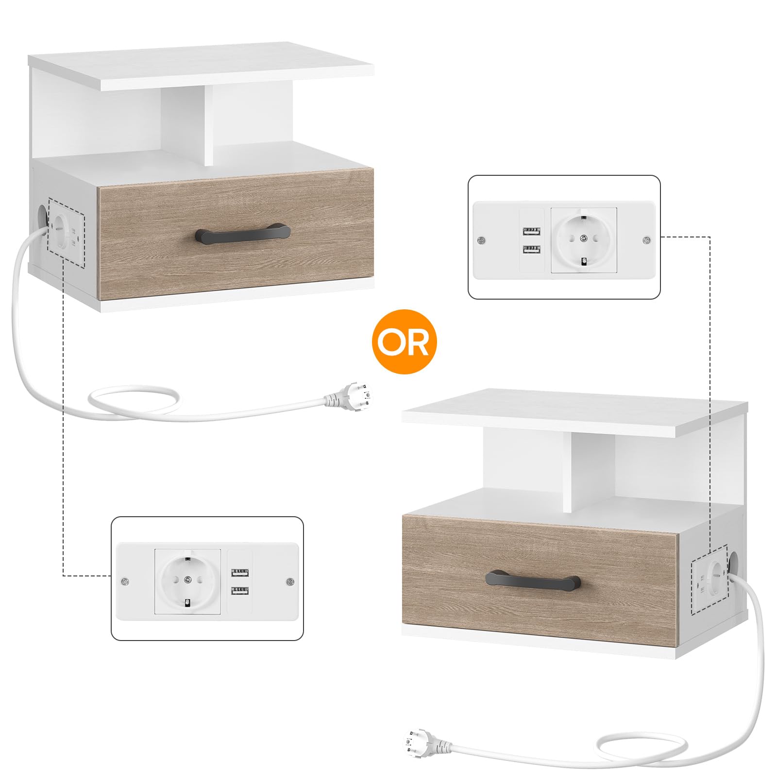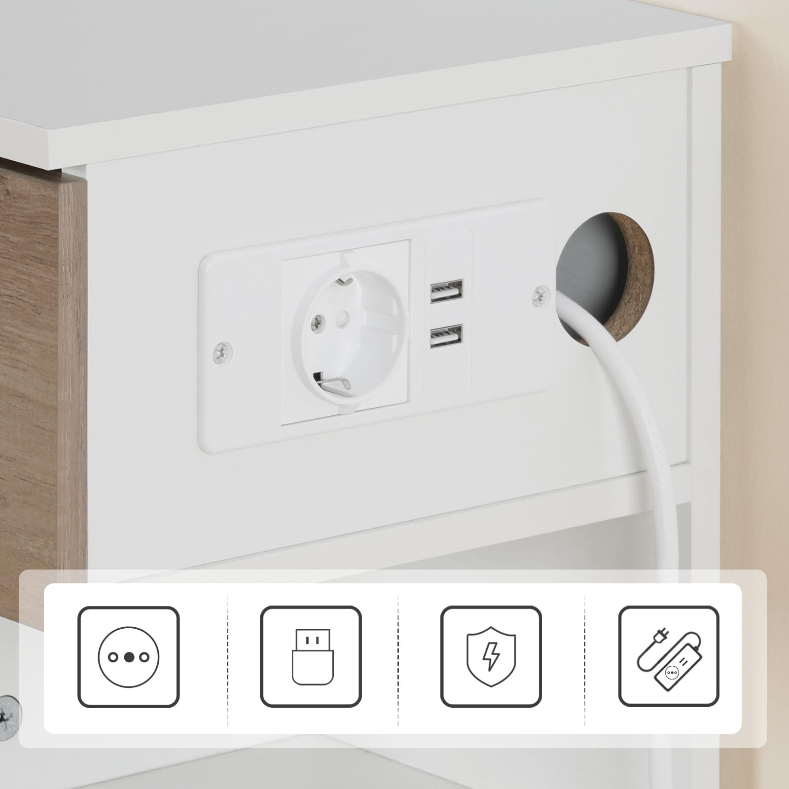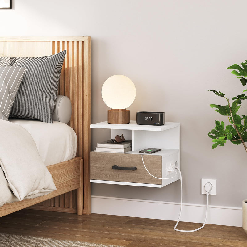 - Chargement pratique : Équipée d’une prise standard et de deux ports USB sur le côté, cette table de chevet fait votre chevet une source d’alimentation flexible pour vos appareils électroniques. Plus besoin de la chercher partout, tout est à portée de main