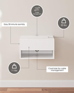 - Table de chevet fonctionnelle : la table de chevet moderne est parfaite comme coiffeuse, armoire dans l'entrée ou comme table de chevet dans la chambre à coucher. Elle dispose d'un trou pour la gestion des câbles afin que vous puissiez cacher tous vos appareils électroniques, mais passer facilement à travers l'étagère inférieure. Un tiroir avant fermé et un cube ouvert font de cette pièce un élément de rangement parfait pour votre salon ou de n'importe quel côté de votre lit.