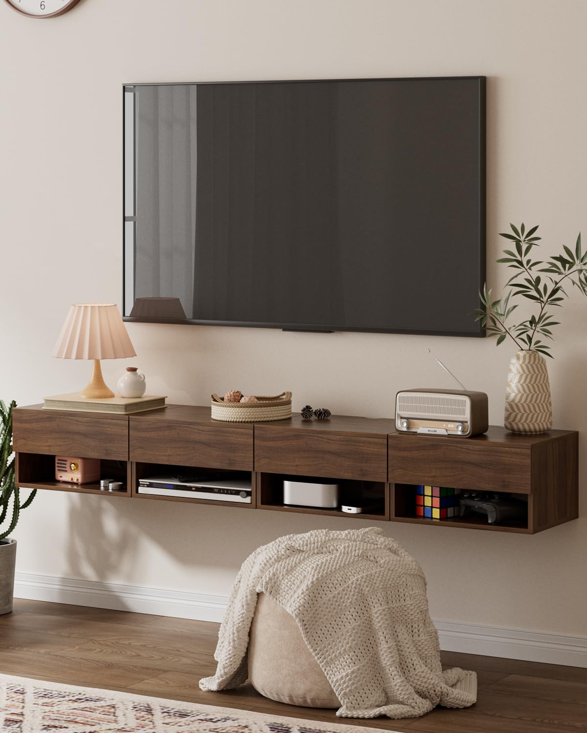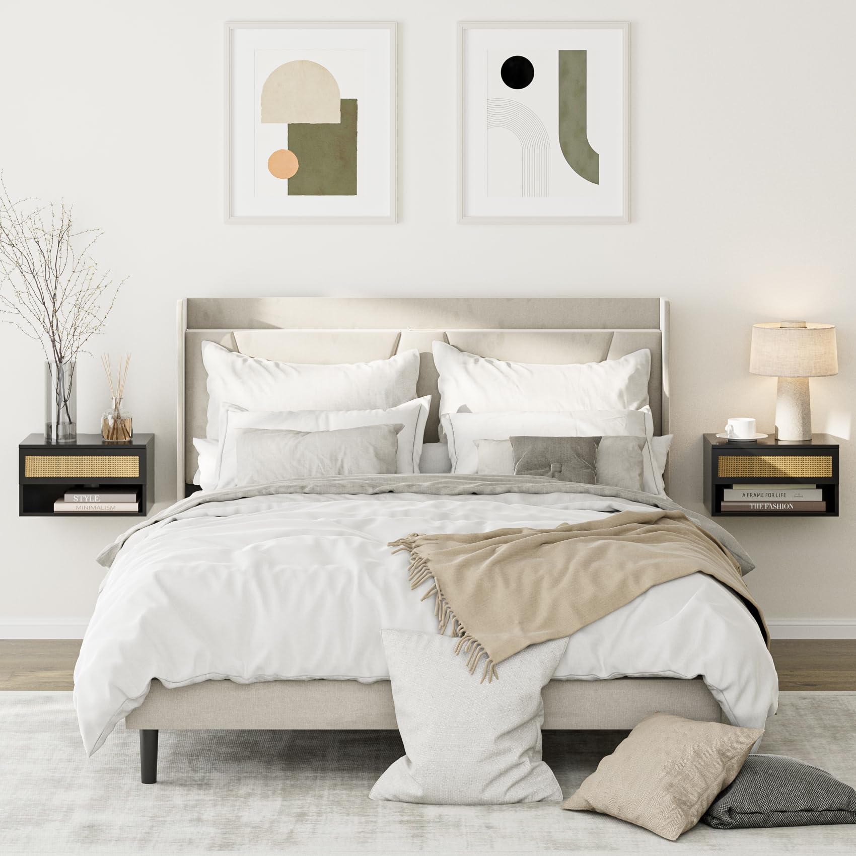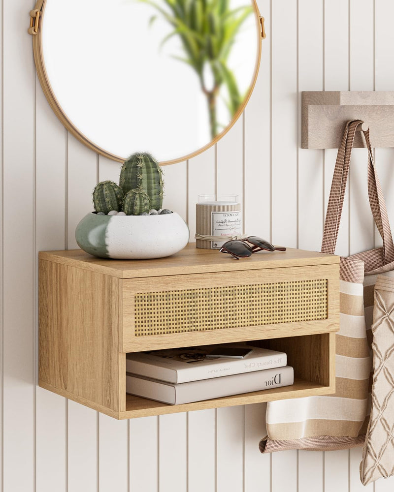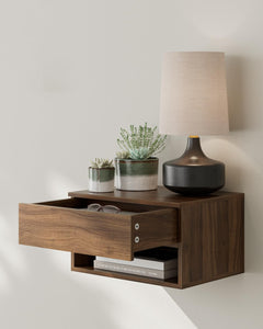 - Design moderne et pratique : la table de chevet flottante HEYZOEY est une pièce moderne peu encombrante avec un rangement fermé et ouvert. Préparez-vous à élever le confort de votre chambre à coucher à un nouveau niveau avec cette table de chevet murale. Les lignes claires et sobres de la table de chevet en bois de noyer marron avec ses tons neutres et naturels en font un élément parfait qui s'intègre bien dans n'importe quel meuble. La table de chevet en bois de noyer marron est le compagnon idéal pour votre chambre moderne.