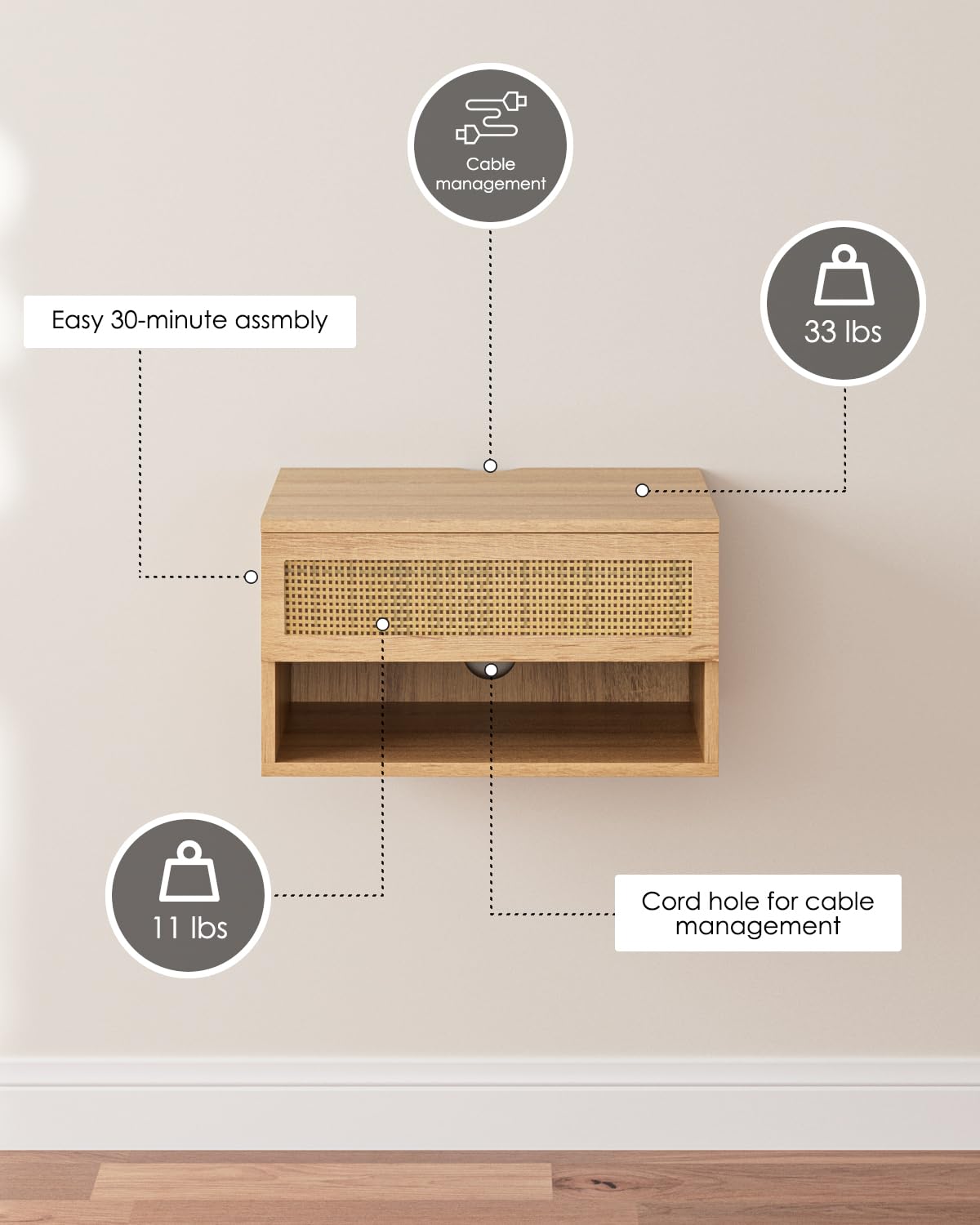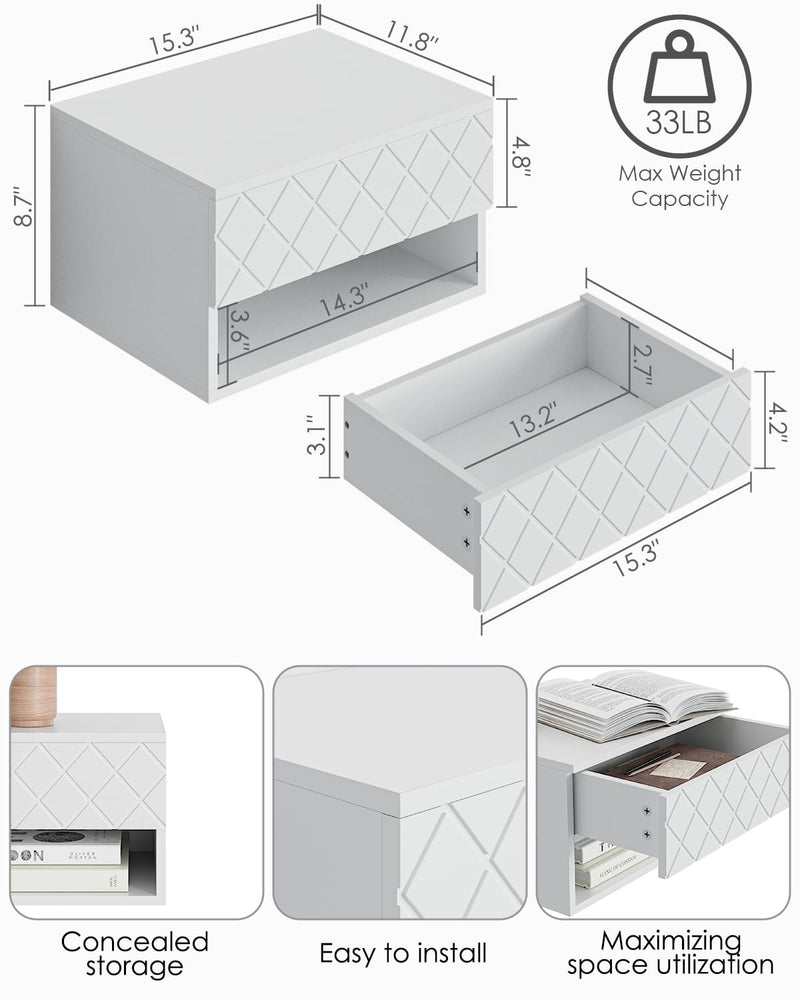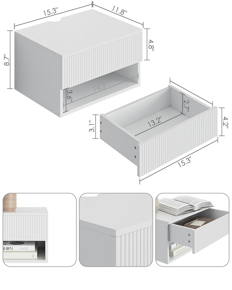 - Montage facile : la table de chevet flottante est livrée avec des instructions détaillées (français non garanti) et toutes les pièces nécessaires dans le paquet. Décorez la chambre de vos rêves avec cette magnifique étagère à tiroirs flottante. Vous pouvez facilement installer cette table de chevet flottante et la nettoyer et l'utiliser rapidement. Si vous avez des questions sur la table de chevet, n'hésitez pas à nous contacter. Nous vous répondrons rapidement dans les 24 heures.