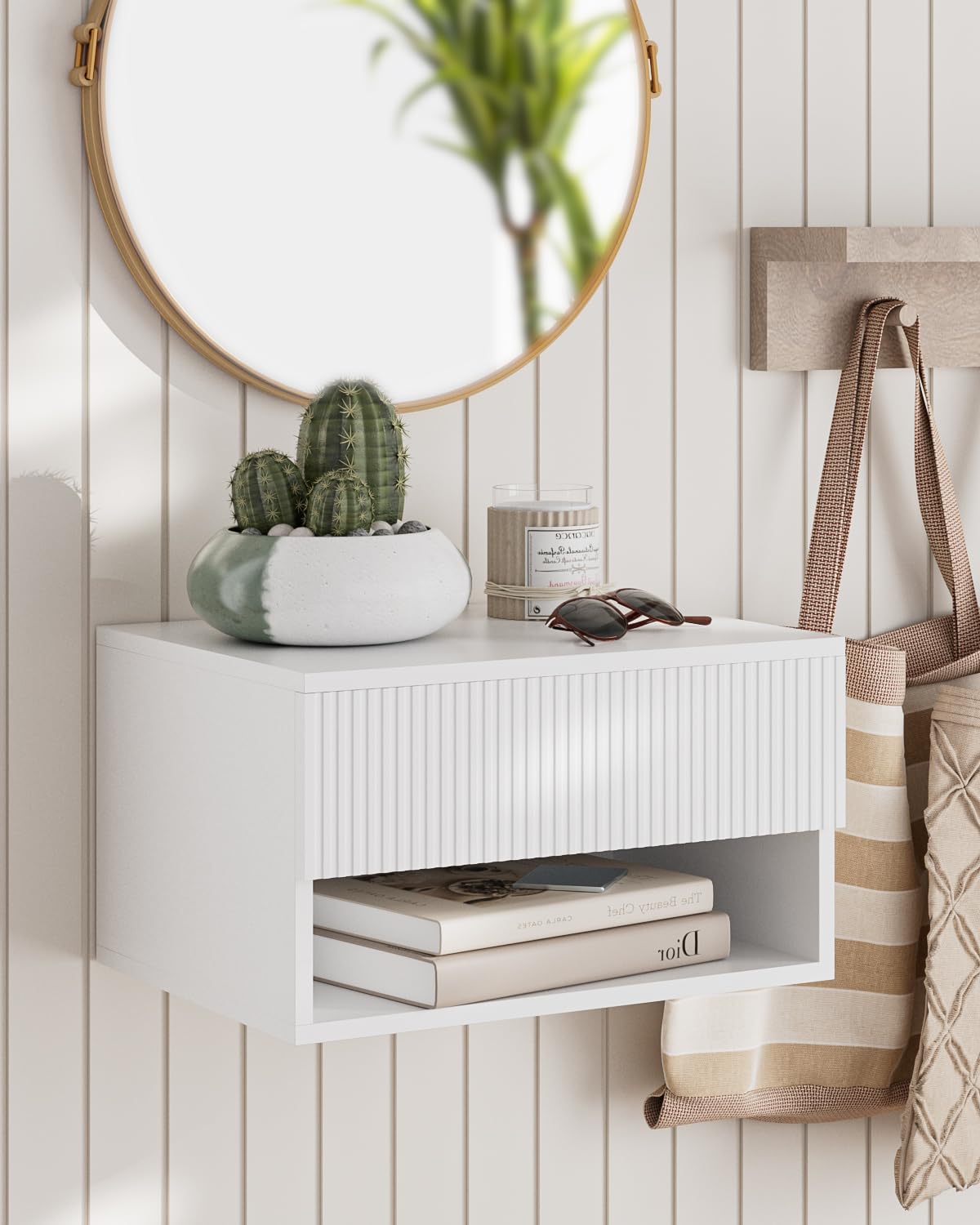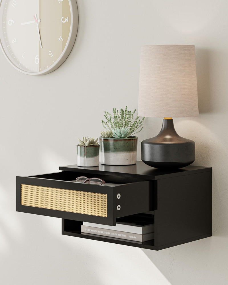 - Petite table de chevet : la conception suspendue vous donne la flexibilité de la placer à n'importe quelle hauteur et économiser de l'espace précieux sur le sol. Le design mural garantit que votre espace au sol reste libre et que votre chambre semble plus spacieuse et moins encombrée, crée une atmosphère chaleureuse et répond à toutes vos exigences fonctionnelles en matière de table d'appoint parfaite.