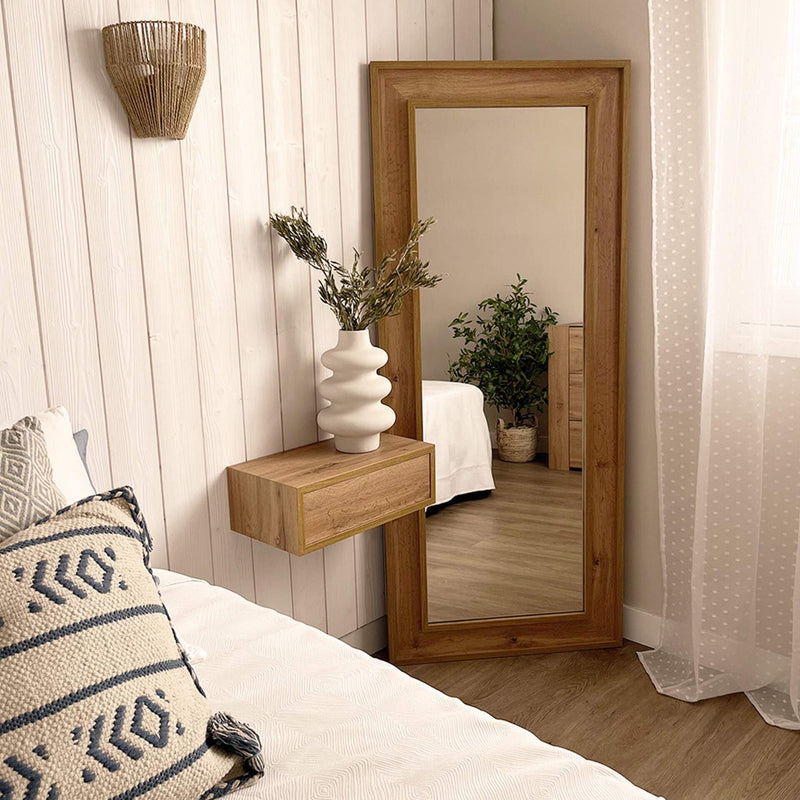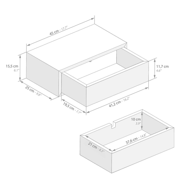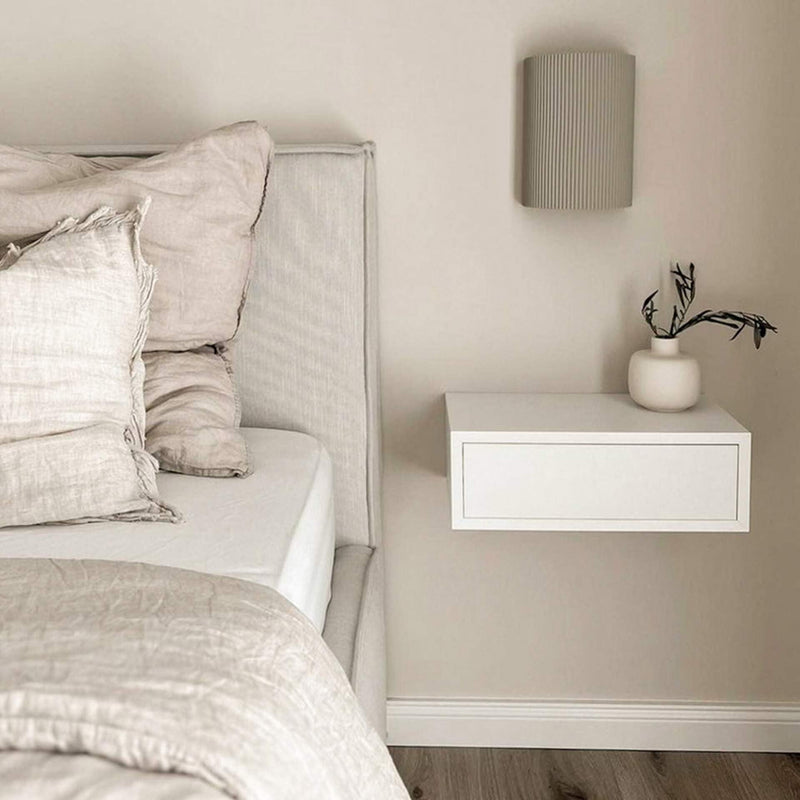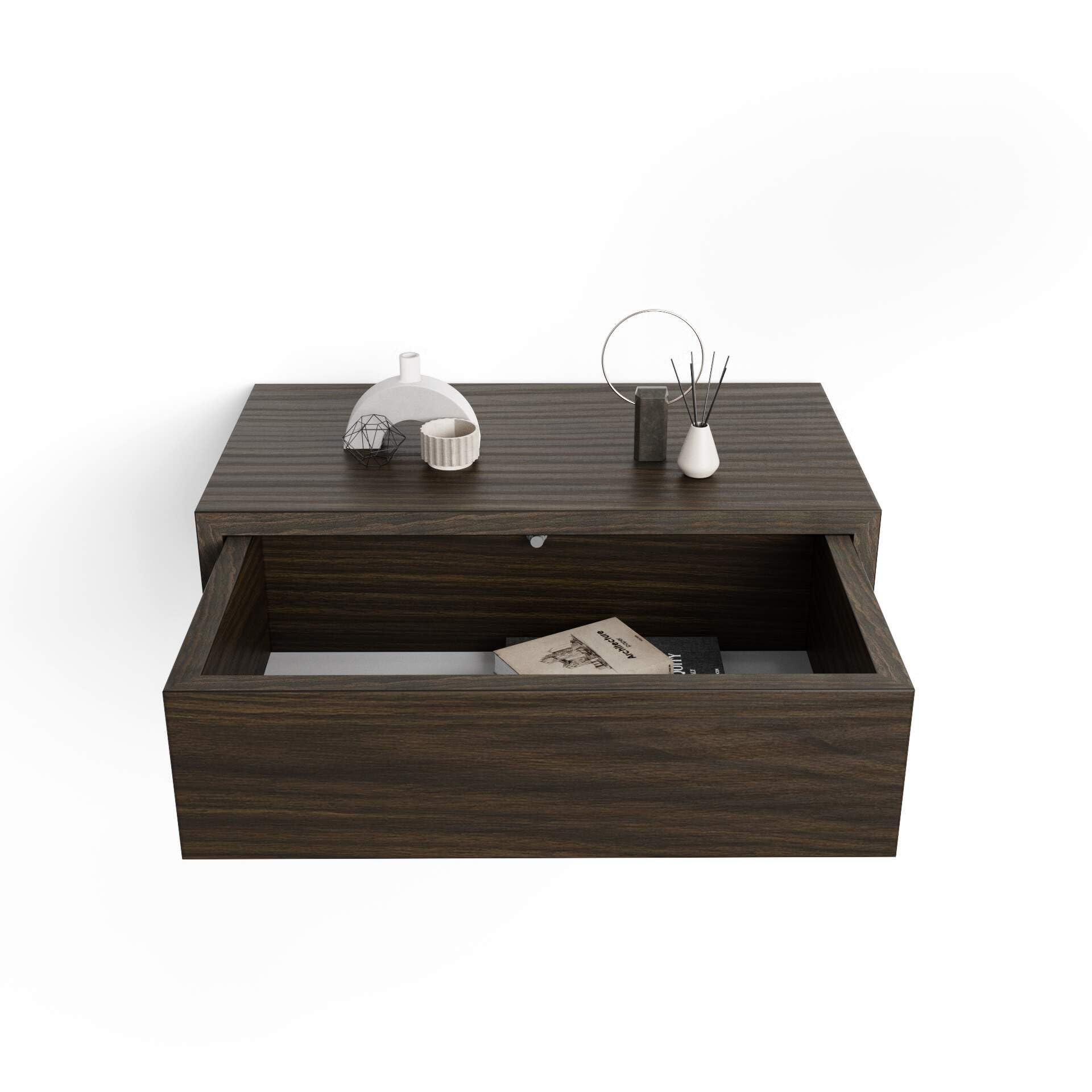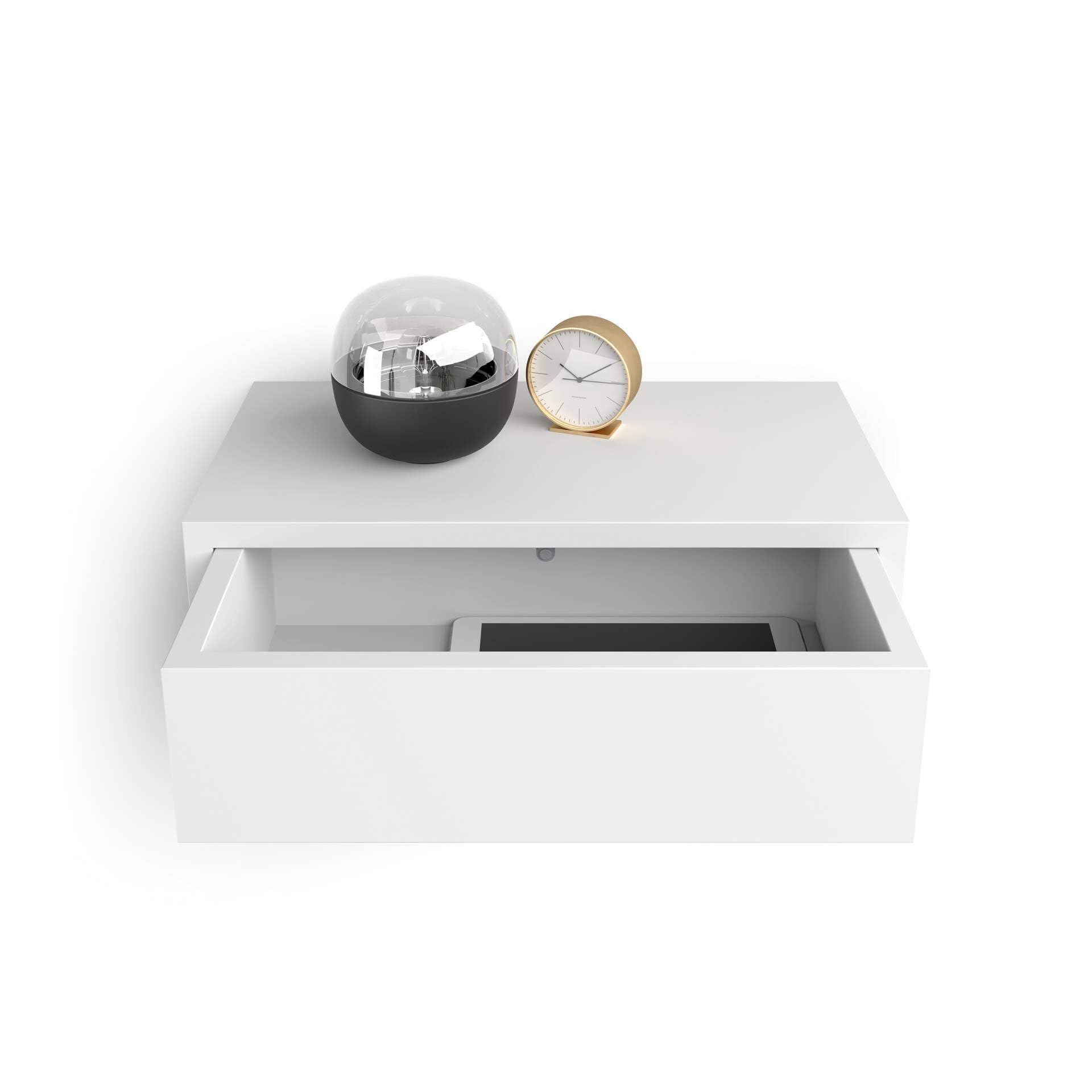 - DÉTAILS: La table de chevet suspendue Riccardo est fabriquée en panneau mélaminé de haute qualité, légèrement rugueux au toucher. La table de chevet est déjà montée et vous trouverez un gabarit adhésif pour vous aider à percer le mur. Les autres produits présents sur les images NE sont PAS inclus.