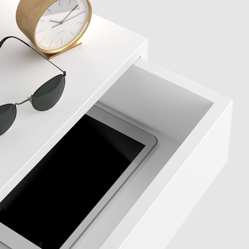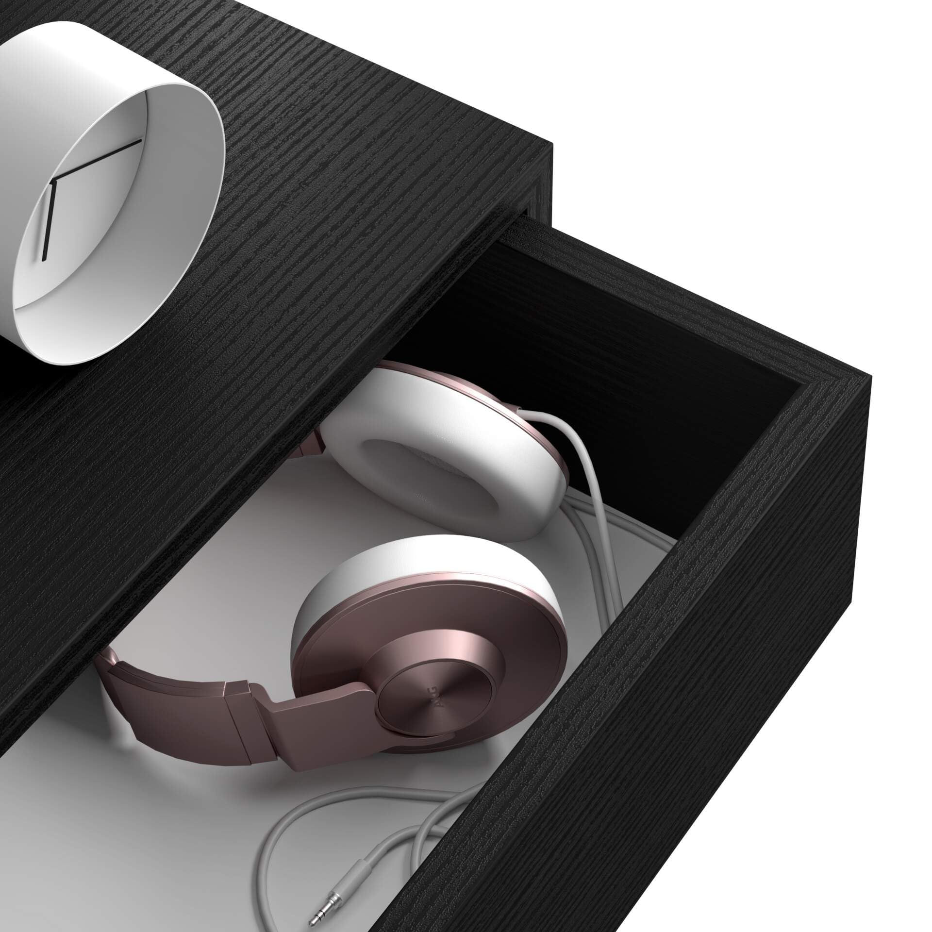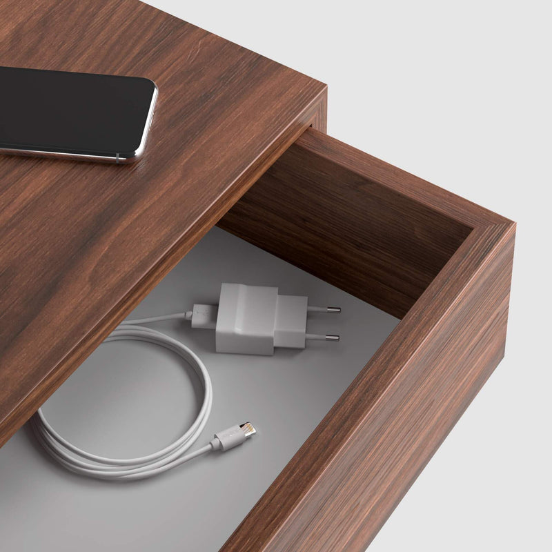 - OUVERTURE PAR PRESSION: L'ouverture pratique par poussée sans guide élimine la nécessité d'une poignée et fait de la table de chevet suspendue Riccardo une véritable pièce de design.
