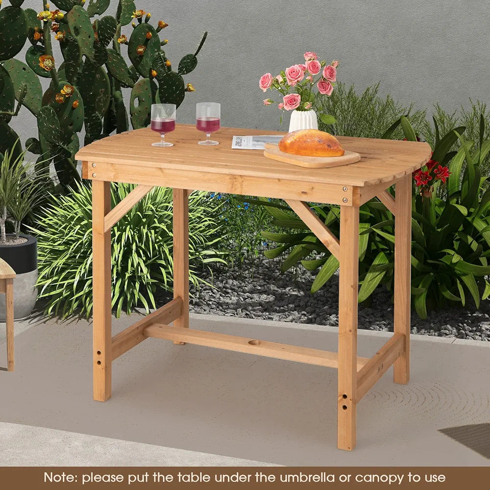 Table de Jardin en Bois avec Trou pour Parasol