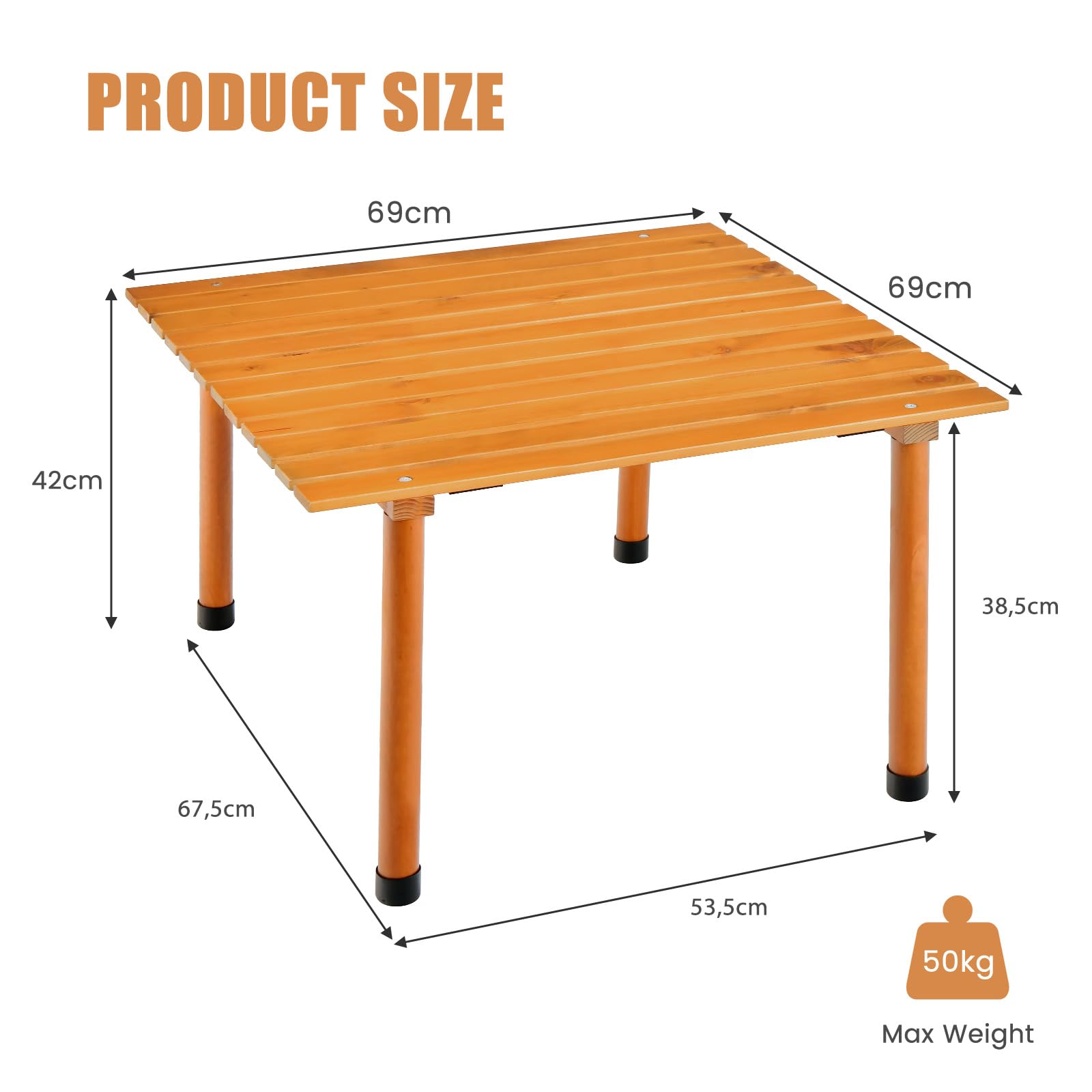 - ☀️ CONSTRUCTION STABLE : Notre table basse d'extérieur est soutenue par des pieds en bois massif qui peuvent supporter jusqu'à 50 kg. En outre, chaque pied a des couvre-pieds antidérapants.