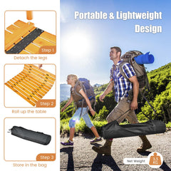 - ☀️ PLATEAU ENROULABLE : Le plateau de cette table de camping peut être retiré et enroulé pour économiser de l'espace. Le plateau de table de 69 x 69 cm offre beaucoup d'espace pour profiter du camping.