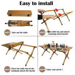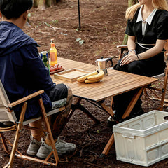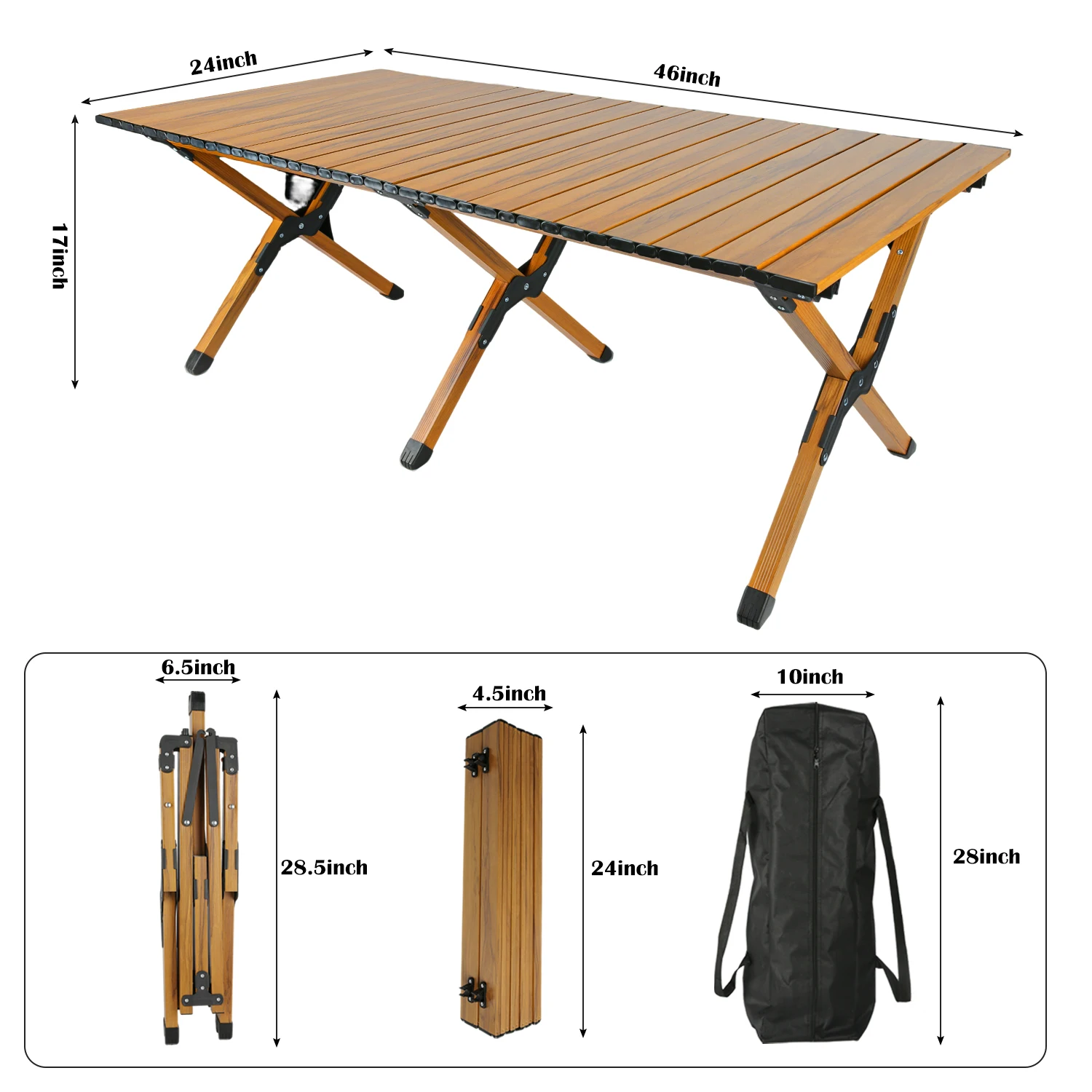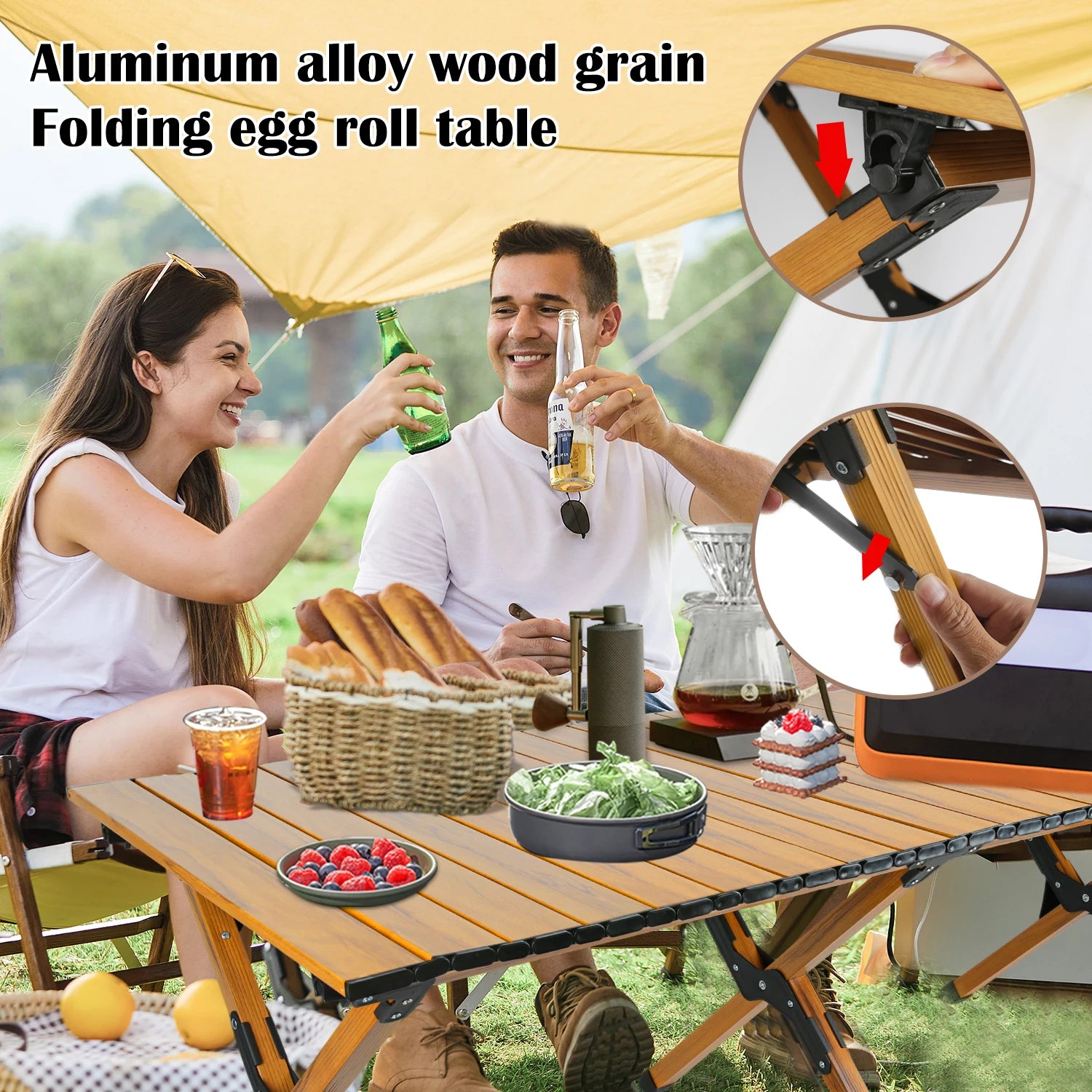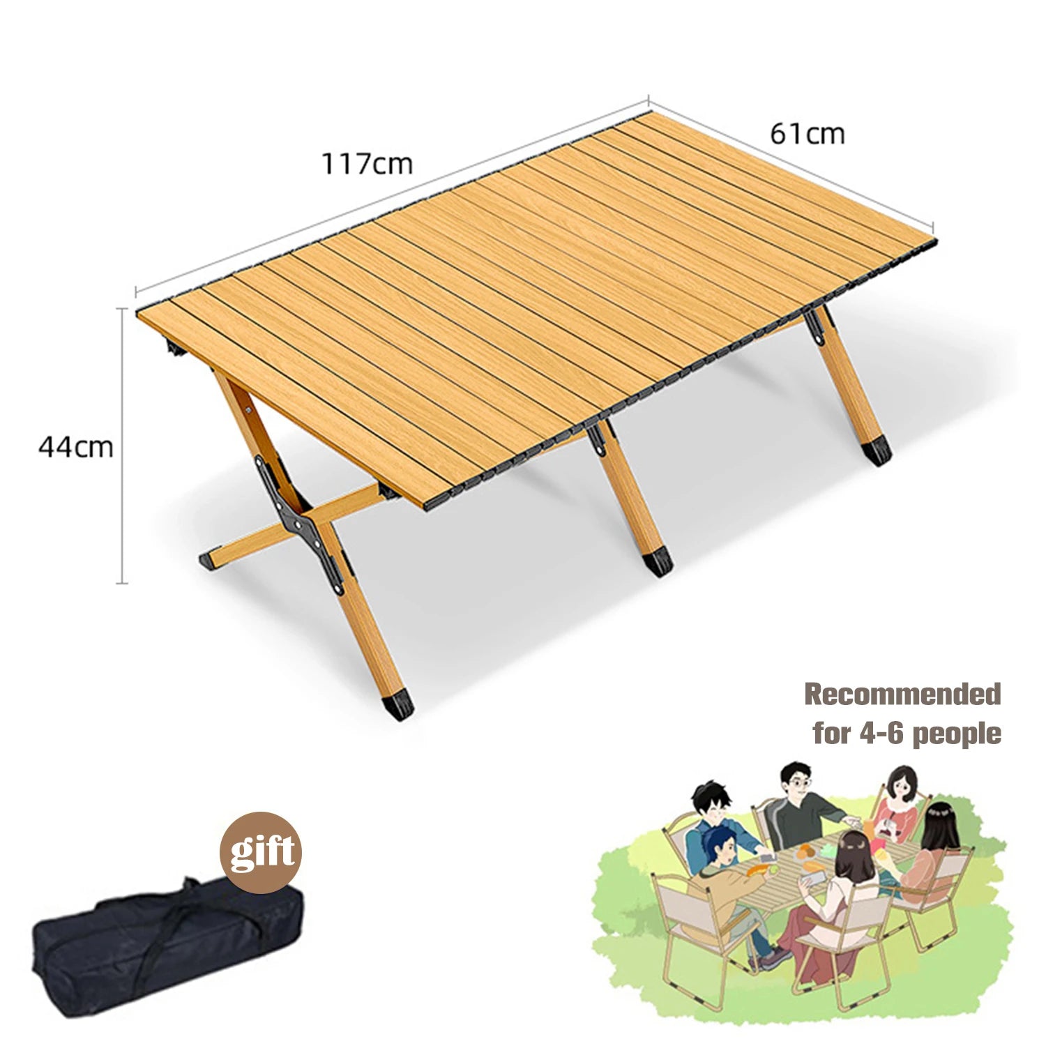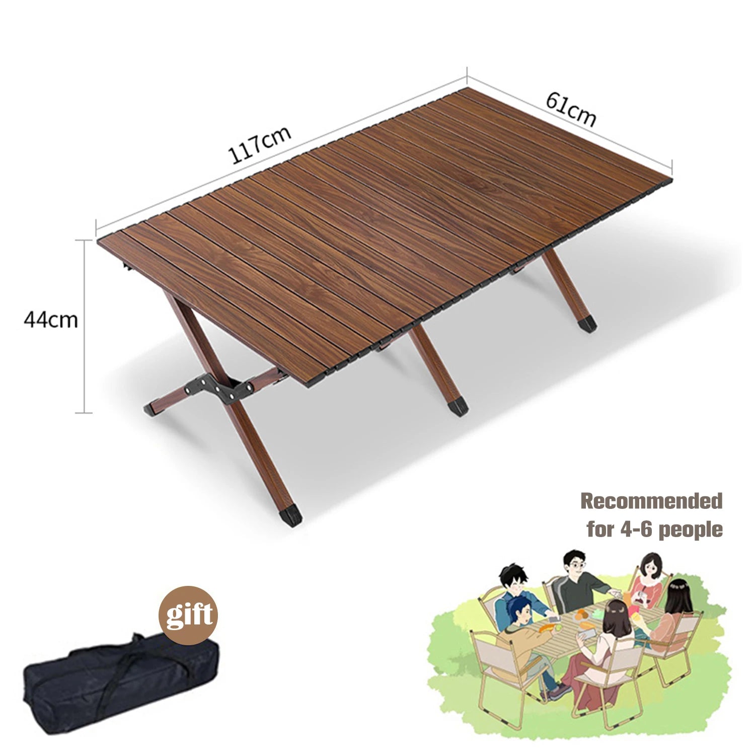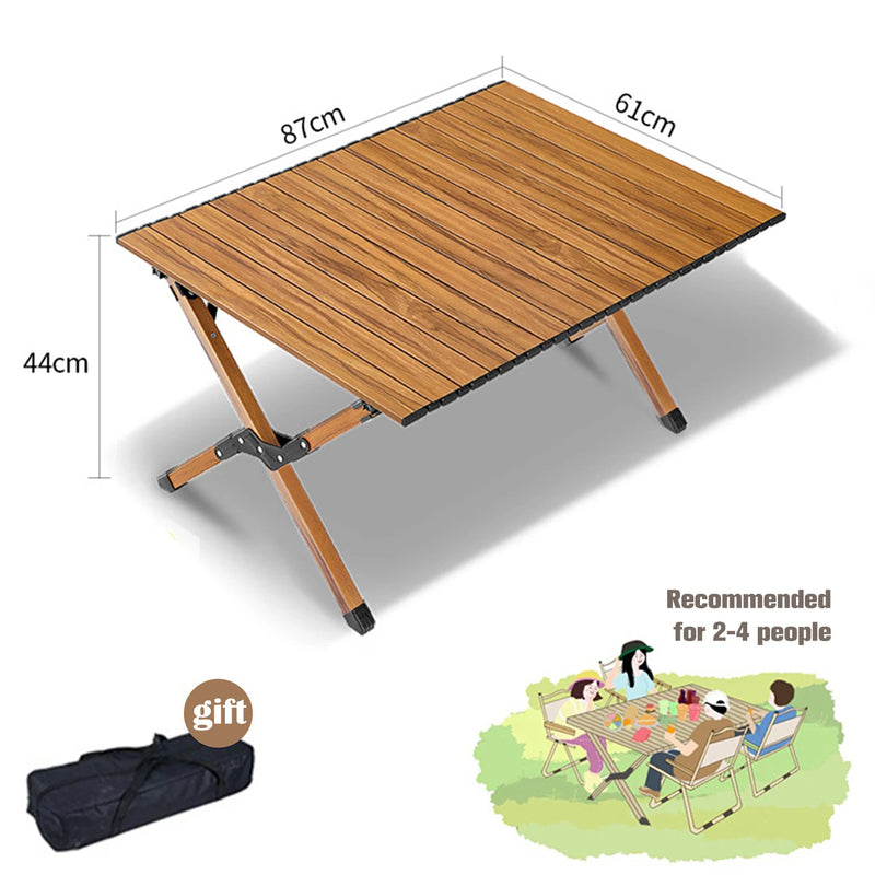 Aesthetics and practicality: The simple and stylish appearance design, with a wood-grain desktop, is not only practical but also enhances the overall aesthetics. Whether it is outdoor camping or indoor leisure, it can add a natural atmosphere to your space.