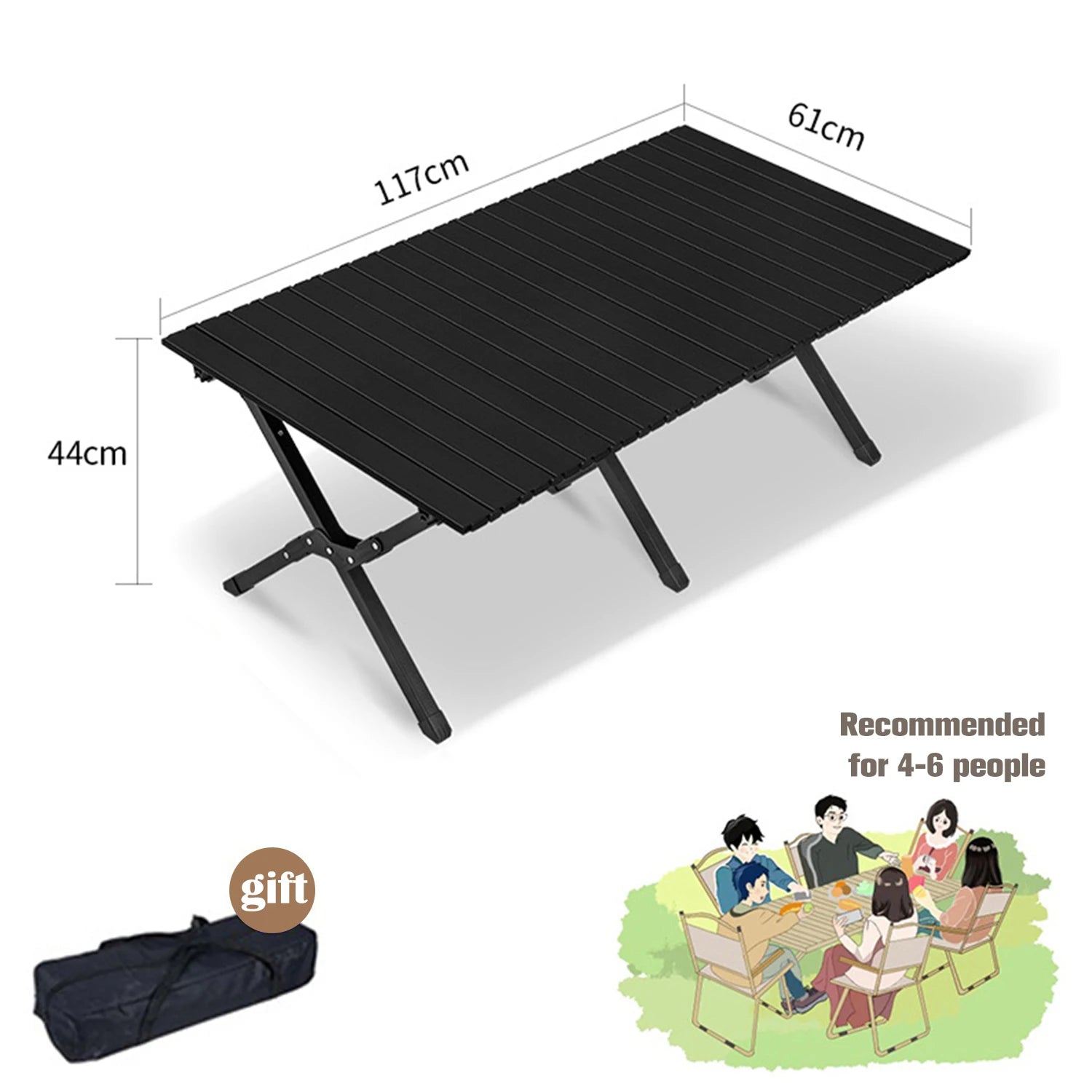 Ultra-light and portable design: This folding table is made of high-strength aluminum alloy and is available in two sizes: 87*44*61CM, load-bearing capacity 150KG, recommended for 2-4 people Size: 117*44*61CM, load-bearing capacity 150KG, recommended for 4-6 people. Lightweight and easy to carry, it is very suitable for outdoor camping, picnics or family gatherings. Easily foldable to save space