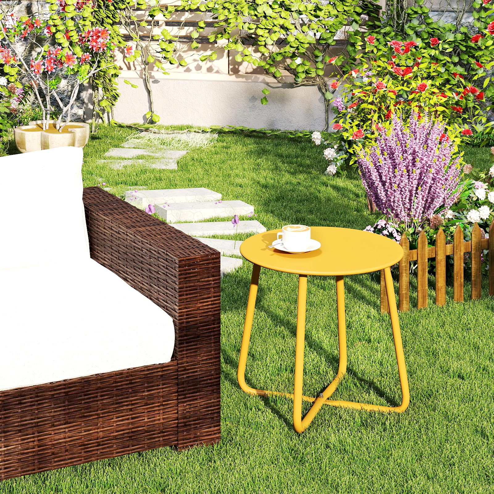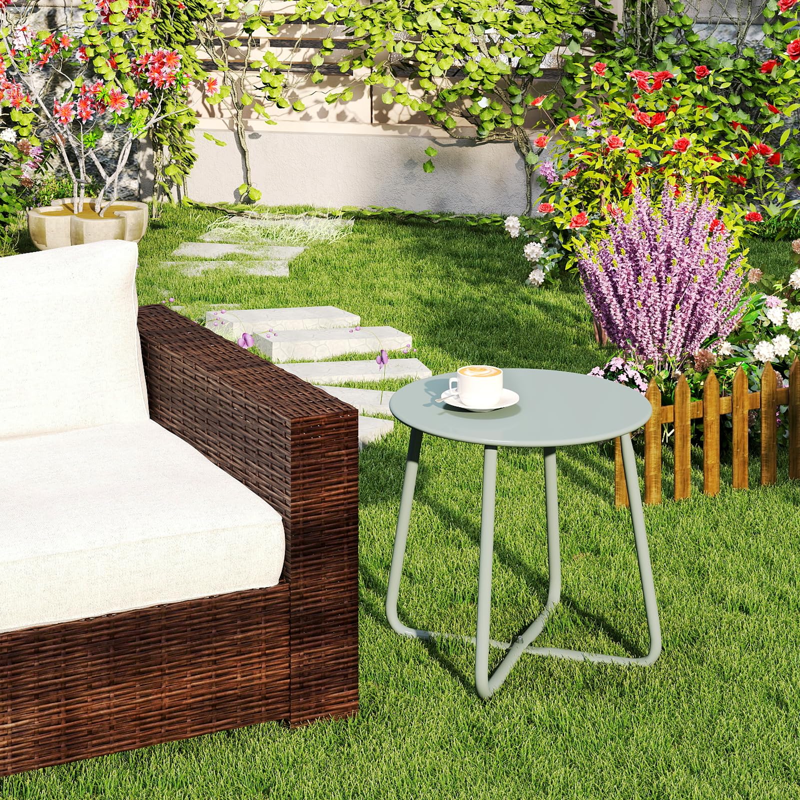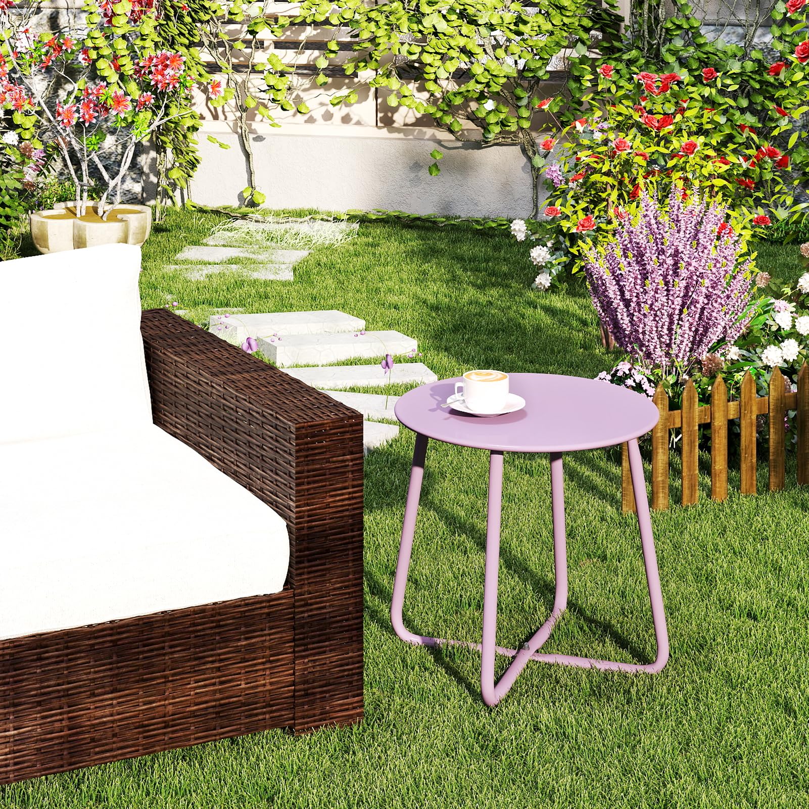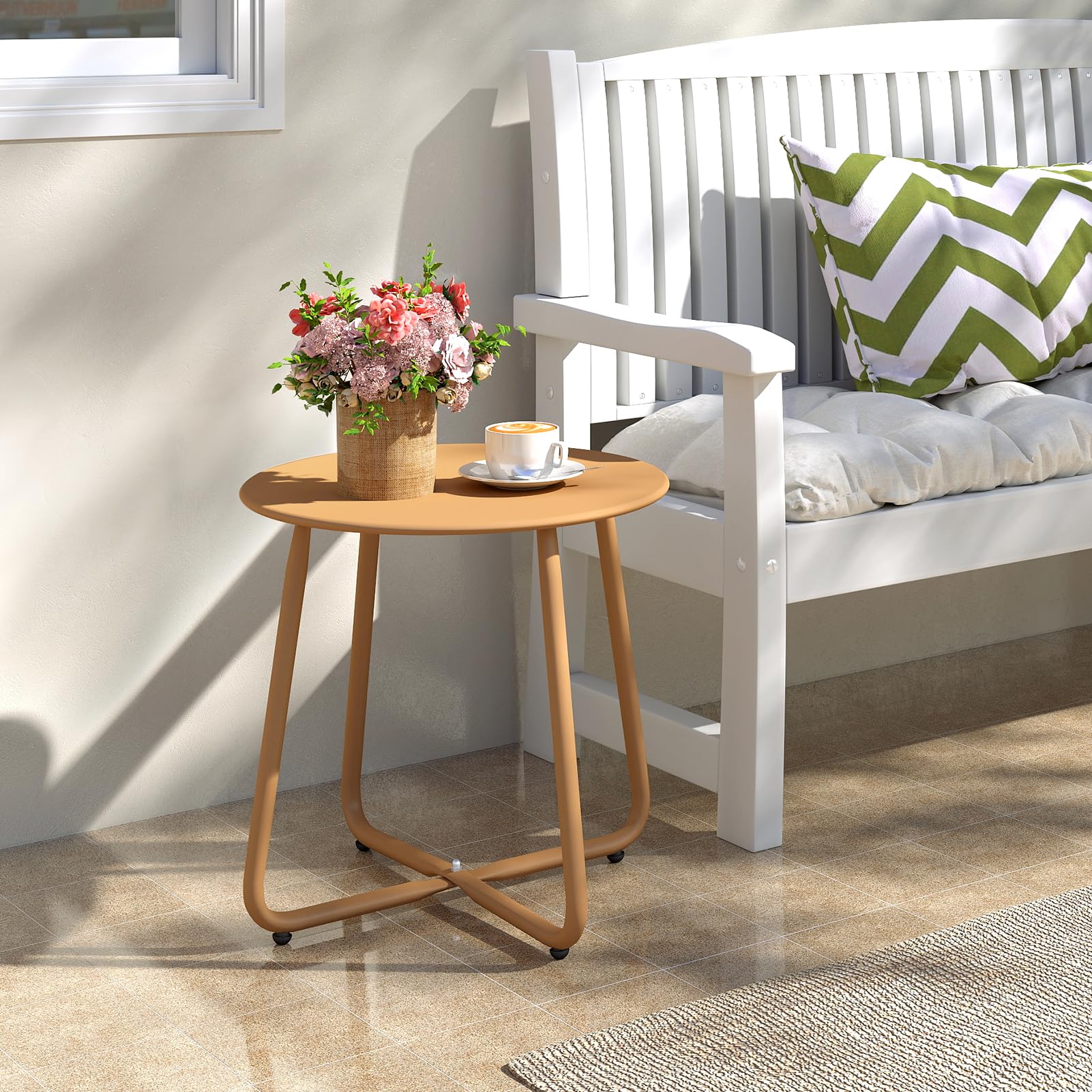 - Portable et robuste: notre table d'appoint de patio est légère et de conception simple. Facile à ranger et à réaliser. La construction en acier intégral robuste en forme de X rend cette table d'appoint de patio durable et robuste