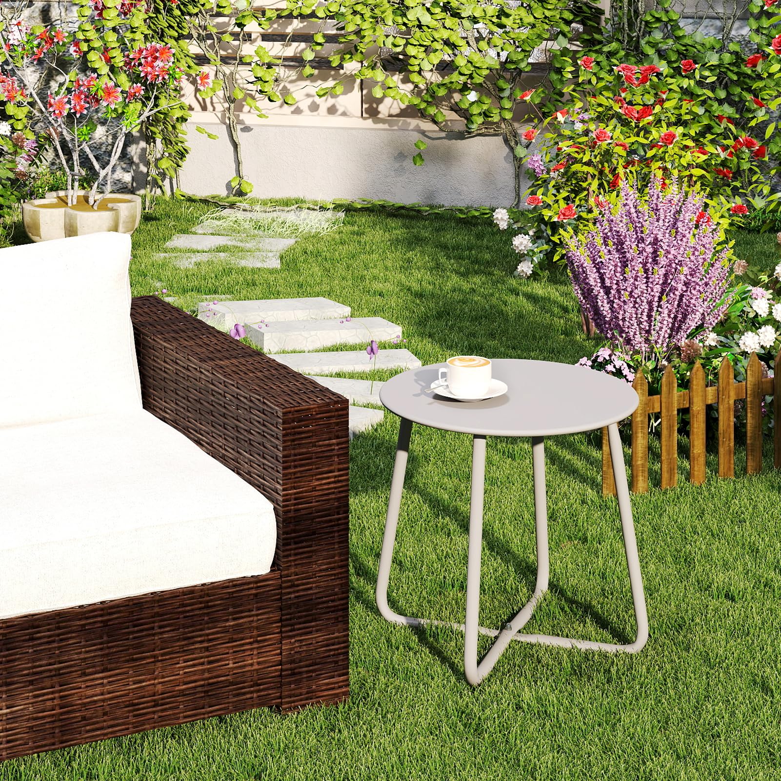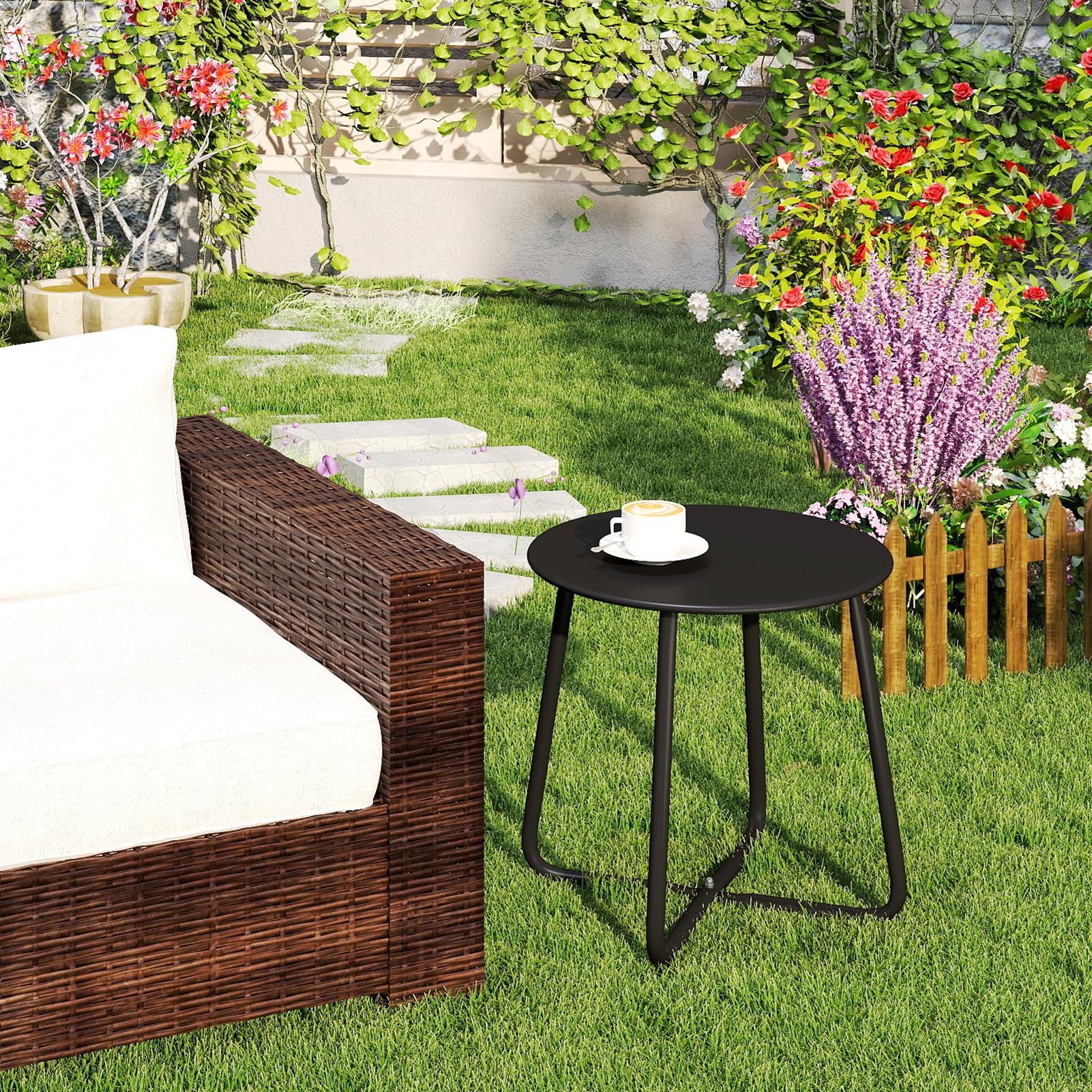 - Résistant aux intempéries et antirouille: la table d'appoint de jardin a un cadre en acier enduit de poudre, résistant aux intempéries, protégé contre les UV pour une utilisation quotidienne en extérieur sur votre terrasse, et peut supporter jusqu'à 23 kg. Dimensions de la table: (H) 17,72" x (P) 17,13" / (H) 45 cm x (P) 43,5 cm