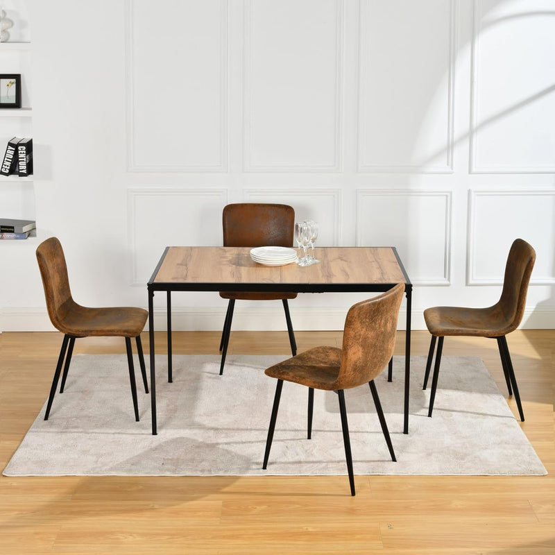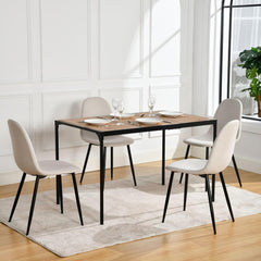 Améliorez votre espace salle à manger avec notre table à manger rectangulaire effet bois dotée de pieds en métal noir d'inspiration industrielle. Cette superbe pièce allie sans effort le charme rustique à l’élégance moderne, ce qui en fait la pièce maîtresse parfaite pour toute salle à manger. Fabriqué à partir de matériel de haute qualité, le plateau de table présente un grain riche et naturel qui ajoute de la chaleur et du caractère à votre espace. La surface lisse offre suffisamment d'espace pour manger et se divertir, pouvant accueillir confortablement 4 à 6 personnes.