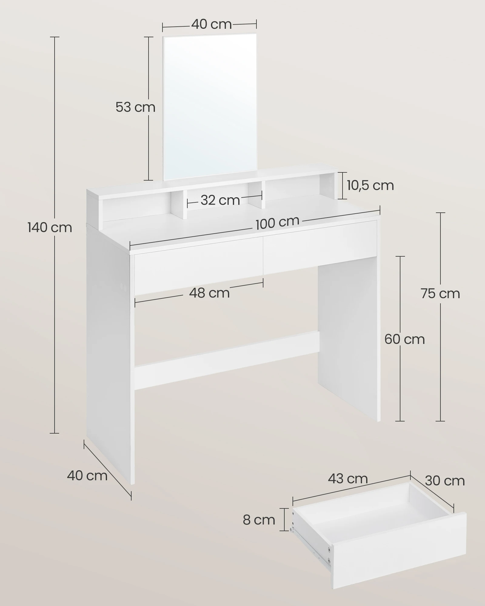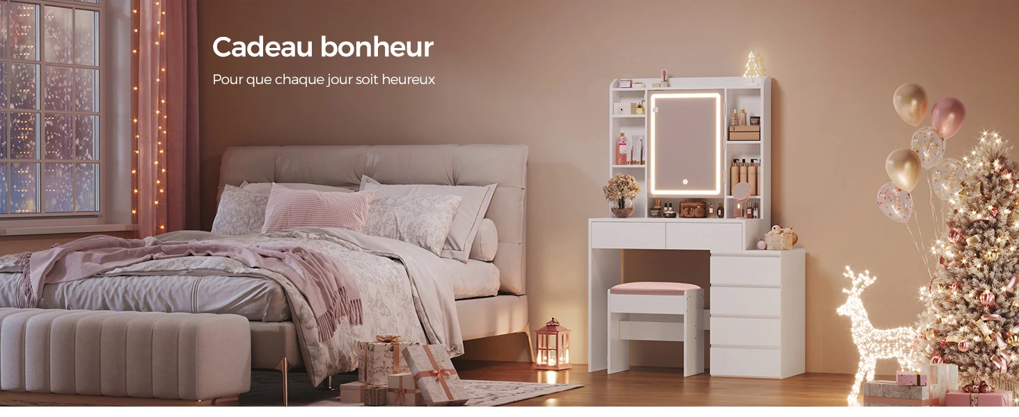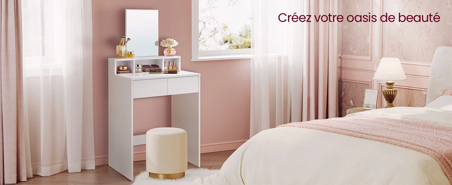 [Résistante et facile à nettoyer] Fabriquée en panneaux d’aggloméré de qualité,cette coiffeuse moderne est robuste. Sa surface est résistante à l’usure et facile à nettoyer,elle vous accompagnera pendant de nombreuses années