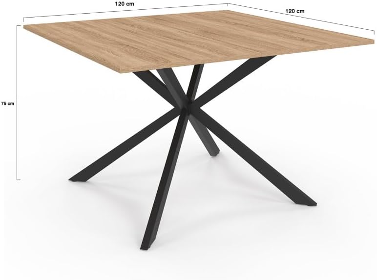 Transformez votre salle à manger en un endroit tendance et chaleureux avec cette table à manger carrée ALIX ! Conçue pour accueillir jusqu'à 8 personnes, cette table est idéale pour les repas de famille, les soirées entre amis ou les réunions de travail. Avec son design tendance, elle allie à la perfection fonctionnalité et esthétique industrielle. Cette table à manger bois et métal trouvera facilement sa place dans votre intérieur et s'harmonisera avec votre décoration. De plus, le pied araignée en métal noir confère à cette table une touche contemporaine tout en assurant une stabilité maximale. Idéale pour les grands repas ou les réunions conviviales, vous pourrez accueillir jusqu'à 8 personnes. Facile d'entretien, la table à manger carrée ALIX 120 cm sera parfaite pour les dîners quotidiens ou les grandes occasions, dans une salle à manger ou même dans un espace de travail. Commandez dès maintenant et transformez votre espace de vie sans attendre avec notre table à manger carrée ALIX 120 cm design industriel, une pièce maitresse qui allie design contemporain et fonctionnalité ! Dimensions de la table à manger carrée ALIX 120 cmDimensions totales : Longueur 120 cm x largeur 120 cm x Hauteur 75 cmMatériaux : panneaux de bois mélaminé et pied en métal noirCapacité : 8 personnesColoris : bois et noirÀ monter soi-mêmeTrouver le lot de chaises parfait à associer avec la table à manger parmi notre large choix de chaises ! Retrouvez l'ensemble de notre collection industrielle sur notre boutique en ligne !