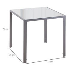 Put food and drink on the table and enjoy good times with friends or family. This square table with HOMCOM glass countertop is perfect for any home. Thanks to its minimalist and modern design you can use it as a kitchen table or for the living room. The 6mm tempered glass countertop is sturdy, easy to clean and gives it a touch of elegance. With capacity for 4 people, this table of compact dimensions is ideal for small spaces.
