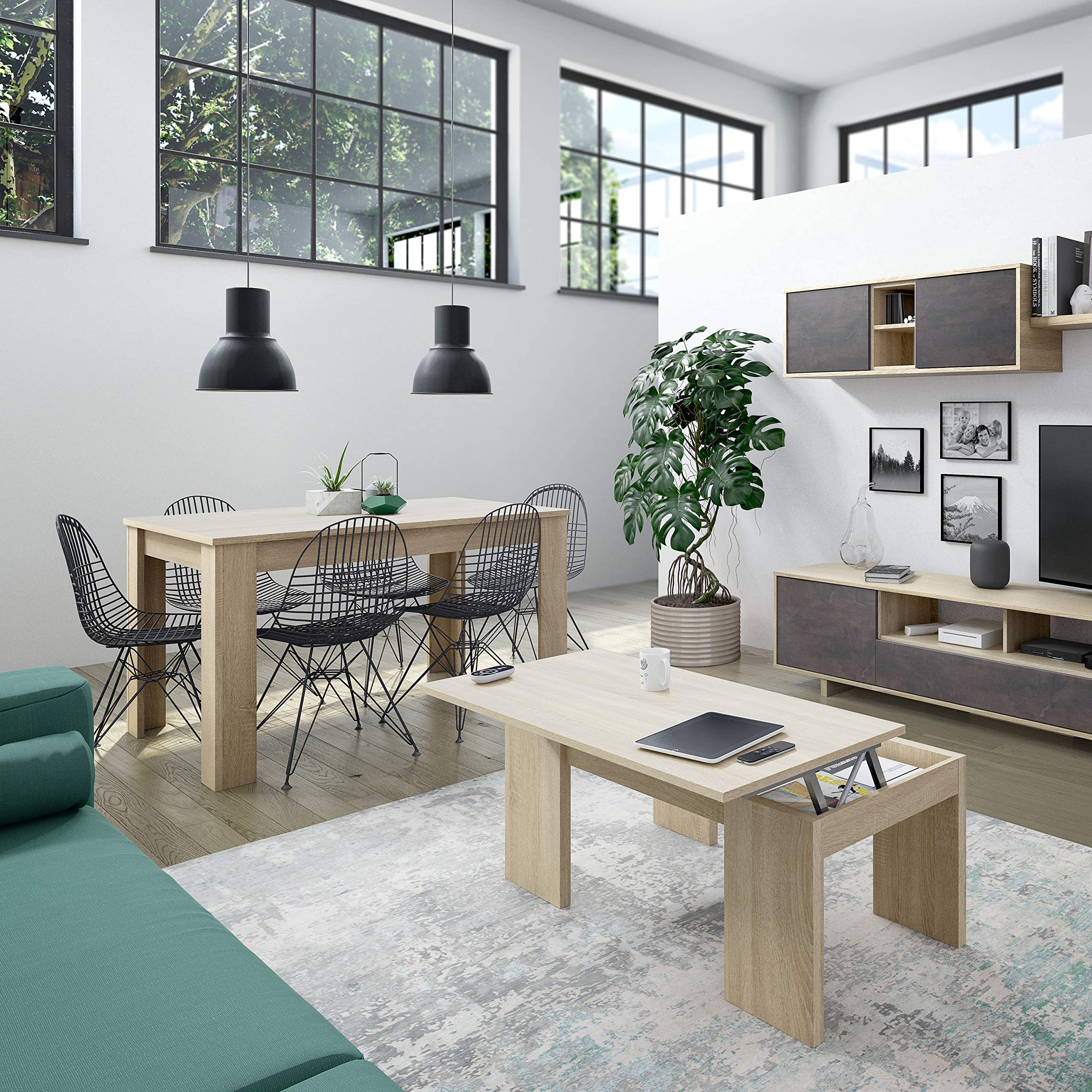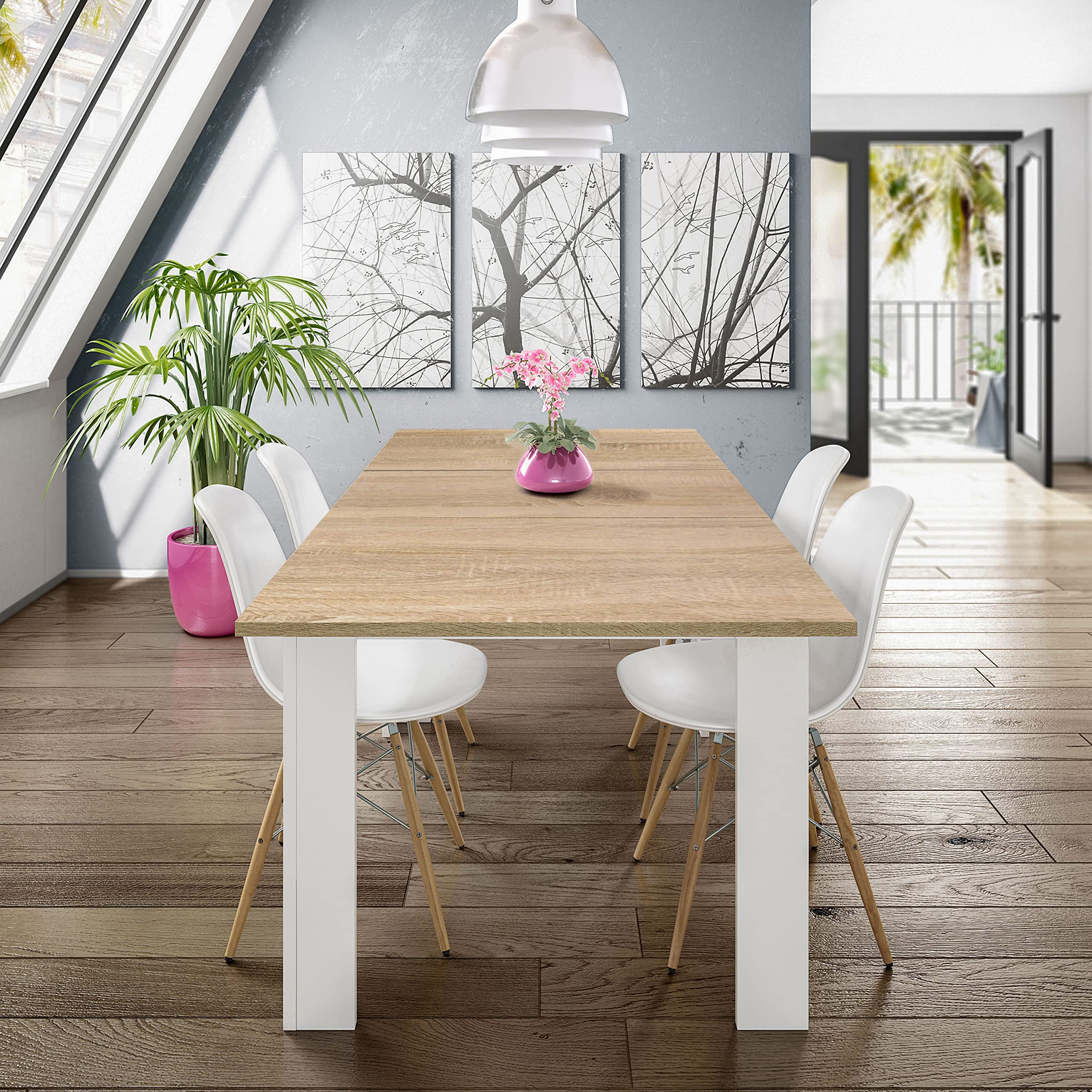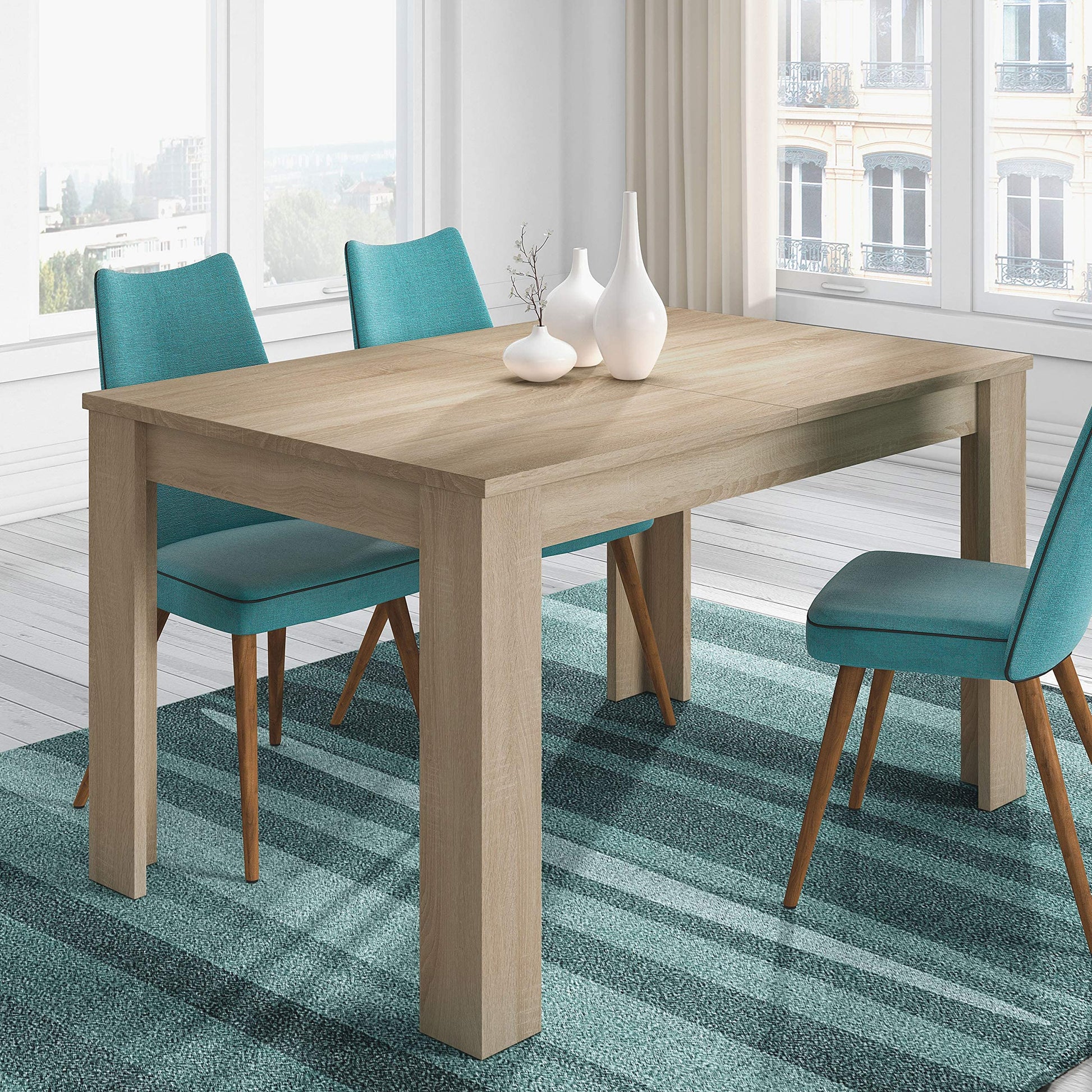 Table rectangle salle a manger extensible Chêne Clair